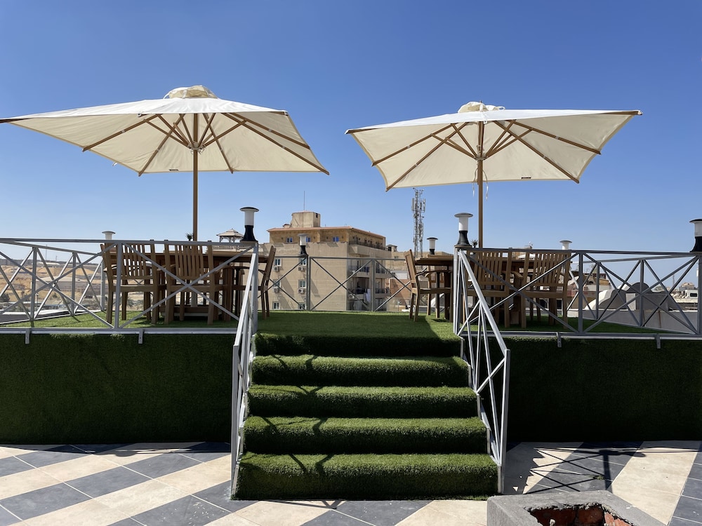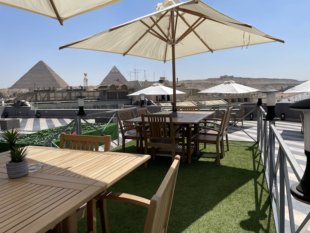 Hotel czysty,mili panowie w recepcji, kierowca hotelowy odebral nas z lotniska Na dachu można posiedzieć przy stolikach,piękny widok i na piramidy i wielkie muzeum egipskie.
