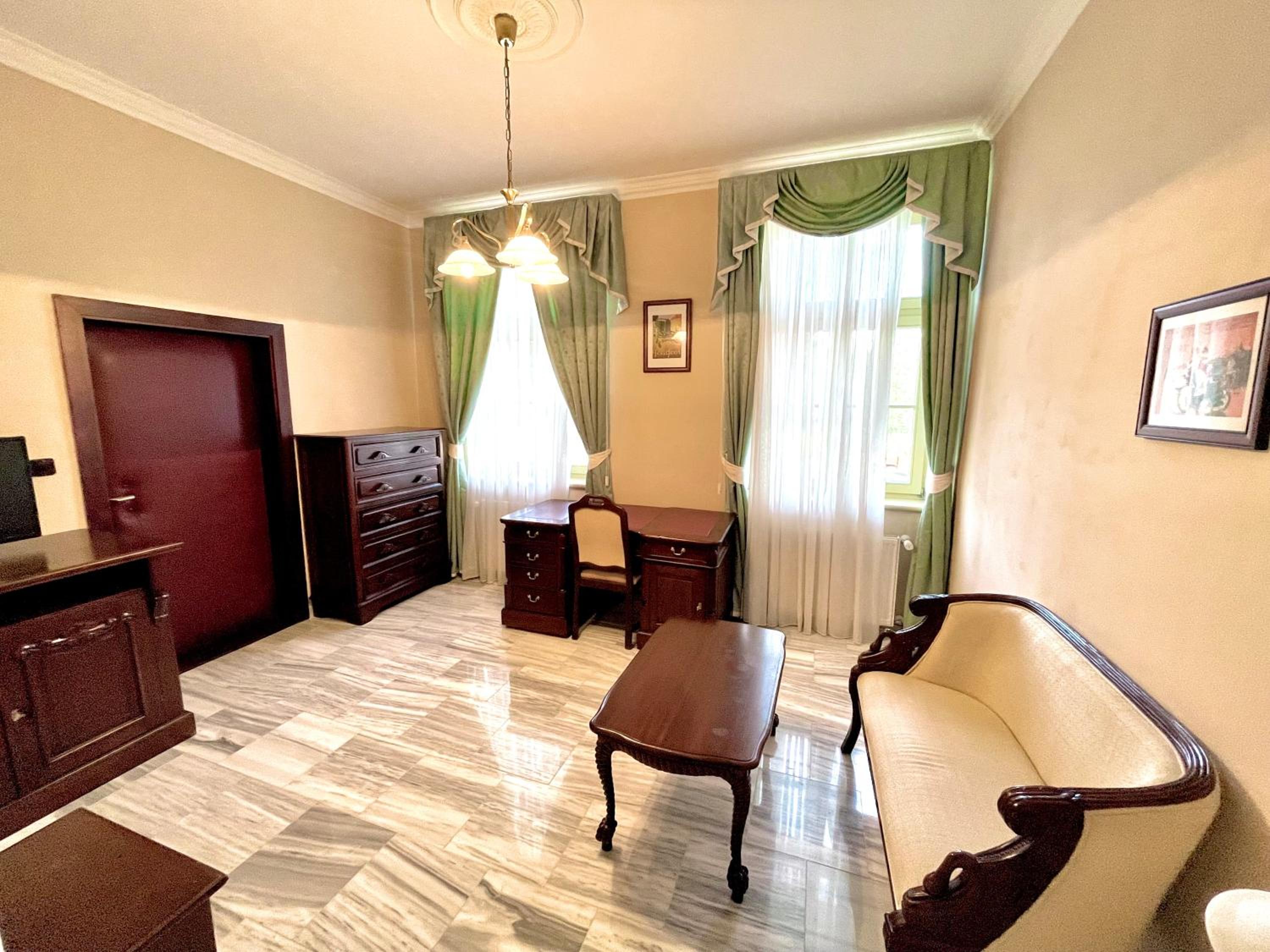 Palace Inn, located in Jíloviště, offers elegant rooms with modern amenities including air conditioning, flat-screen TVs, and private balconies in selected rooms. The 4-star hotel ensures a comfortable stay with free WiFi, room service, and a 24-hour front desk.