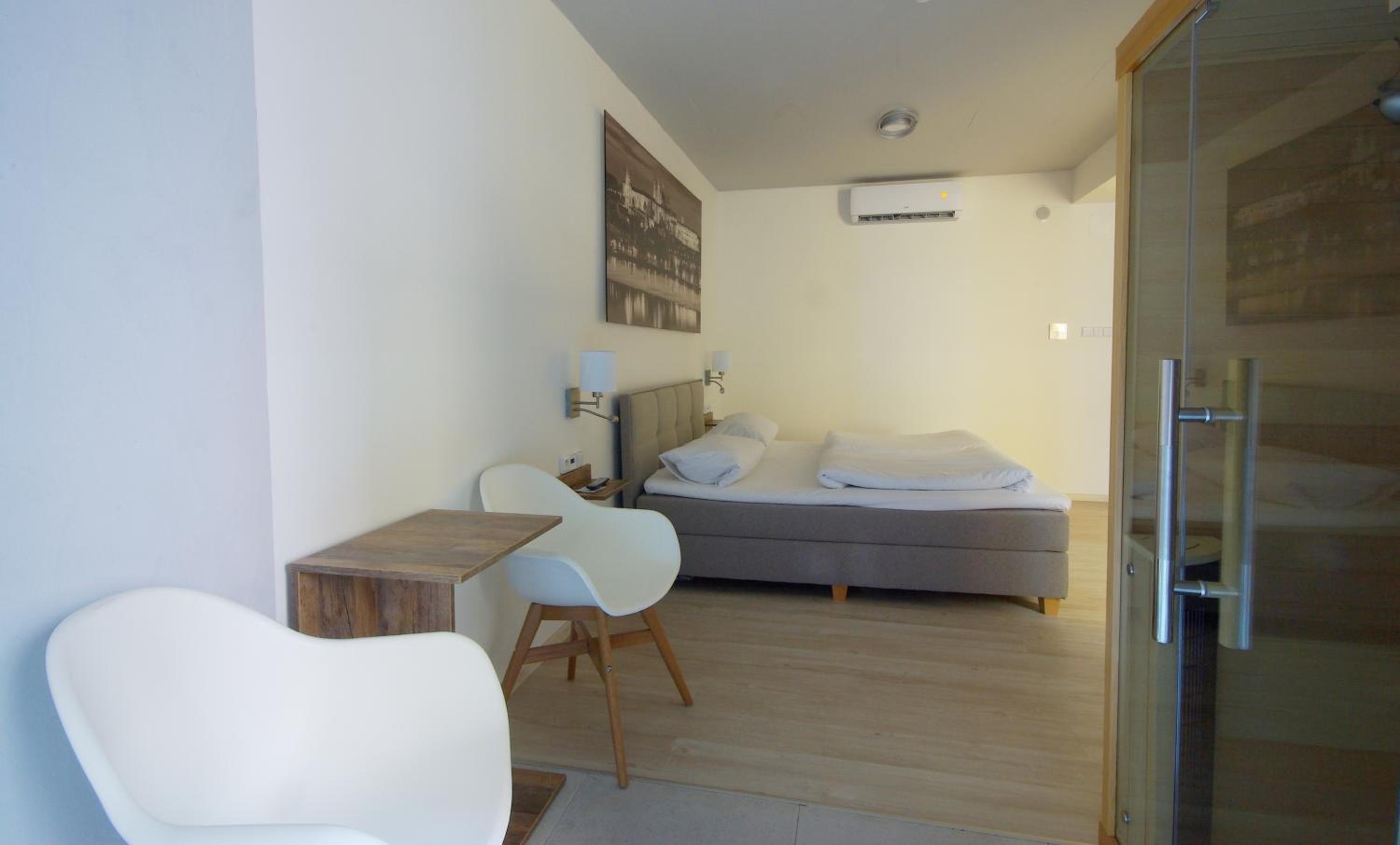 Ubytování bylo přesně v dochází vzdálenosti Forum Karlín, pokoji velmi slušně vybavený, čistý a pohodlný. Stoleček poměrně malý na práci na počítači, ale dá se. Snídaně byla chutná, teplá i studená, slaná i sladká k tomu klasicky ranní káva z automatu. Dobré parkování ve dvoře.