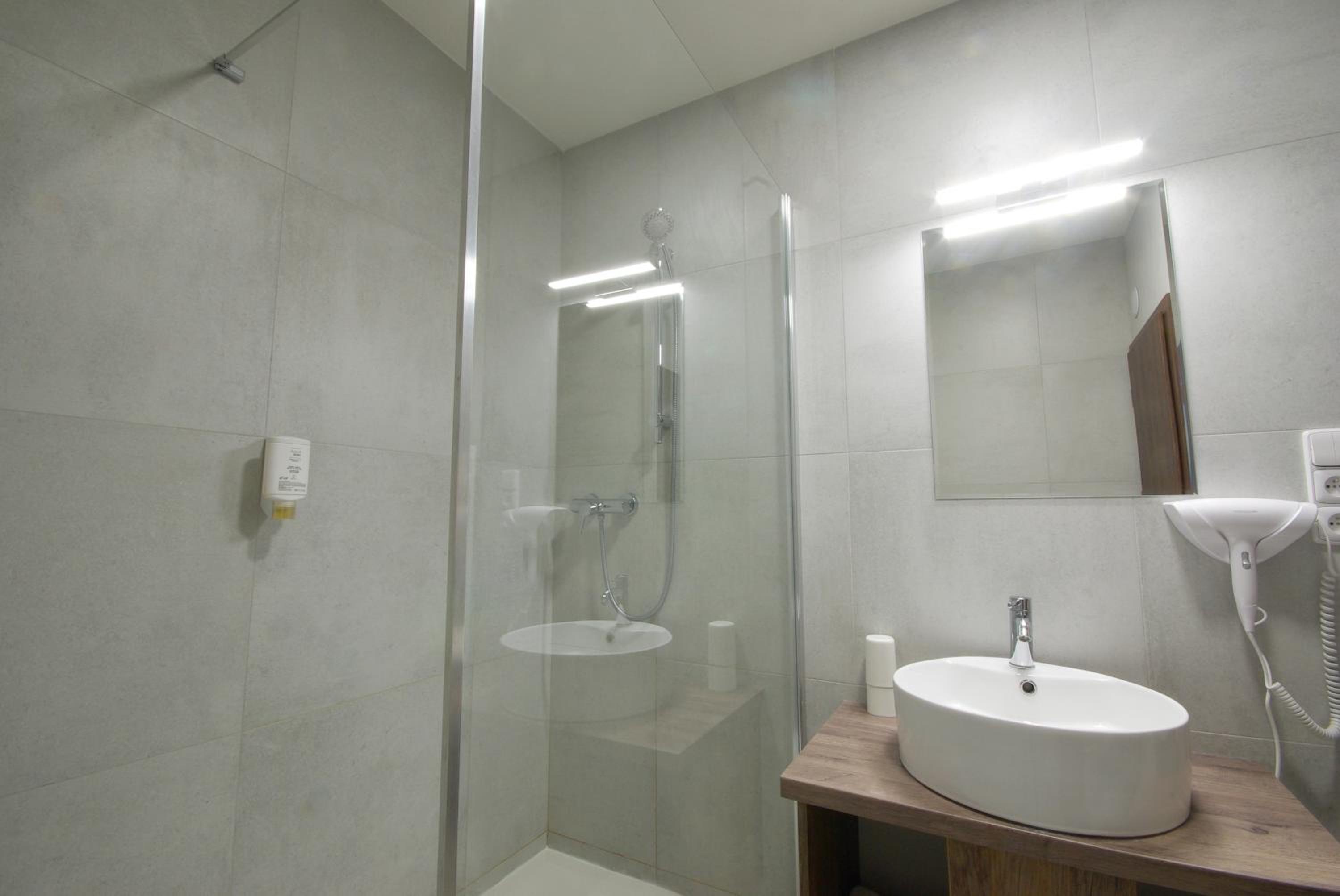 Pokoj v Adeba Plus opravdu hezký, vkusná koupelna, vše ok.