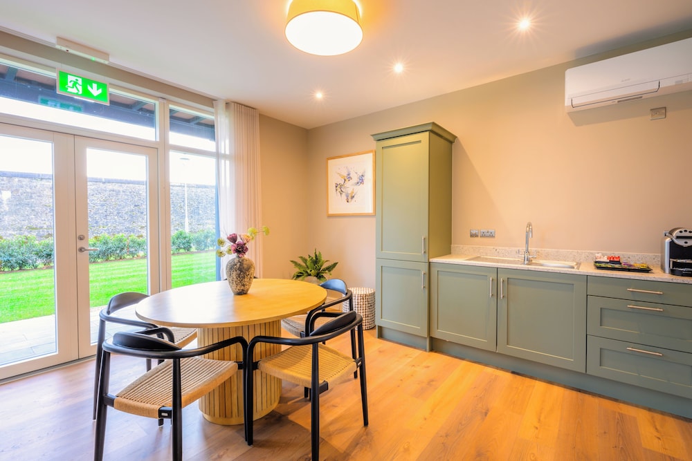 Advertised as perfect for romantic breaks... definitely not. This is a golf resort and probably excellent for that in certain aspects. The castle itself is not in use which is a pity. The accommodation consists of houses with 4 bedrooms and a common area. There is a kitchen but just a microwave and some cutlery, cups etc. No hob to cook and the fridge has no freezer so no ice! Self catering as such but you can't do much with it and a shared fridge etc, ok if you and others rent the entire house.