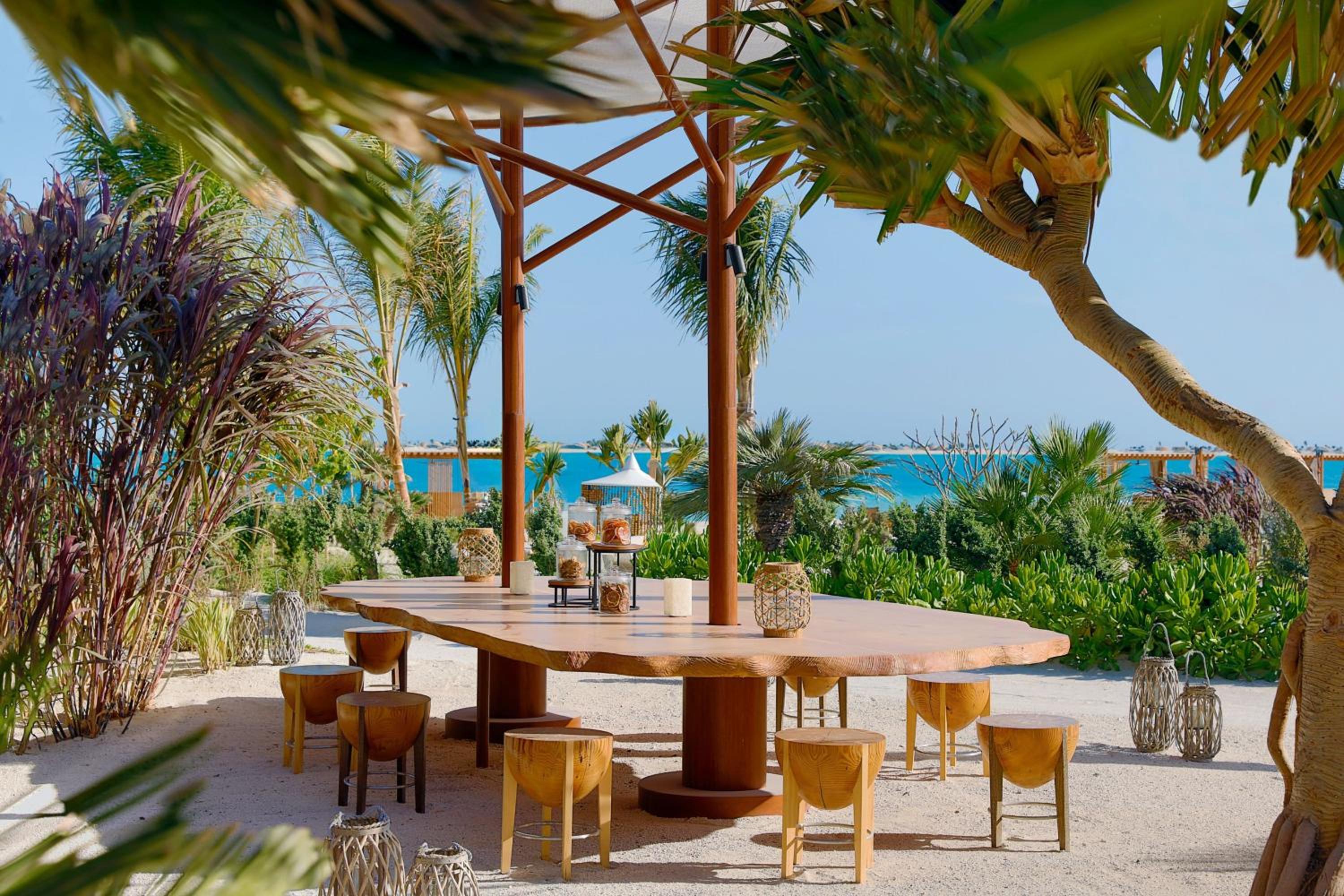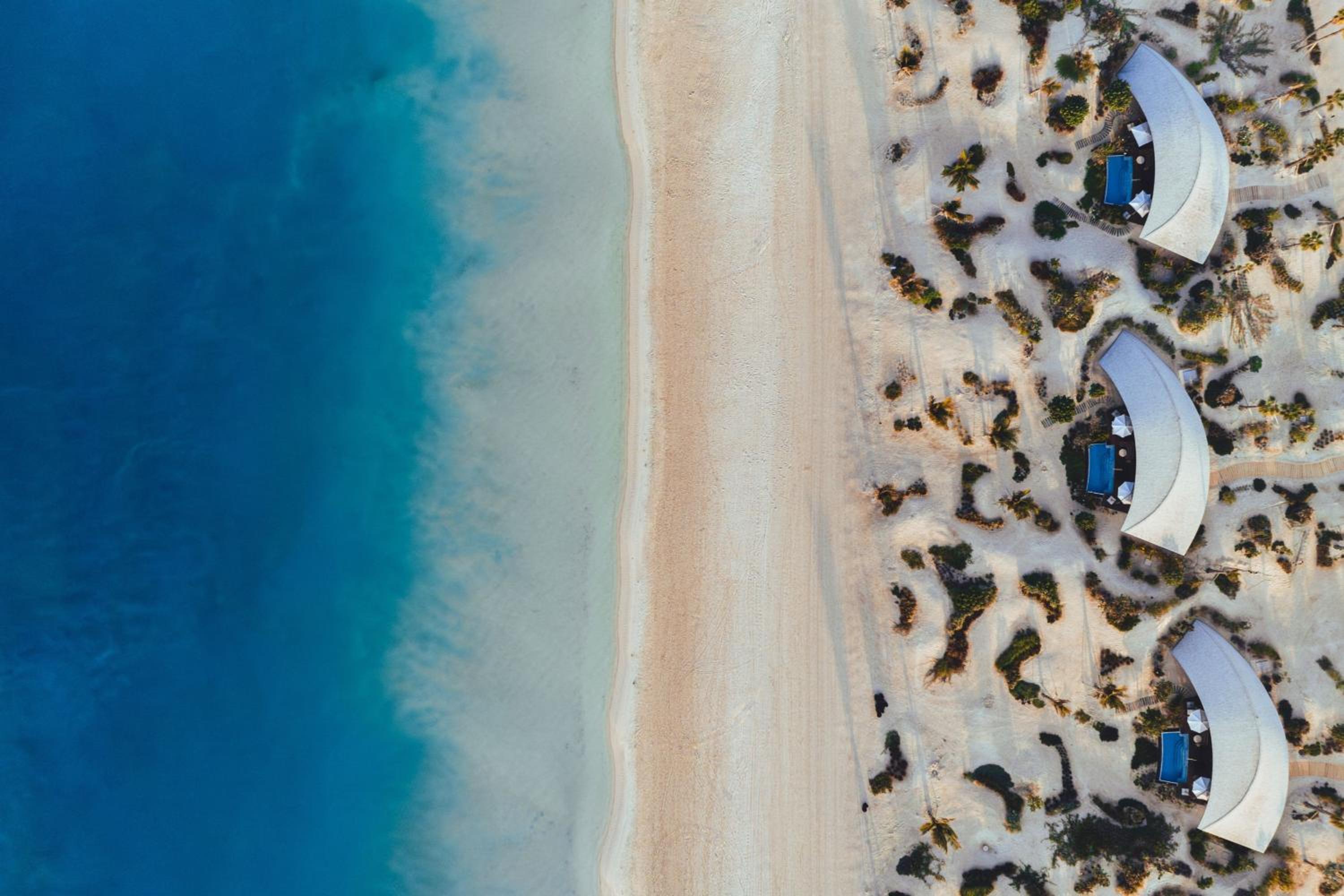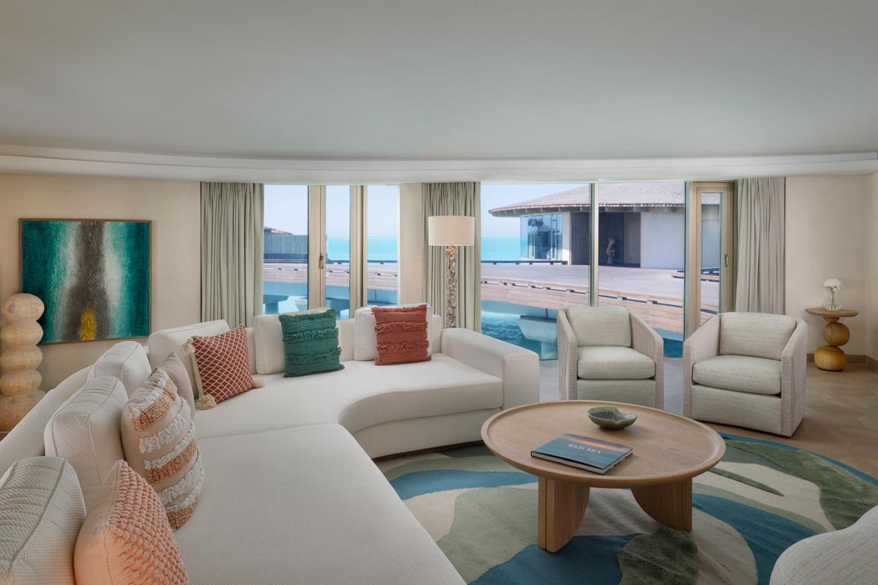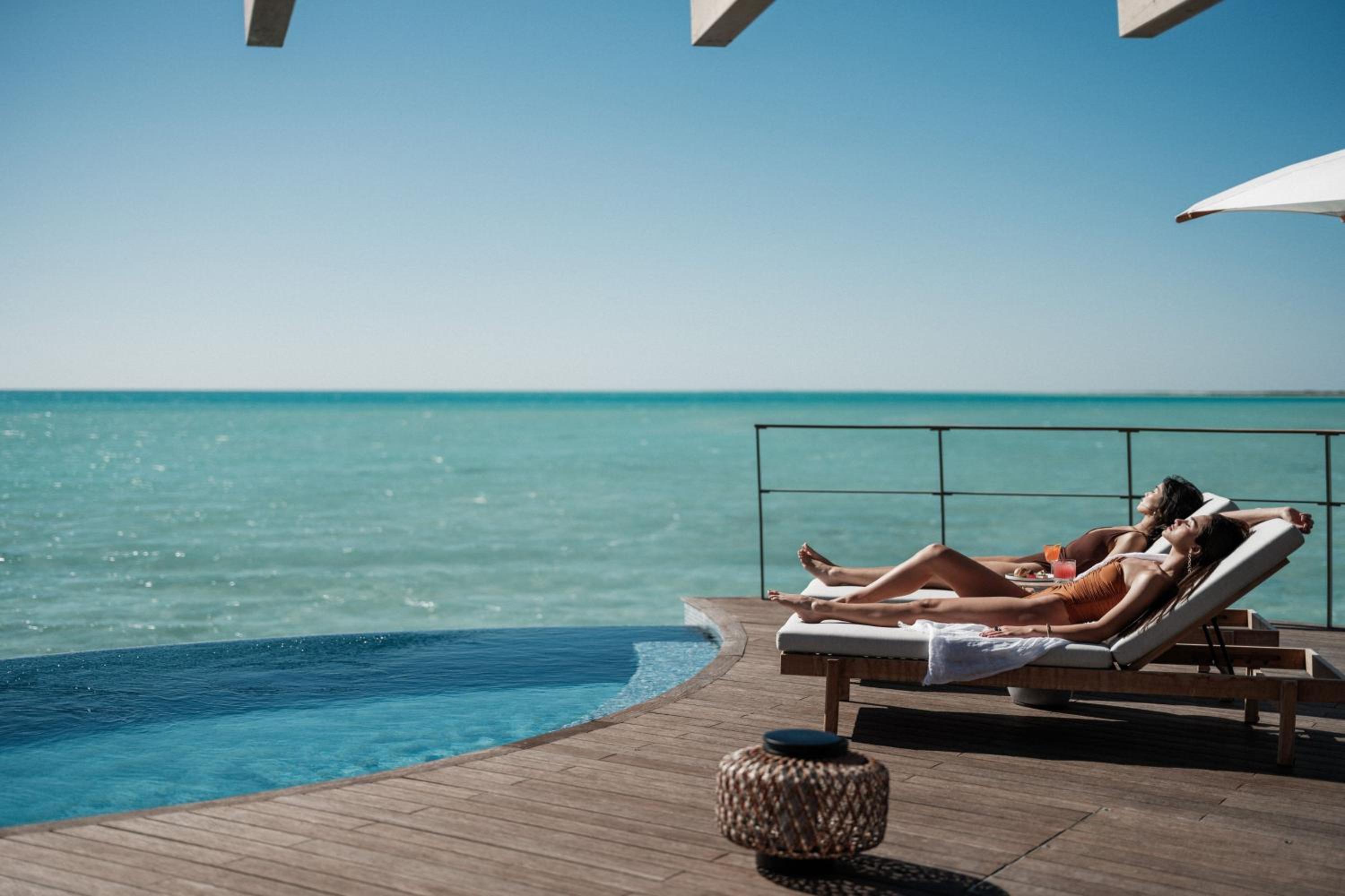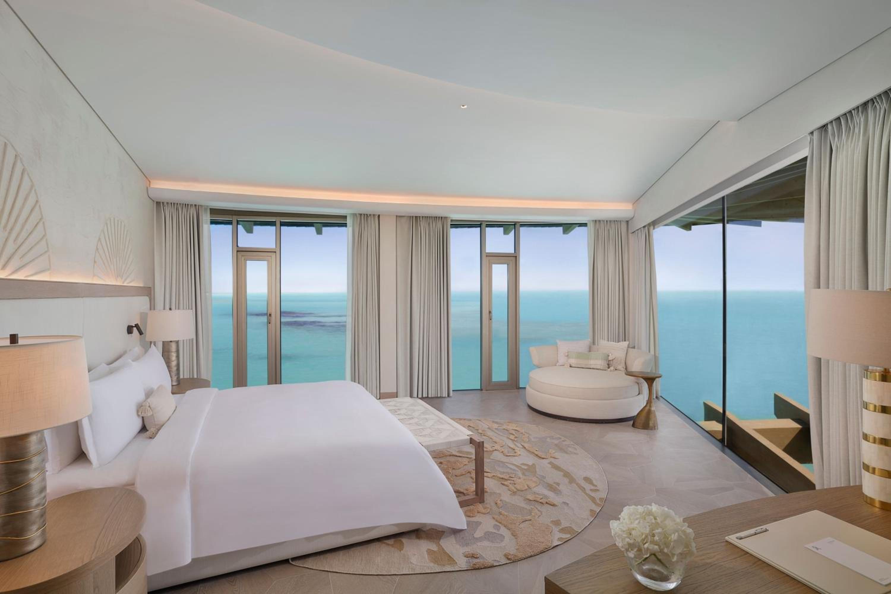 Indulge in 5-star luxury at The St. Regis Red Sea Resort with a private beach, restaurant, and bar.