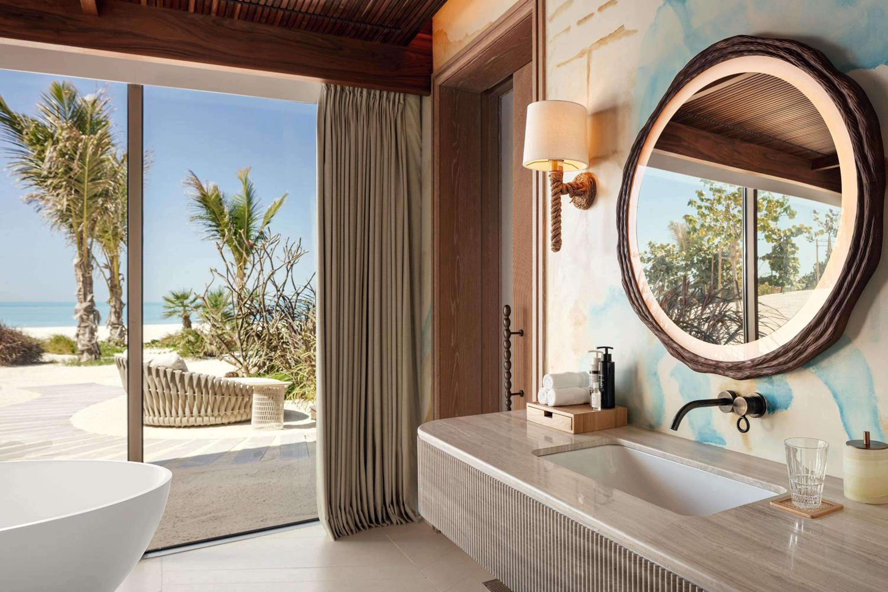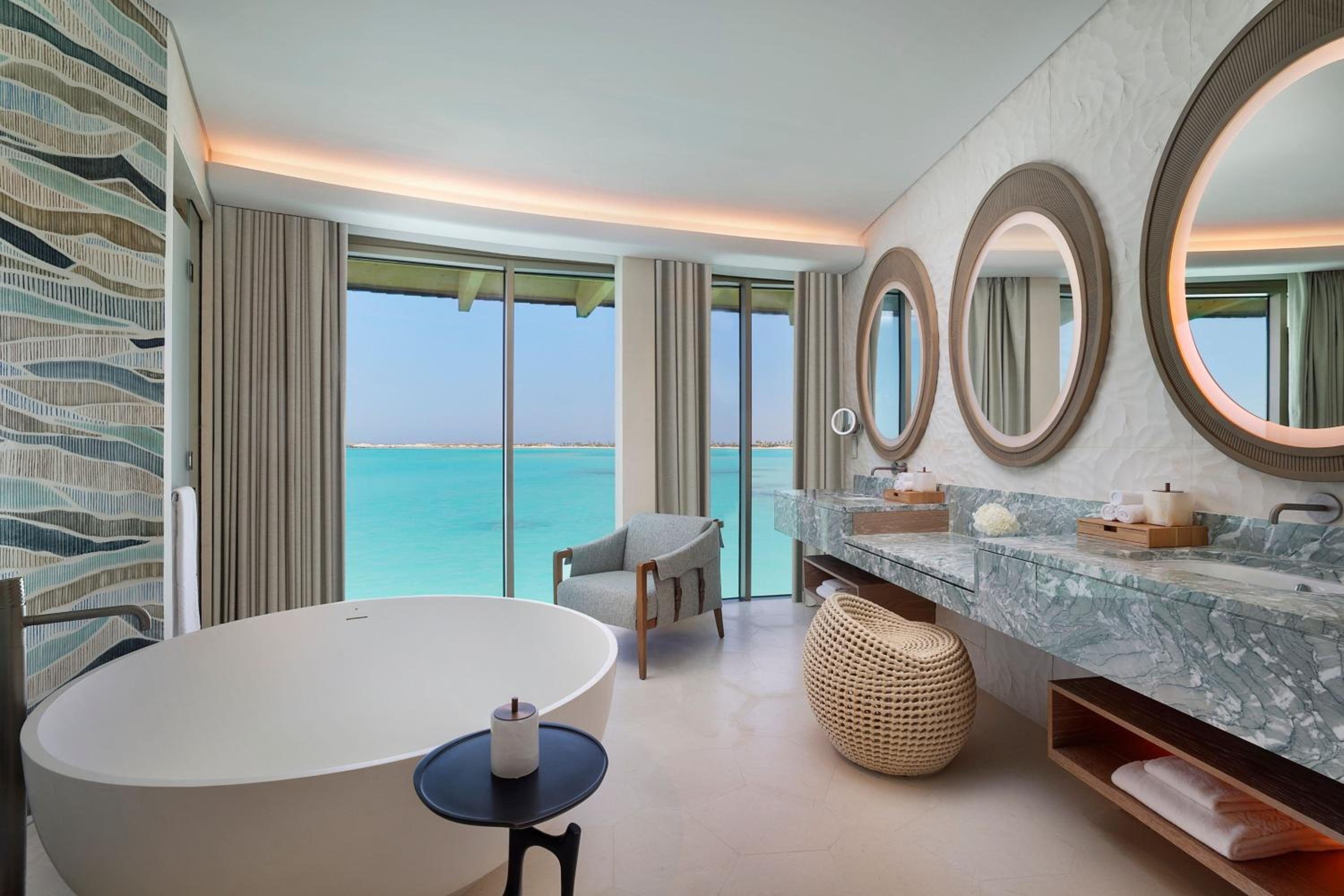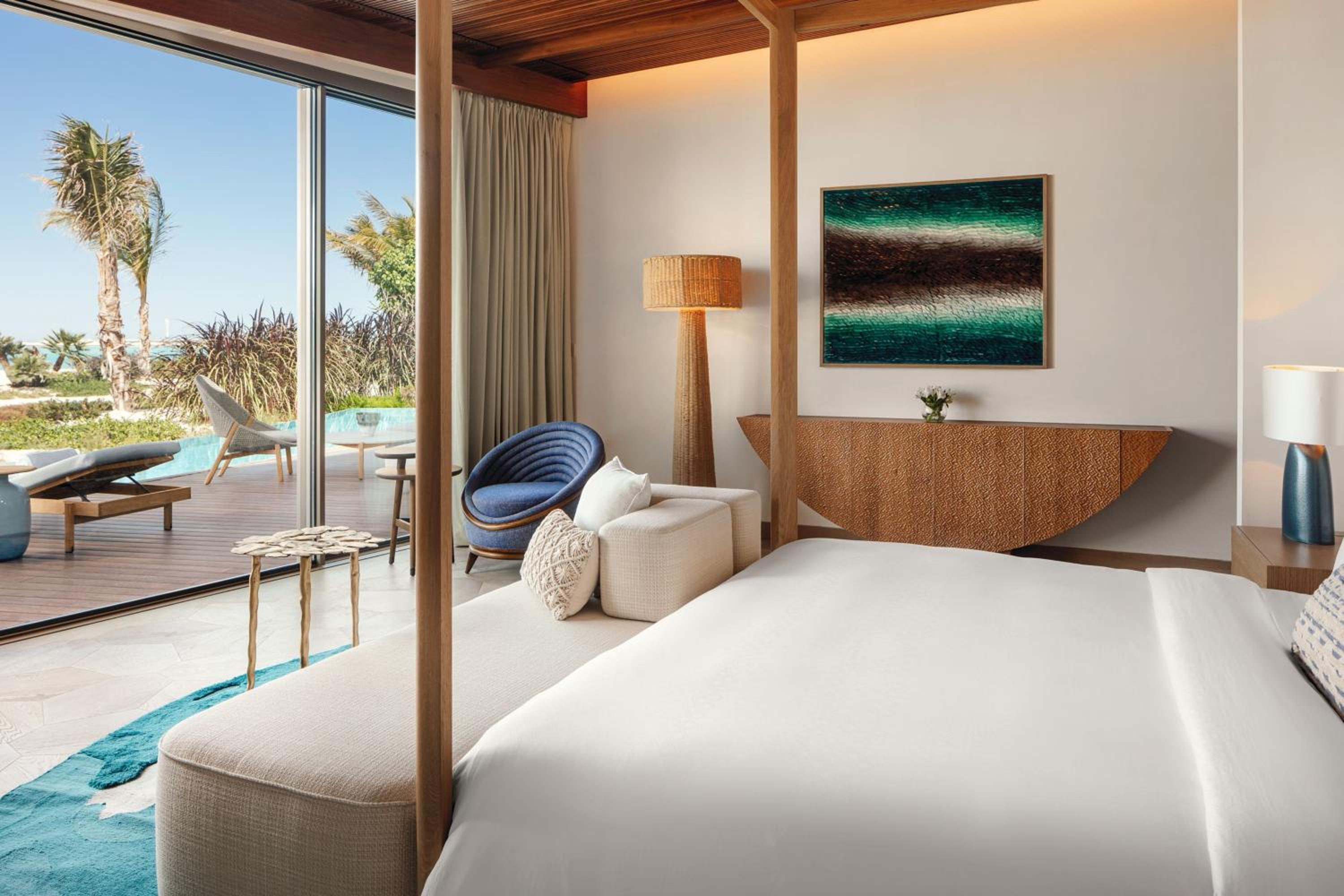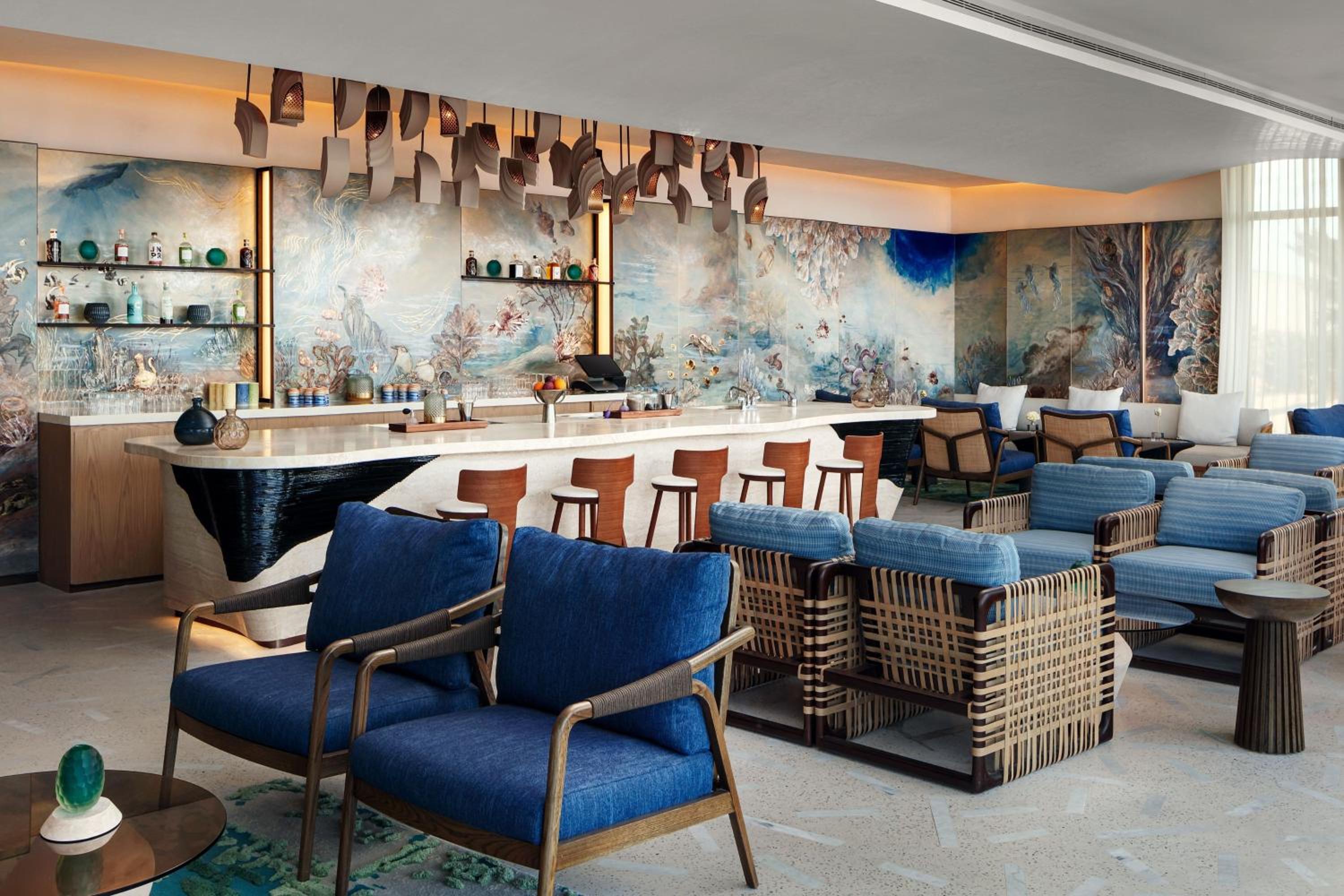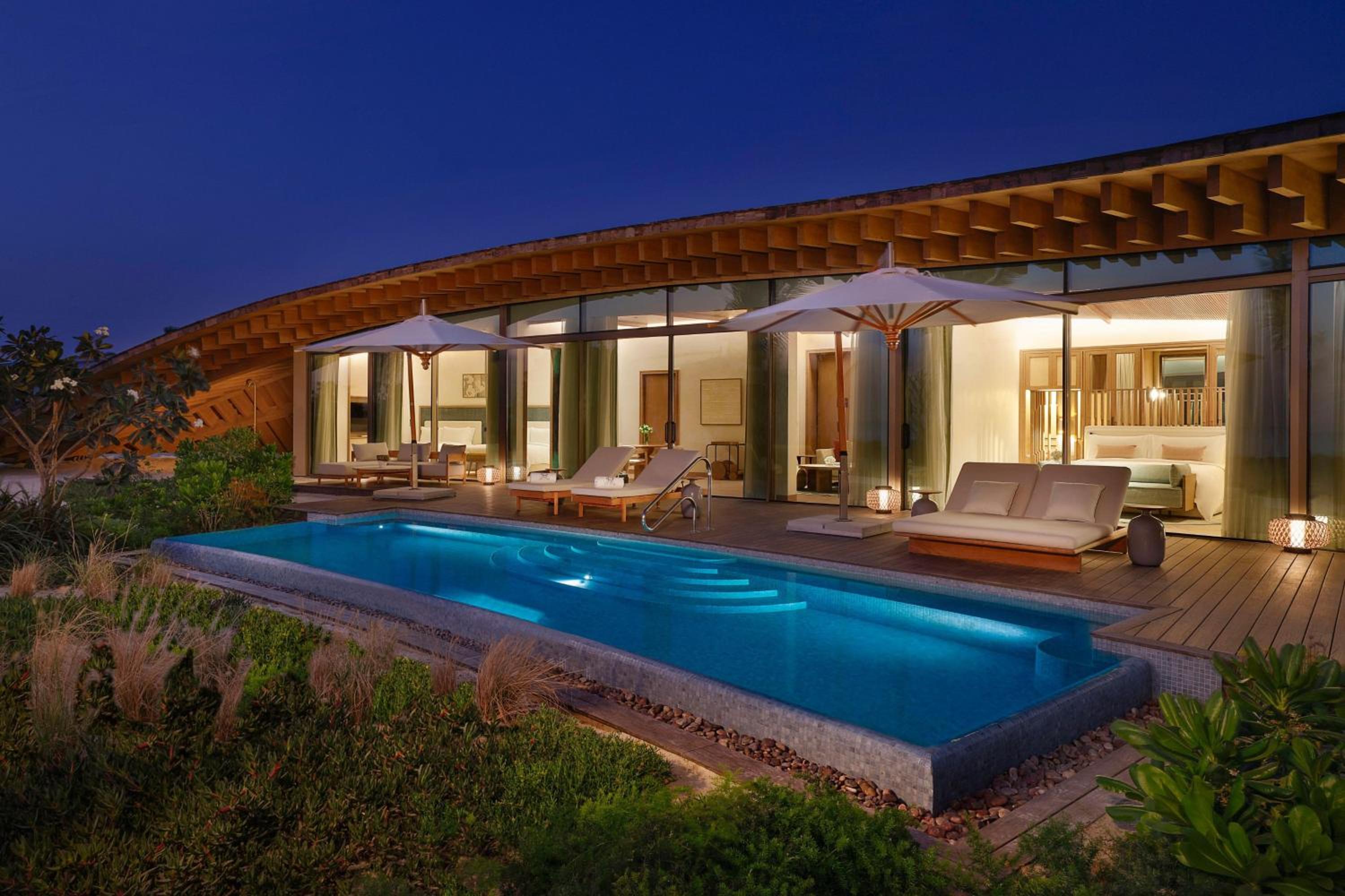 Indulge in 5-star luxury at The St. Regis Red Sea Resort with a private beach, restaurant, and bar.