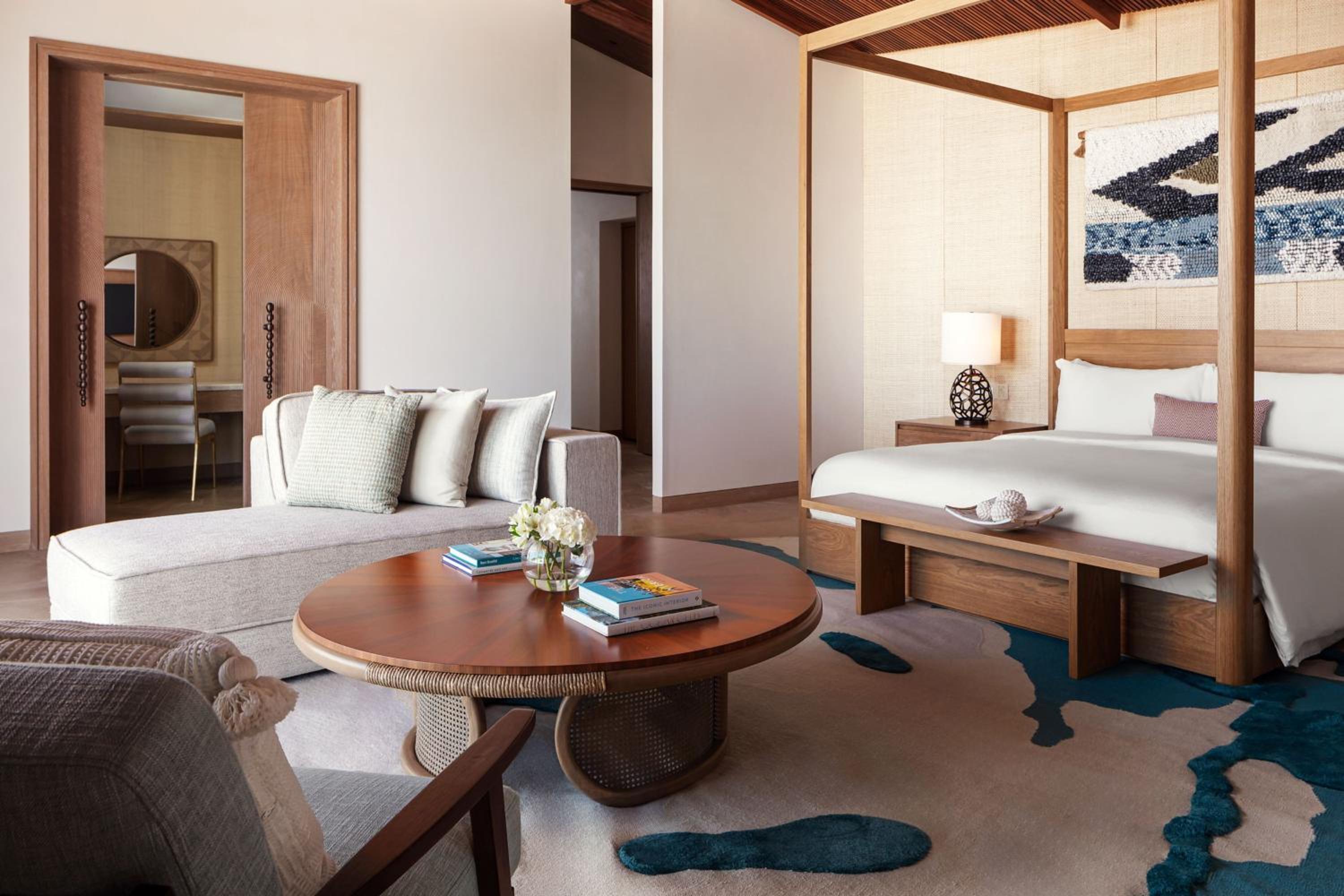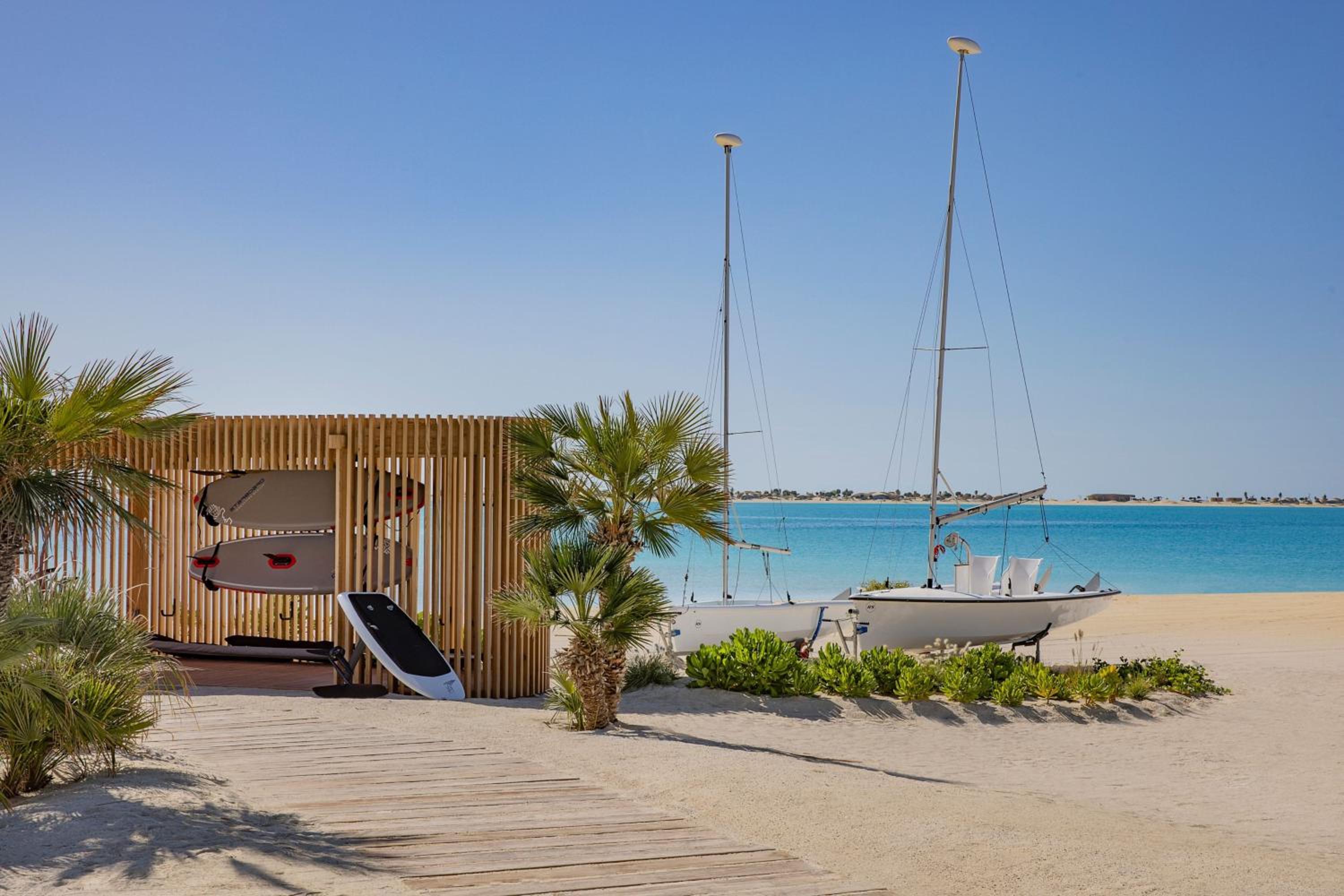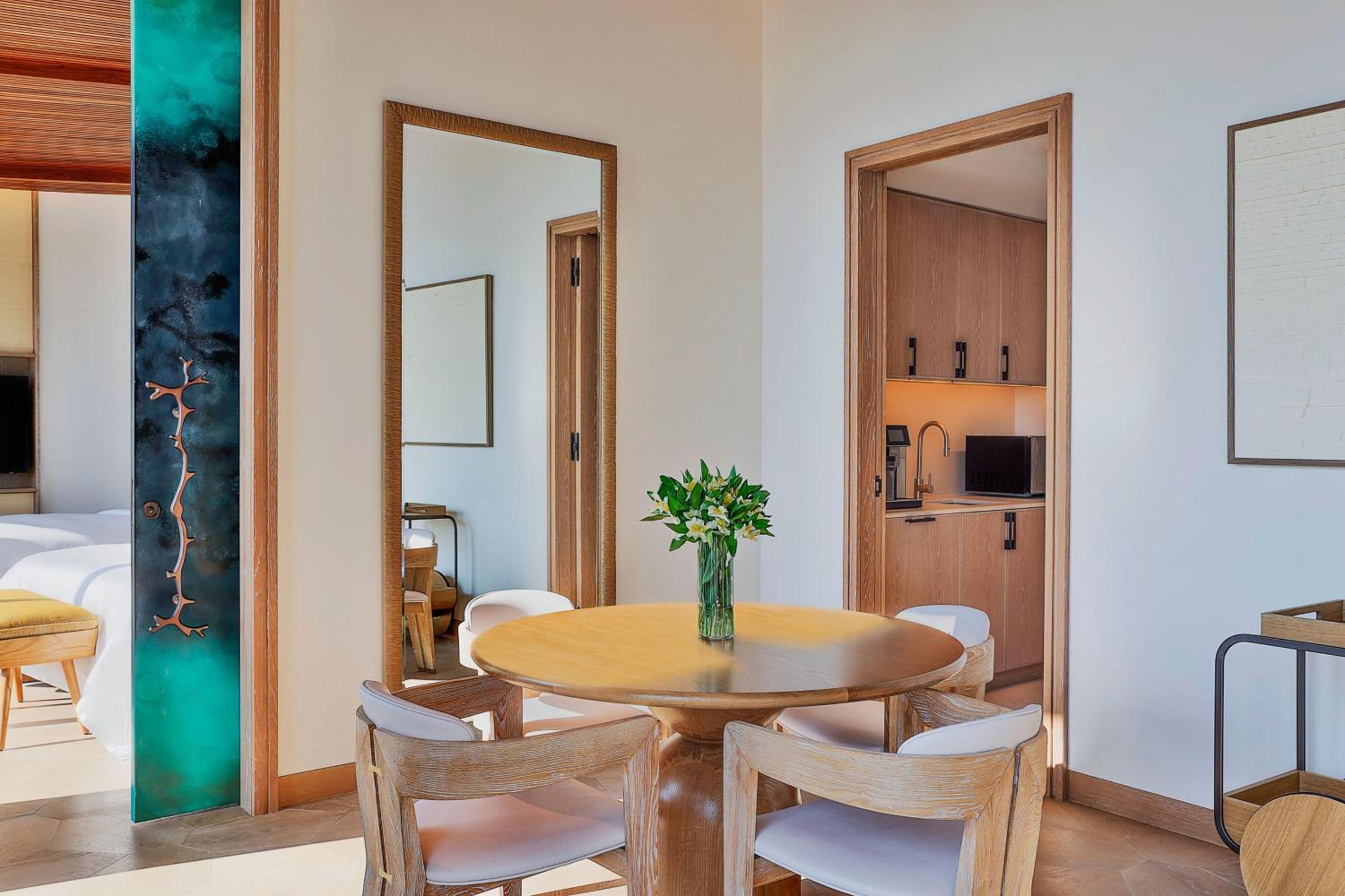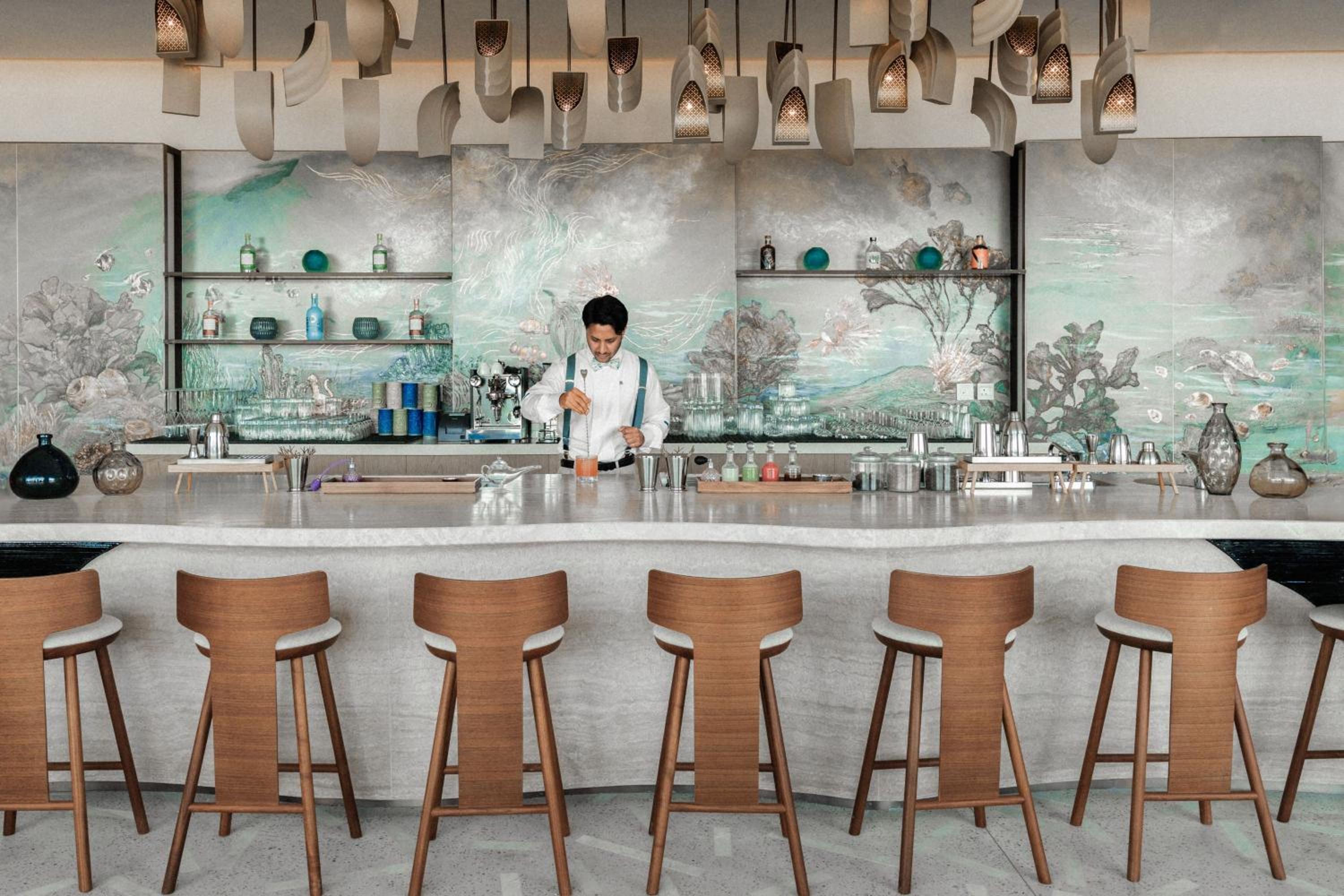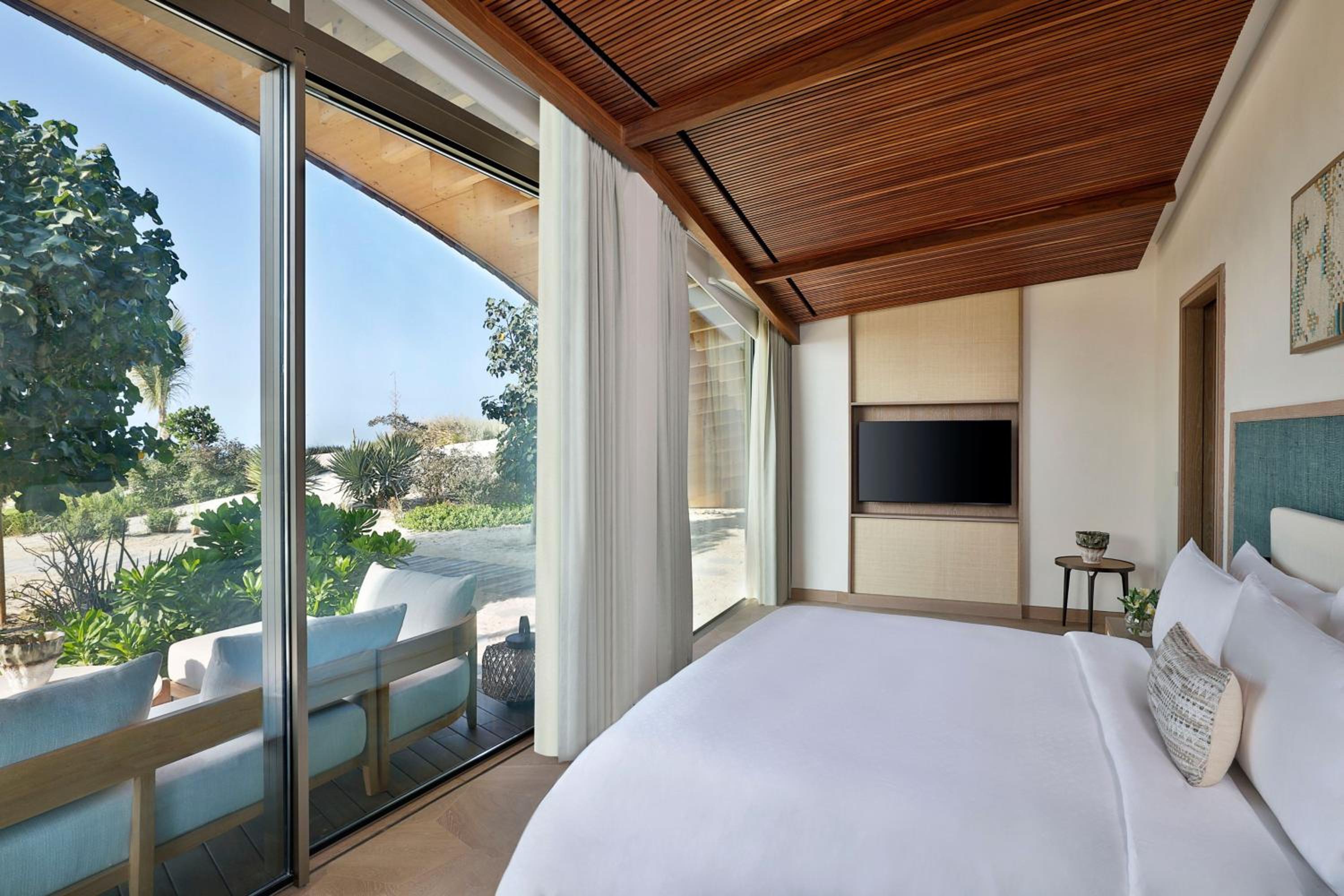 Indulge in 5-star luxury at The St. Regis Red Sea Resort with a private beach, restaurant, and bar.