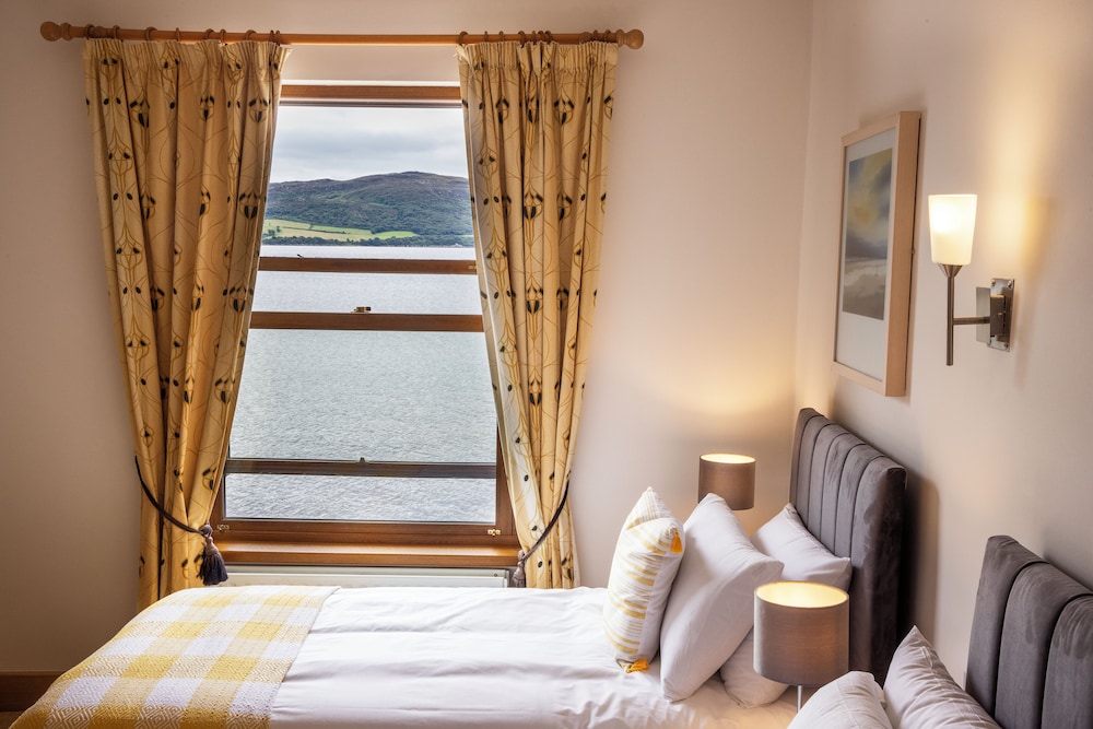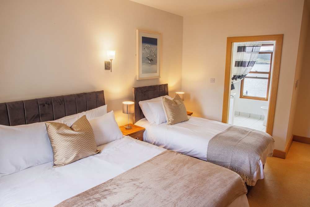 Great location right on the water, but the beds themselve were very uncomfortable and the carpets need a good clean. No lid on the toilet either. Would suggest blinds not just curtains. Aswell as an iron in the room, but thats just my personal preference. Easy check in and easy to find rooms. Plenty of parking with bar and restaurant on site. Lovely picturesque location in ireland.