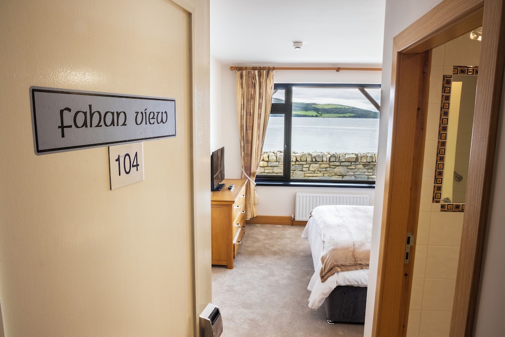 Splendid location on the edge of Lough Swilly with view from room across the waters. Room was warm clean and comfortable with adequate space for a two night stay. Rathmullan within walking distance. On site restaurant was good as was breakfast at Belle’s in Rathmullan. Perfect for visit to Fanad lighthouse. More like a room in an Airbnb with no on site hotel reception or public space other than the bar/ restaurant. But check in system worked ok.
