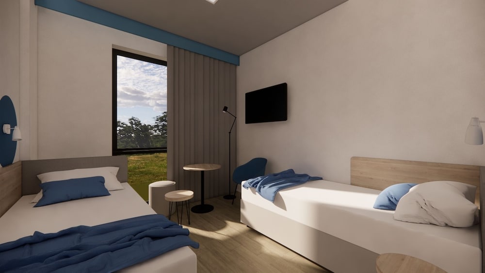 Virkelig fint hotel i området. Forholdsvis nyt. En del af sports komplex. Store værelser, stort bad og lille køkken med køleskab. Ingen aircondition, men på 5. Sal åbnede vi blot vinduet. Gratis parkering. Ok morgenmad. Ikke den største buffet men det var super fint og de var flinke til at finde frem hvis man havde ønsket. Og super effektive til at rydde af og holde borde klar. Udtjekning gik også kun hurtigt.