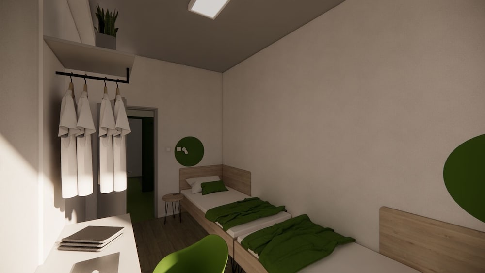 I stayed here for two nights while attending an event in Terezin. I did not realize that most of the guests would be team members from sports teams. That made for an interesting vibe, but everyone -- EVERYONE - was super calm, polite, and quiet. My room was a single and it was small, but efficient. My window opened all the way which was great because I could get fresh air and cool the room off at night. I was on the 5th floor which I was glad about. Parking was free and right in front of the hotel. The breakfast was amazing and really I could not have been more pleased with the whole set-up. If I'm ever in this area I will definitely stay again.