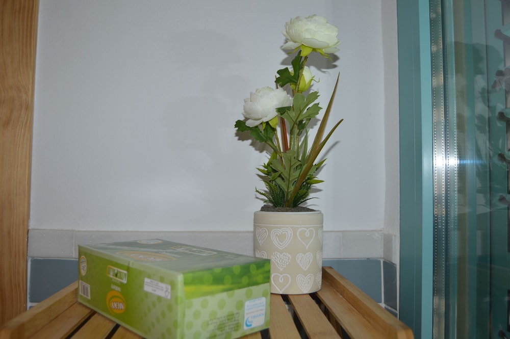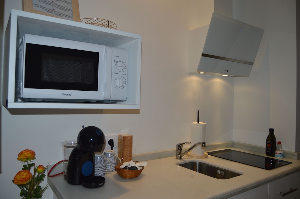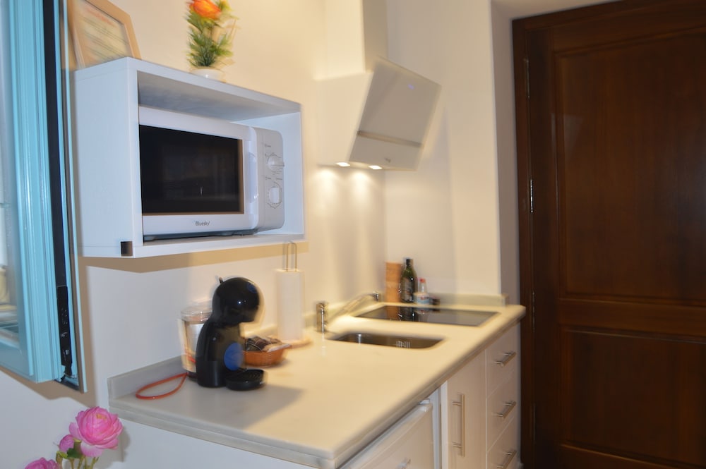 We stayed in the "attico deluxe" and our assumption was that the terrace pictured in the details was for our exclusive use. We were extremely disappointed to find that all outdoor spaces/terraces are communal and anyone staying in the apartments can use them. We couldn't open the shutters in the lounge or bedroom as the windows faced the main terrace and we would have completely lost our privacy. We also had to endure people sat directly in front of the windows talking. The owners of the apartment should make it VERY clear that all terraces are communal. The sink in the toilet was completely inadequate in terms of its size to be used to shave or wash your face, I had to wash my face in the kitchen! The cooking utensils were totally inadequate if you wish to cook and there is no oven or microwave. There was no kettle so we had to boil water in a pan to make hot drinks. There is a coffee maker which also heats water but not to boiling point which is needed for tea making. The positives: Good, quiet location. Immaculately clean. Stylish, spacious interior. Easy check in greeted by staff/owner.