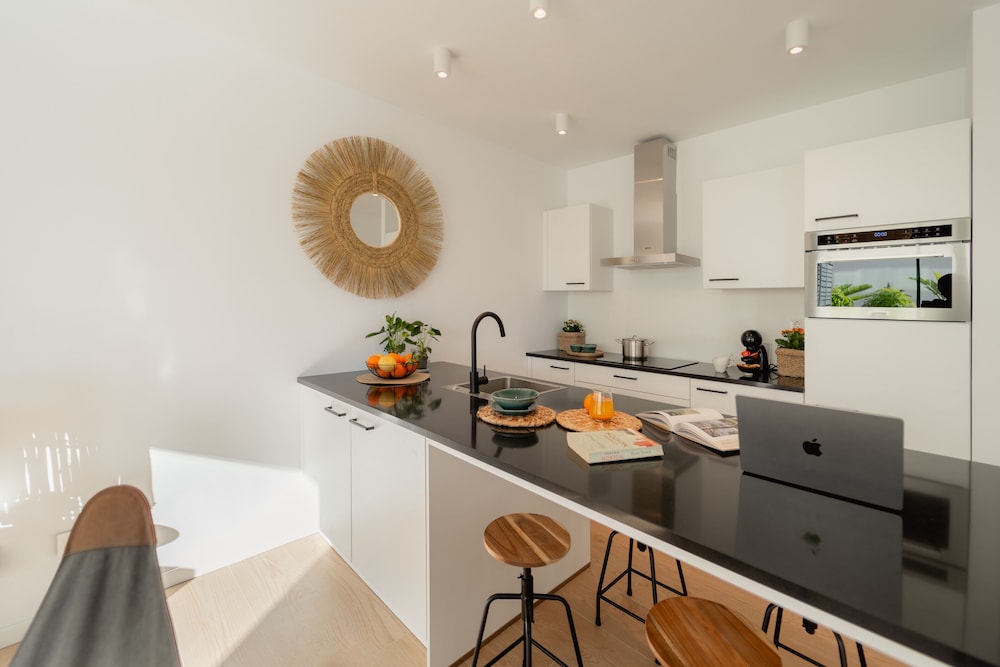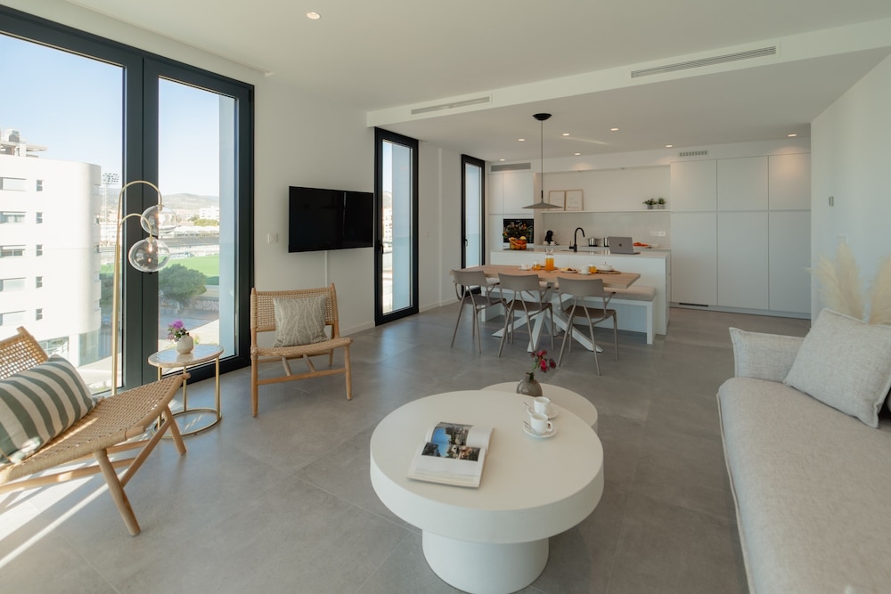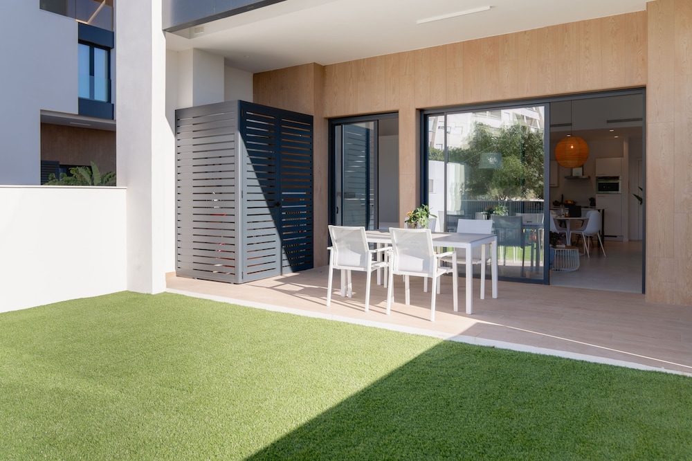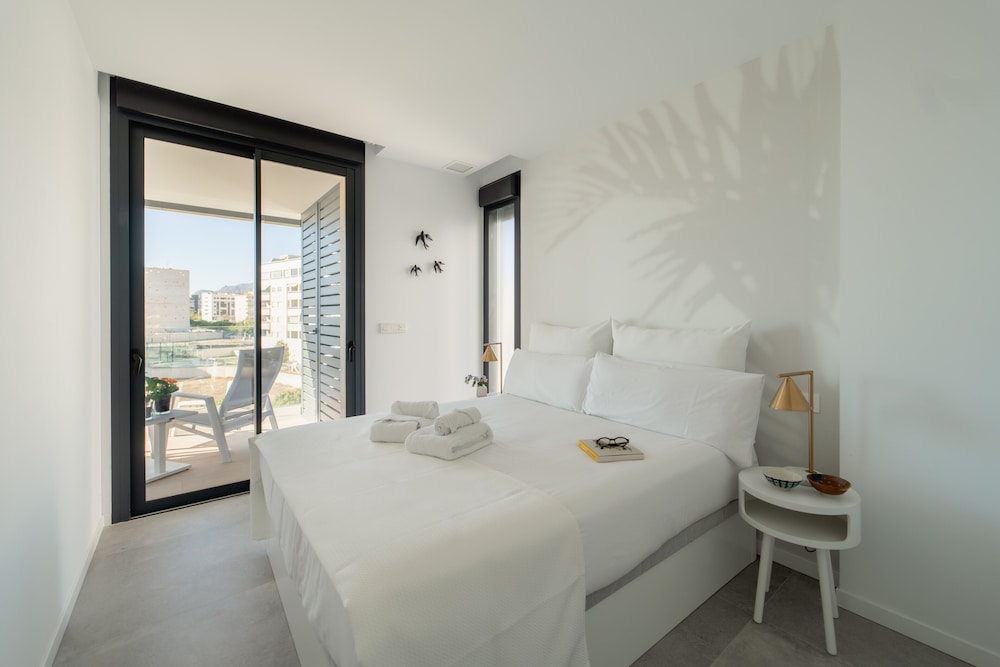 Spent 8 nights there in Mid-November. Modern, stylish black & white apartment with a patio. Automated check-in; easy with a passport, complicated with an ID card. The apartment, building and the courtyard/pool area were very clean and well maintained. Well equipped kitchen. Many closets. TV with Spanish channels + YouTube + Netflix (use your own account). The internet was very slow, streaming services were mostly buffering. Pool not heated. Good parking facilities. Peaceful neighbourhood, grocery store and some cafes within 5 mins walking distance. Nearest beach 5 mins walk and the main beach with restaturants, cafes 15 mins walk.