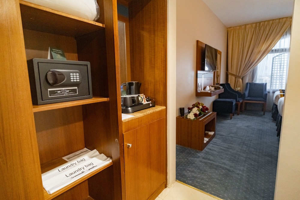 Shower without curtain with half inch raised divider causing splash water out. Leaking shower head seen in room 1222 we stayed. Location wise is NOT convenient for elderly or wheelchair people due to long walk to Haram and specially for Roaza Rasool or Riazul Jannah is diagonally opposite from this hotel.