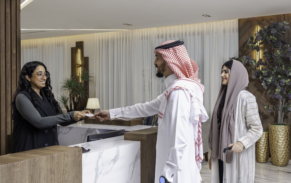 Unwind in the serene ambiance of our indoor pool, enjoy complimentary Wi-Fi, and relish in the convenience of our concierge services. Immerse yourself in entertainment at the arcade/game room or catch up on your favorite shows on the television in the common area. Start your day with a delicious continental breakfast and explore nearby attractions such as Princess Nora bint Abdul Rahman University and Imam Muhammad bin Saud Islamic University.