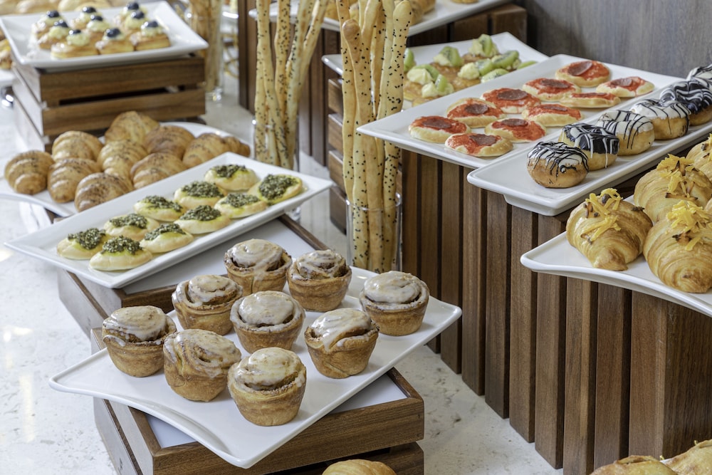 Originally booked a room with twin beds for me and my other travel guest, but they gave us a single king bed (honeymoon suite as it had romantic pedals (plastic) on the bed with towels wrapped heart shaped. Decided to forgo the twin room as we were leaving the following afternoon and the bed was large enough for us to sleep on the on the other side comfortably and non-awkwardly. Room was very clean and the bathroom was filled with plenty of towels, bathrobes, and bathing products. Breakfast was not buffet-style, but room service-style, which was limiting and not what was advertised. Staff was very polite, attentive, and considerate. Location was limiting as it wasn’t near much stores and I had to take taxis or walk a long time in the heat to get to places as there were no buses. Good price, but expect to pay out for taxis to get to places.