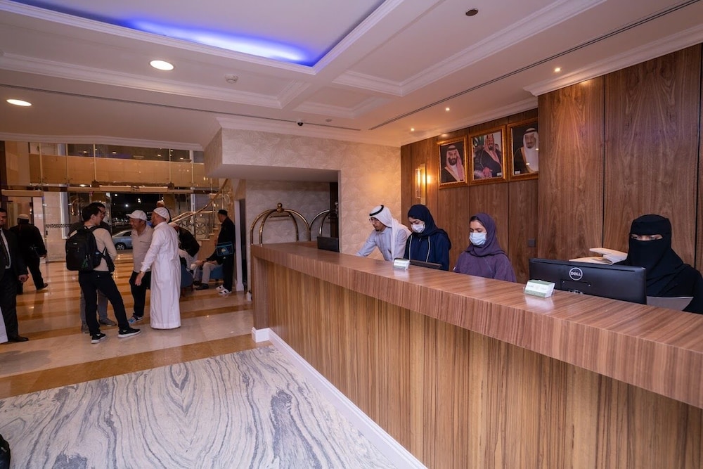The hotel is right beside Masjid al Haramain. Perfect location. The hotel had a few alarms go off in the middle of the night. So that was odd. Not the best cleanliness, found a cough drop stuck on the rug between the beds. One of the bed sheets although smelled washed didn't look clean. They have a nice little cafe in lobby with good drinks and food. Staff was very nice but at times seemed overwhelmed.