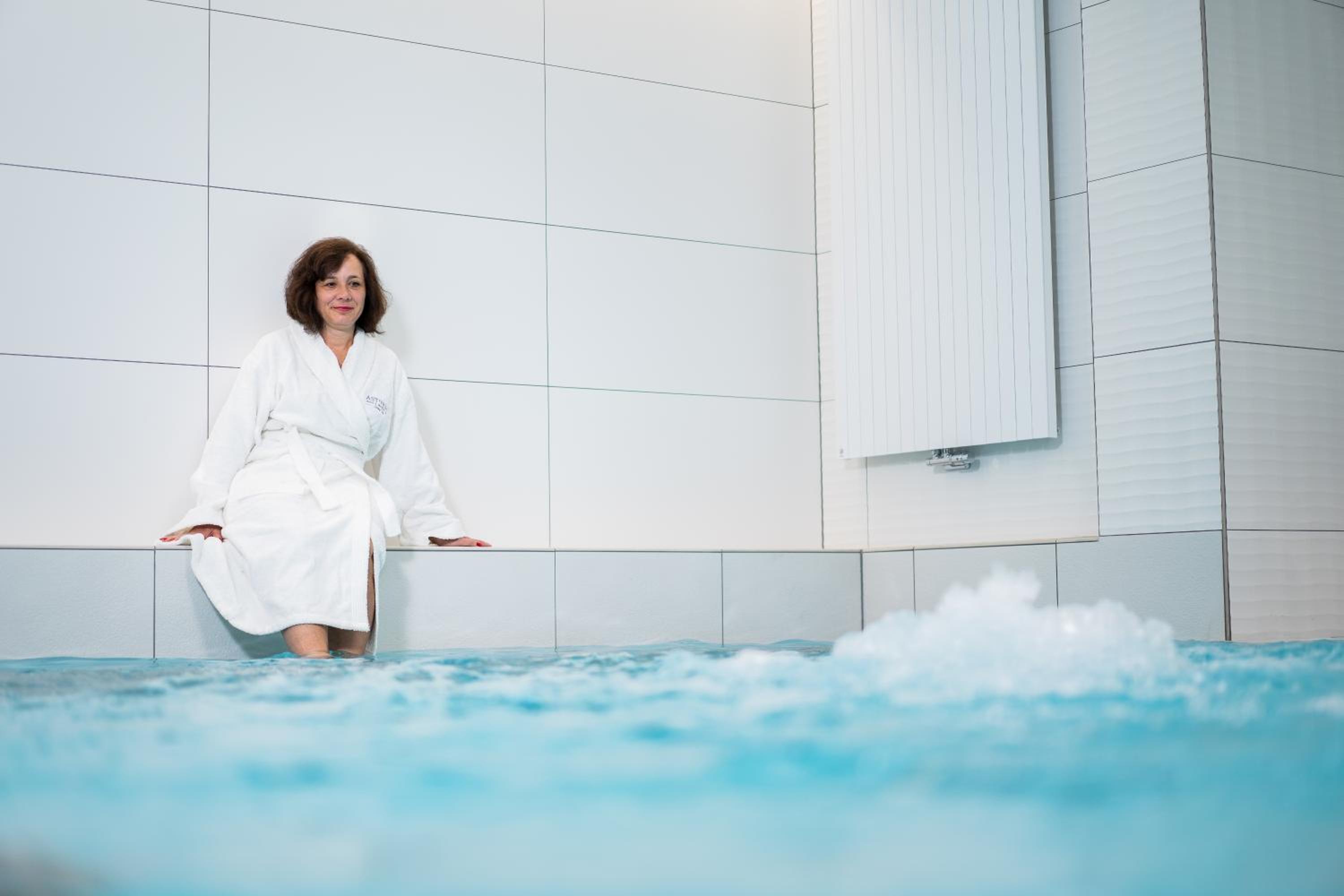 Es ist schade das Gäste von 4 Hotels das Schwimmbad und Sauna benutzen dürfen. Daher ist es so gut wie unmöglich einen Sitz geschweige einen Liegeplatz zu bekommen. Die Sauna ansich war gut.
