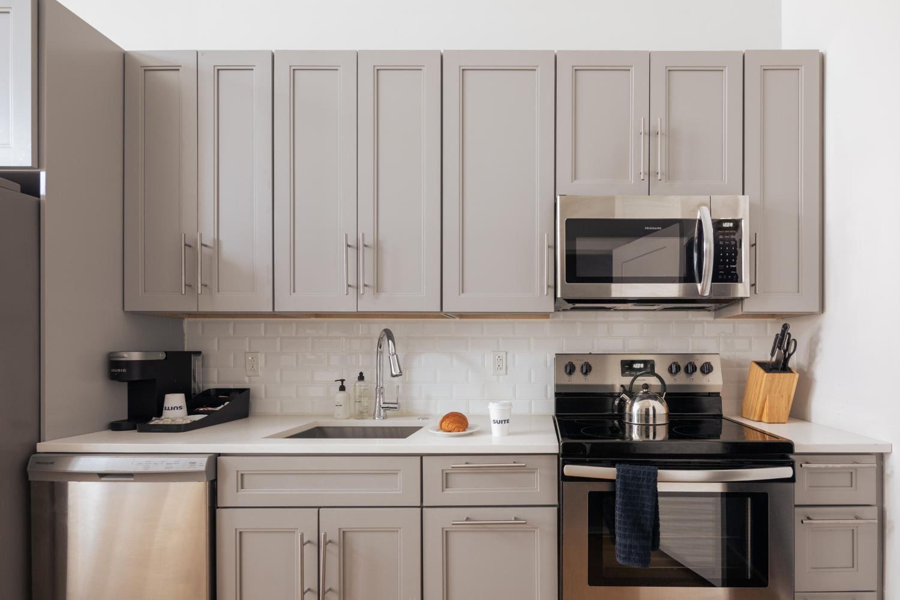 Location. Calm and quiet area. East access to unit. Clean. Modern. Washer and Dryer in unit. Full Kitchen. Bottled water and pretzels for snacks on table.