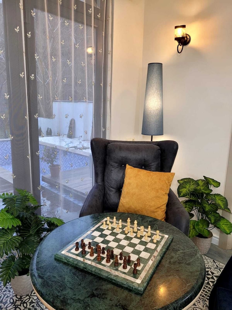 It was wonderful time in this place. River view was excellent, this river small but devious and fast creek. Was very rainy day but we spent it time in Morden sauna and jacuzzi on the rooftop.