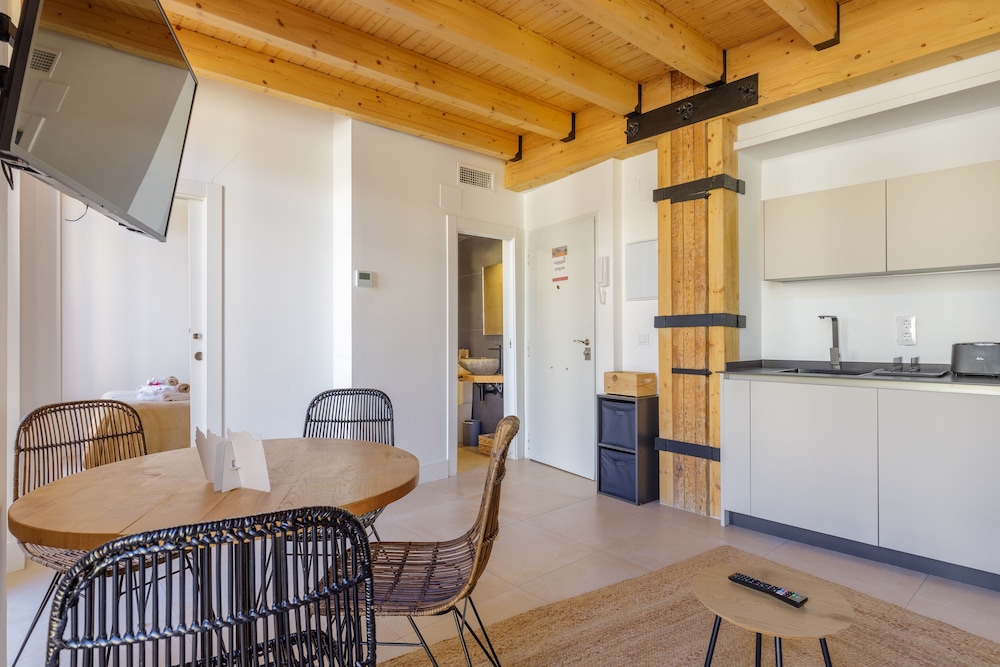 L’appartamento è molto bello, noi eravamo in mansarda quindi non ci disturbava il rumore dei locali la notte, posizione comodissima, mancava un forno a microonde, una tovaglia, uno strofinaccio