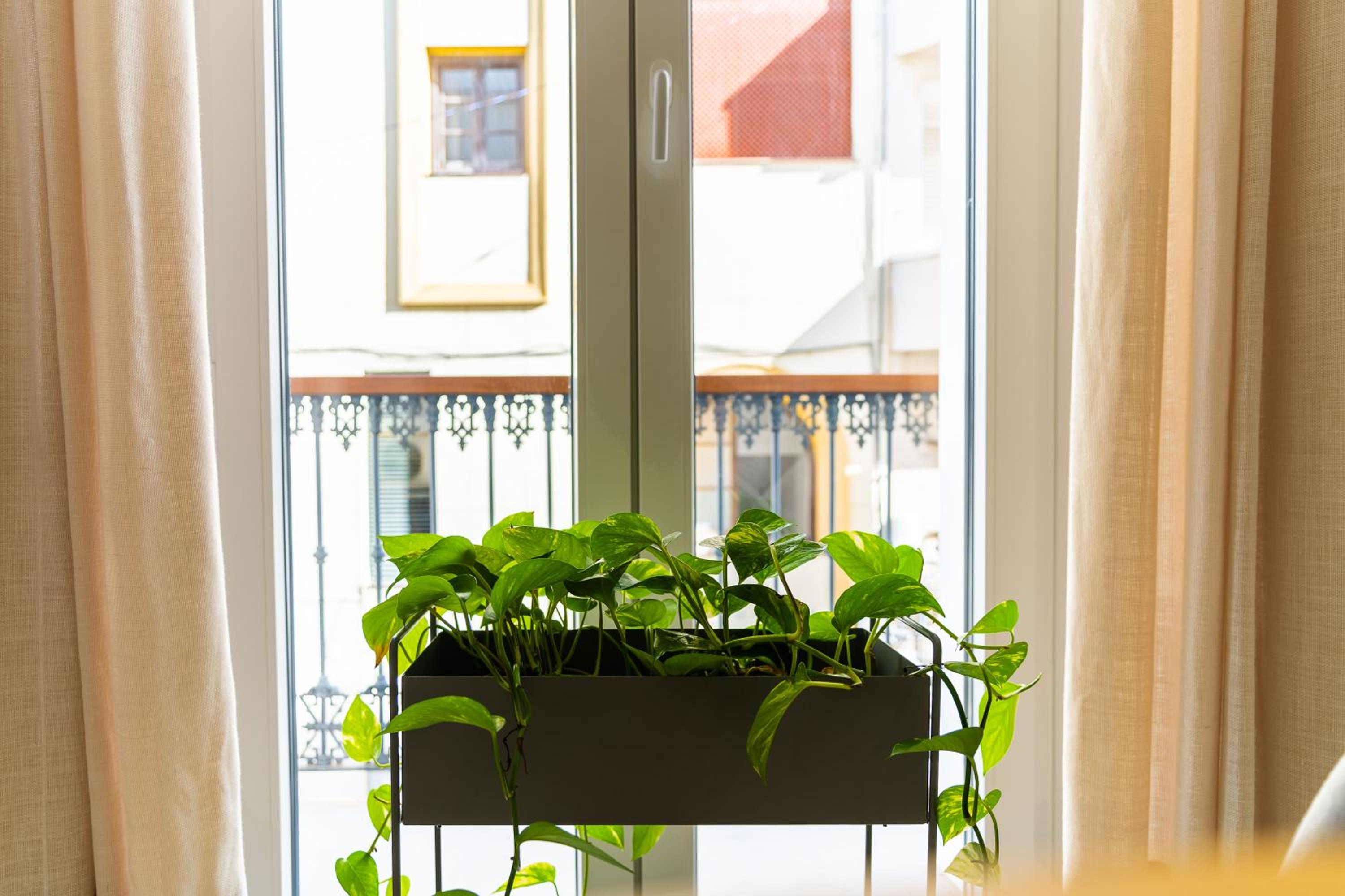 Podrían poner doble cortina en el salón para evitar la claridad que entra en el mismo a los que duermen en el sofá cama.