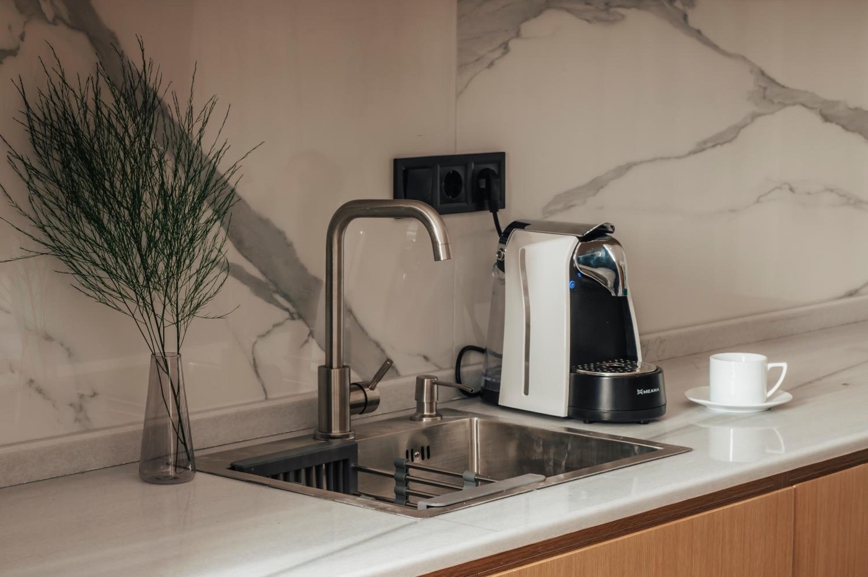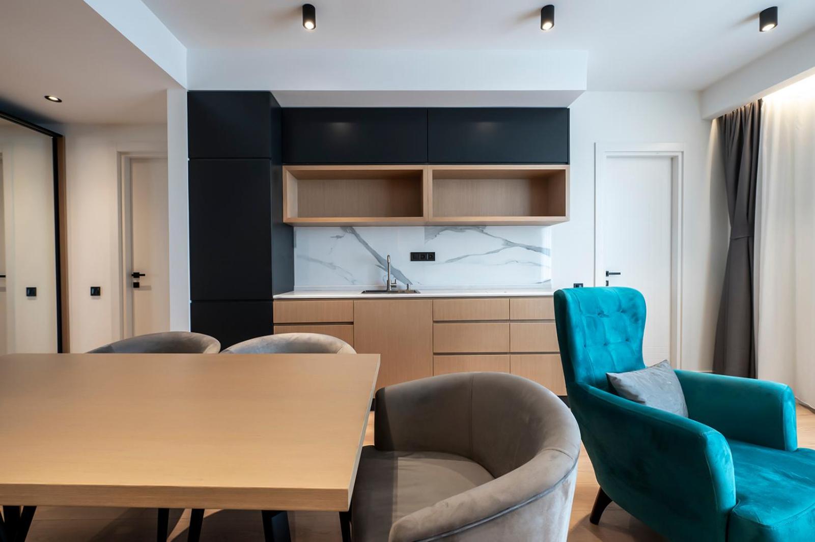 Kitchenette looked big, but had empty shelfs - no cutlery, just glasses and cups for tea/coffee. So do not consider it a kitchen.