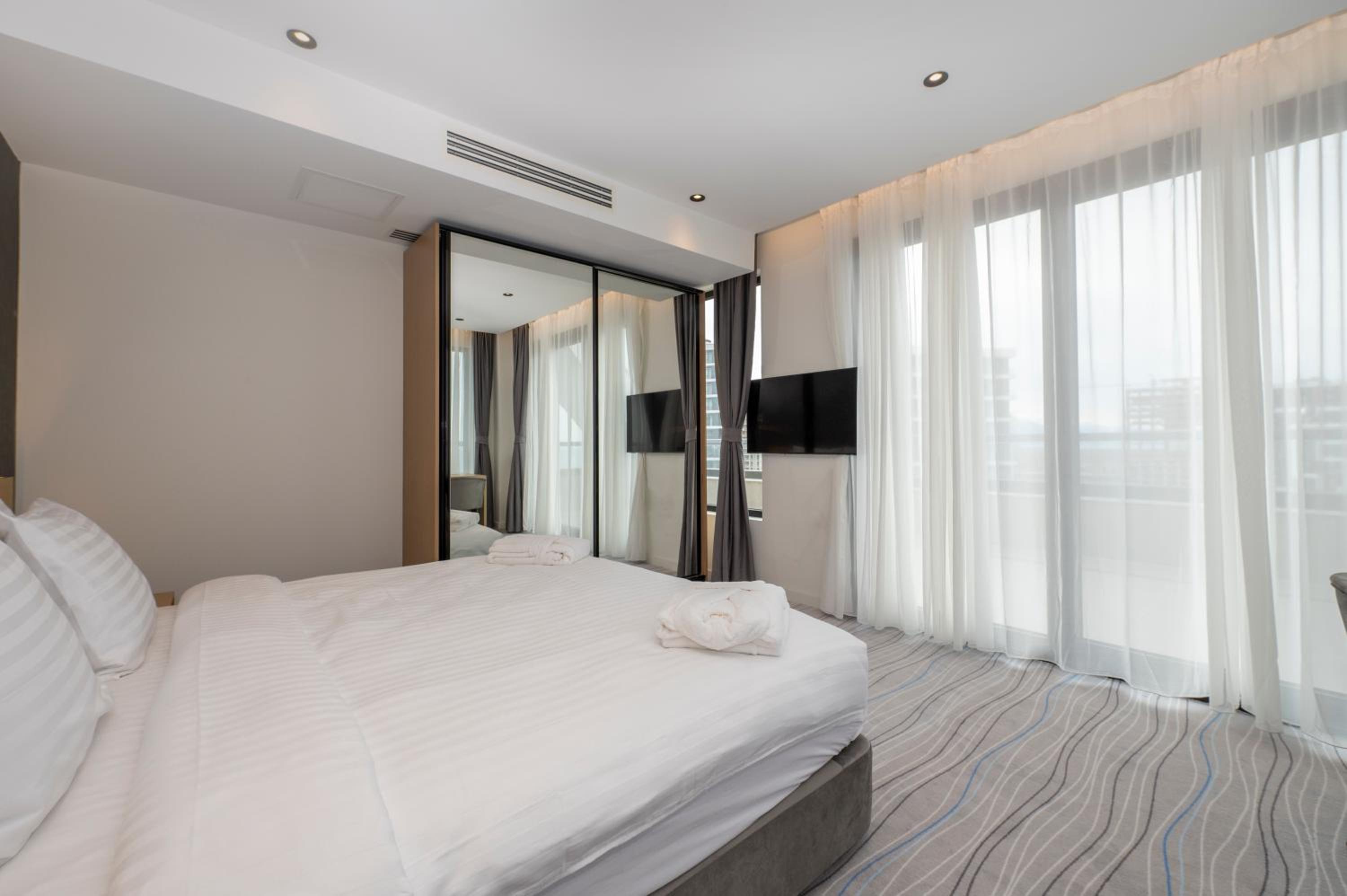 Чистый, аккуратный, мебель хорошая. Удобная кровать и подушки. На ресепшене мне во всем помогали, все рассказали. Удобное расположение, гуляла по набережной. Хорошие завтраки, особенно понравилось что они до 11 утра и есть круассаны. Ресторан на 15 этаже тоже хороший: вид классный, вкусные десерты, картофель и шашлык! Я получила удовольствие и мне понравилось. Внизу так же рядом есть грузинский ресторанчик, его мне рекомендовали на ресепшен и там очень вкусное харчо. Рядом много супермаркетов.