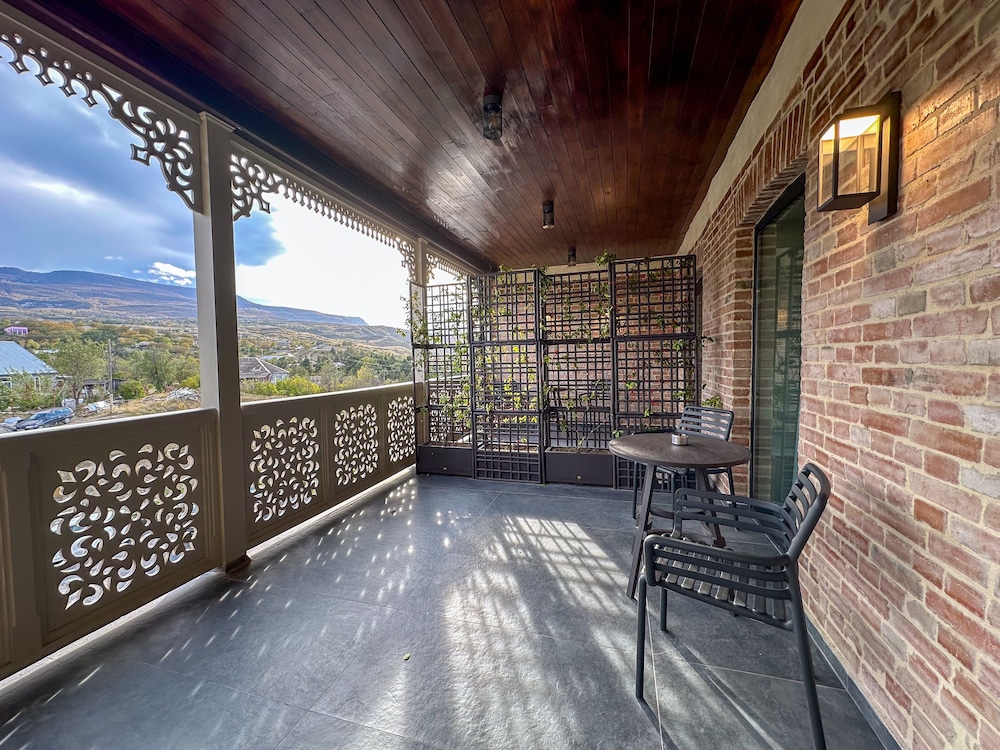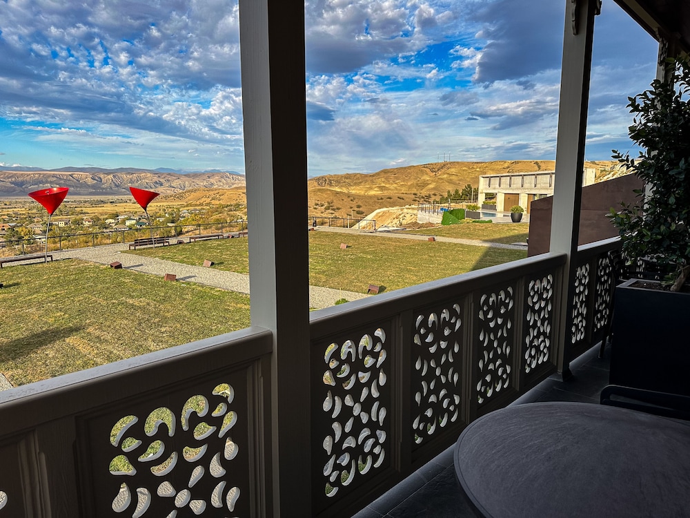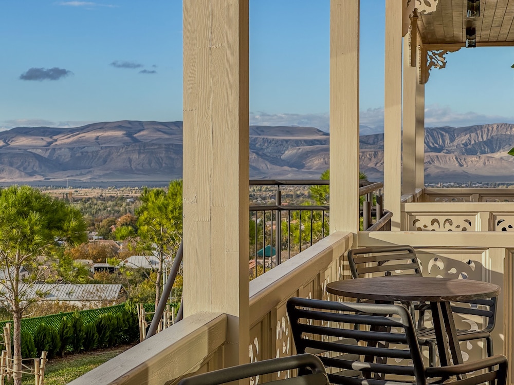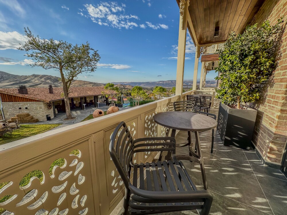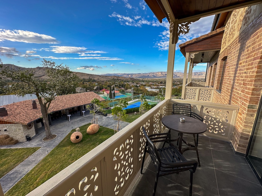 This is a charming hotel near Tbilisi, located in one of the regions known for producing excellent local wine. Although I spent just one night here, I really enjoyed my stay. The room was spacious and beautifully decorated, featuring a balcony with a great view and an amazing bathroom.