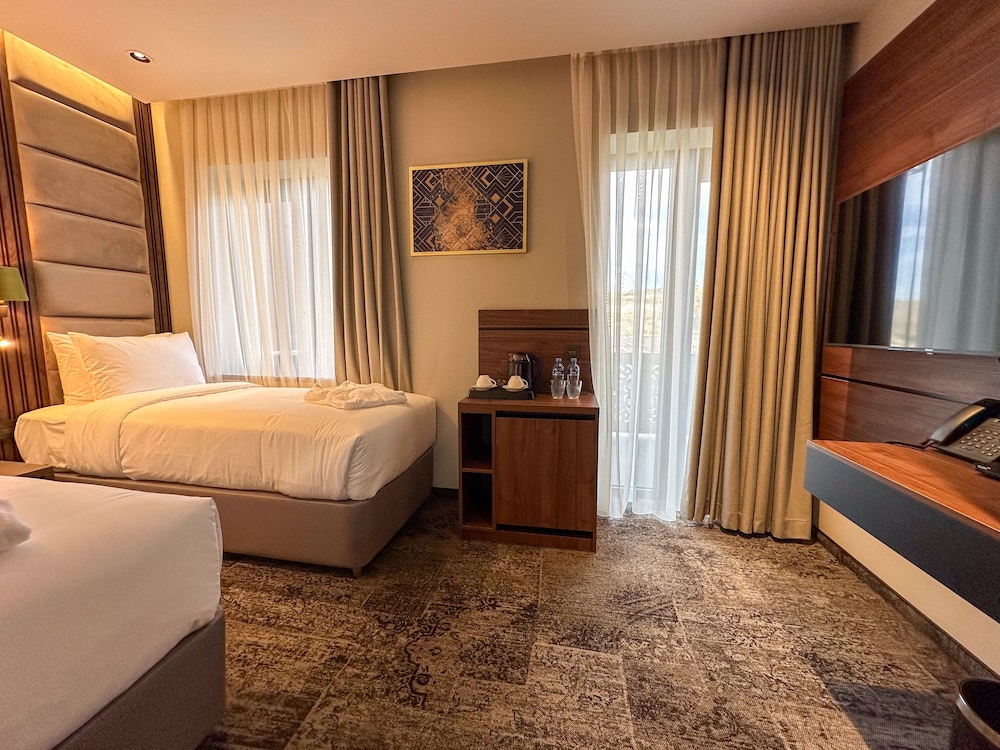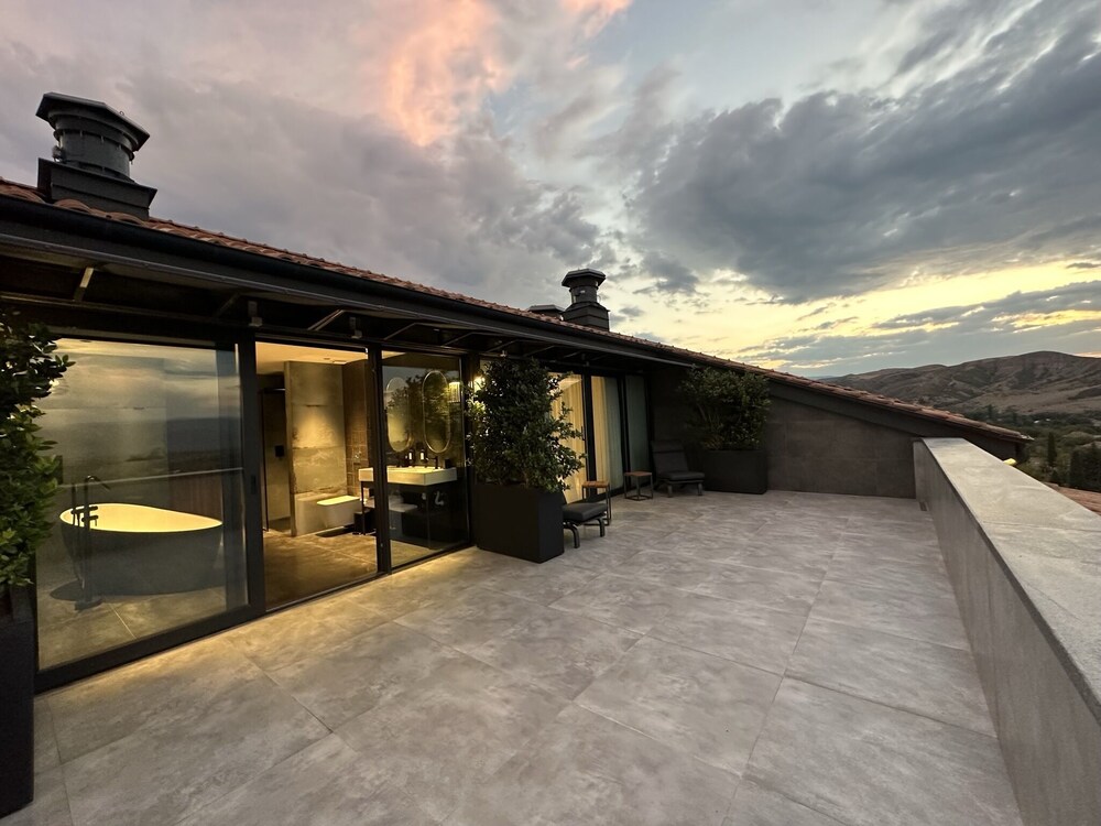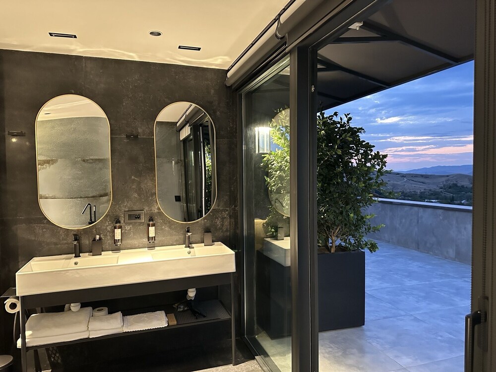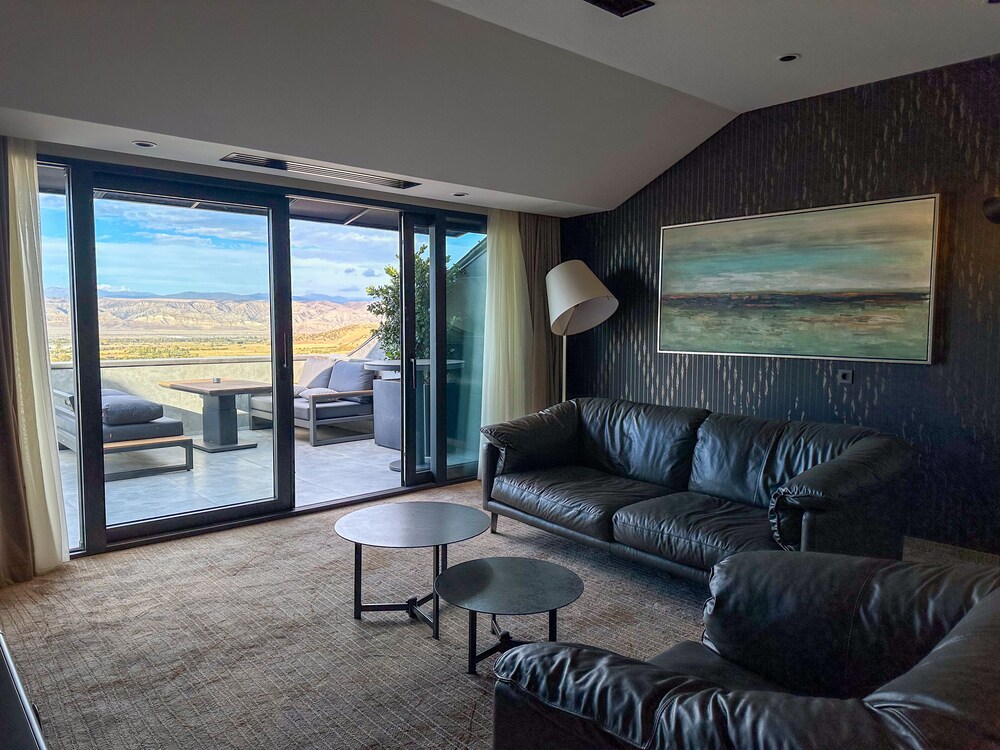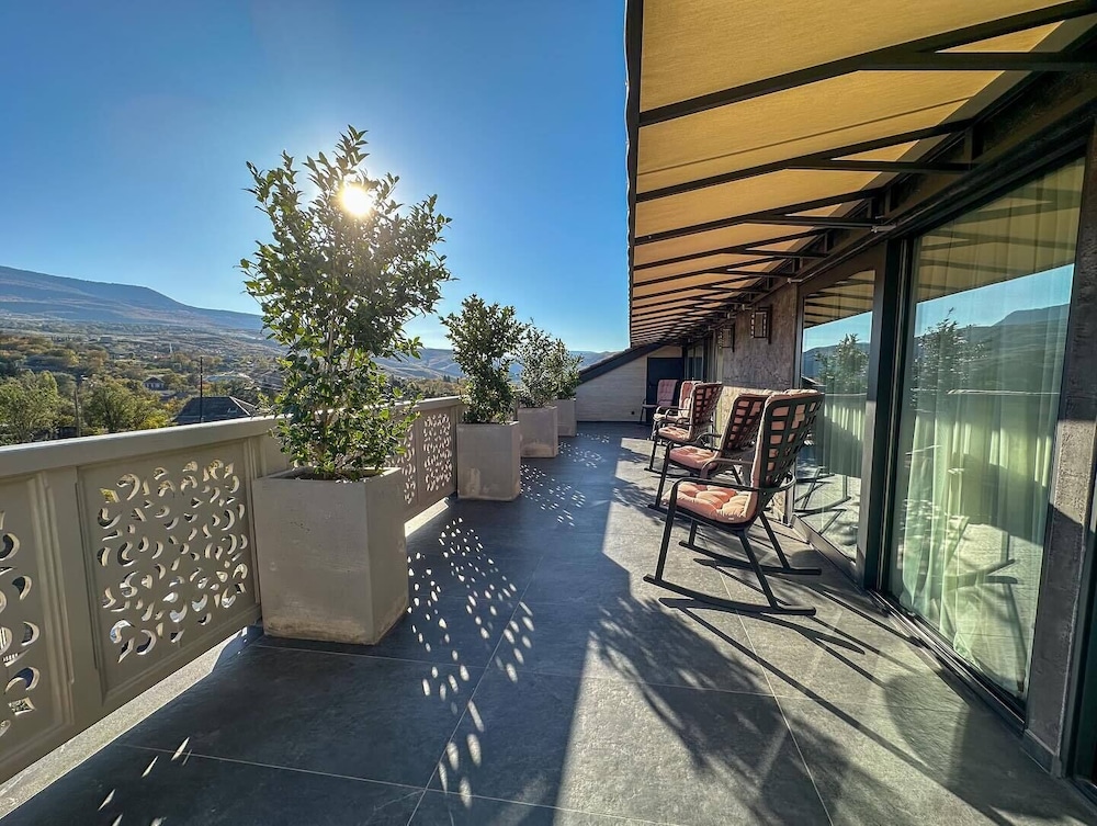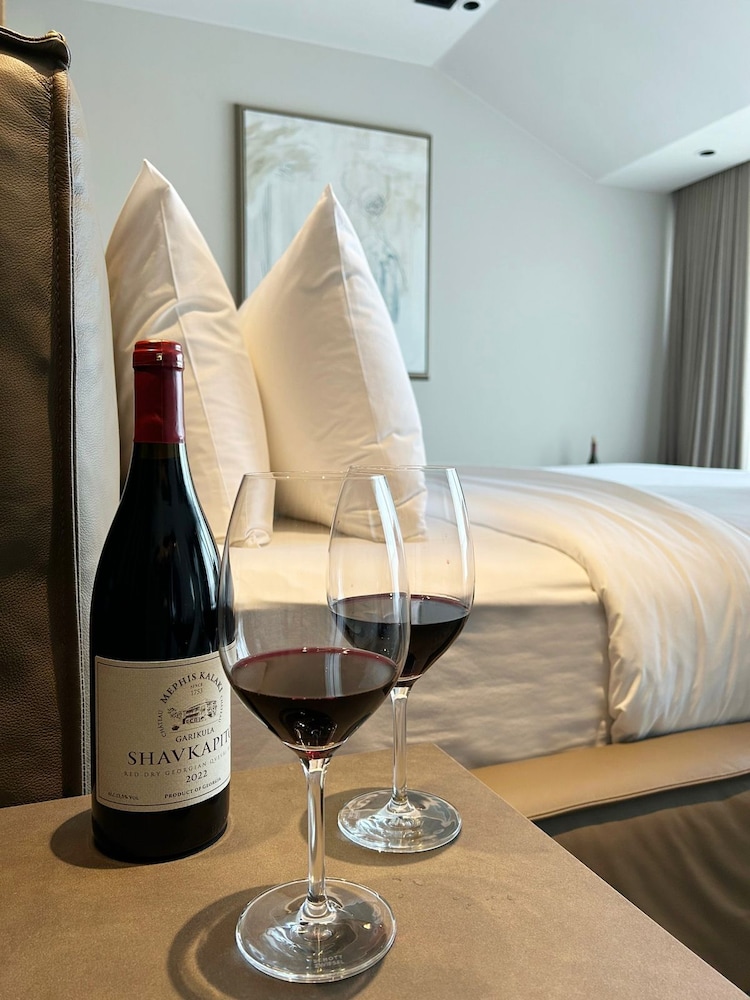 This is a charming hotel near Tbilisi, located in one of the regions known for producing excellent local wine. Although I spent just one night here, I really enjoyed my stay. The room was spacious and beautifully decorated, featuring a balcony with a great view and an amazing bathroom.