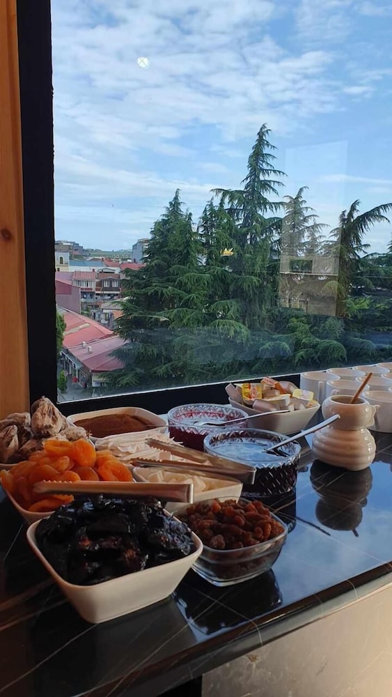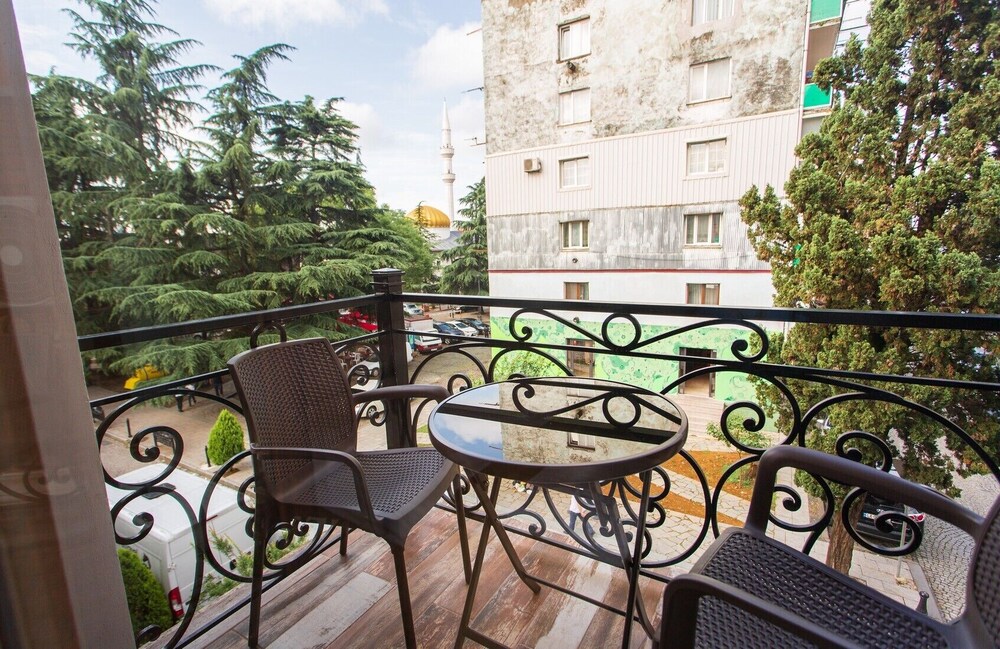 It's a new hotel at older part of Batumi. Rooms are nice and fresh. The area is quieter than modern parts of Batumi and not popular among Arabs etc. Thanks to this there is minimal traffic at night. There are still plenty of restaurants and shops around and it's a small walk to the beach. If you let them know ahead then they reserve parking place in front of the hotel. Parking at Batumi is a big problem and it's a good option. There are beautiful views from the breakfast room.