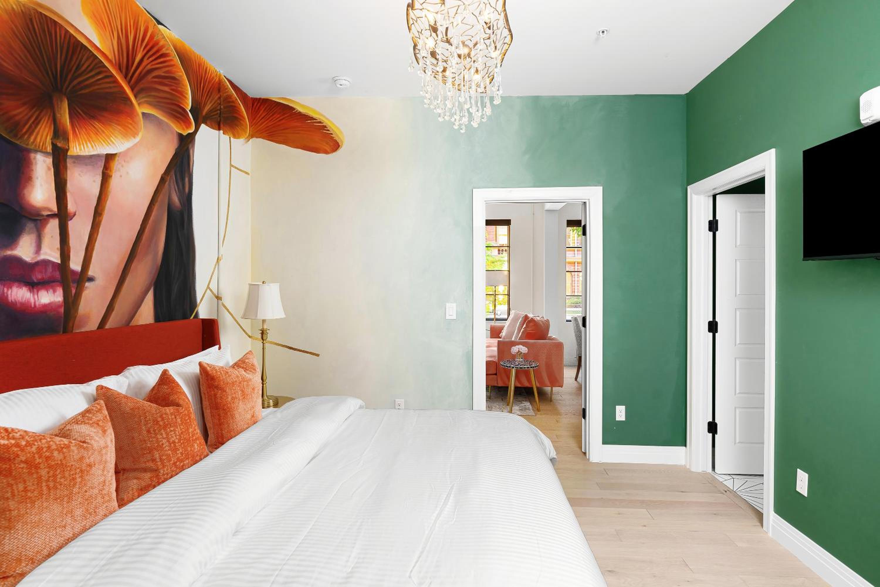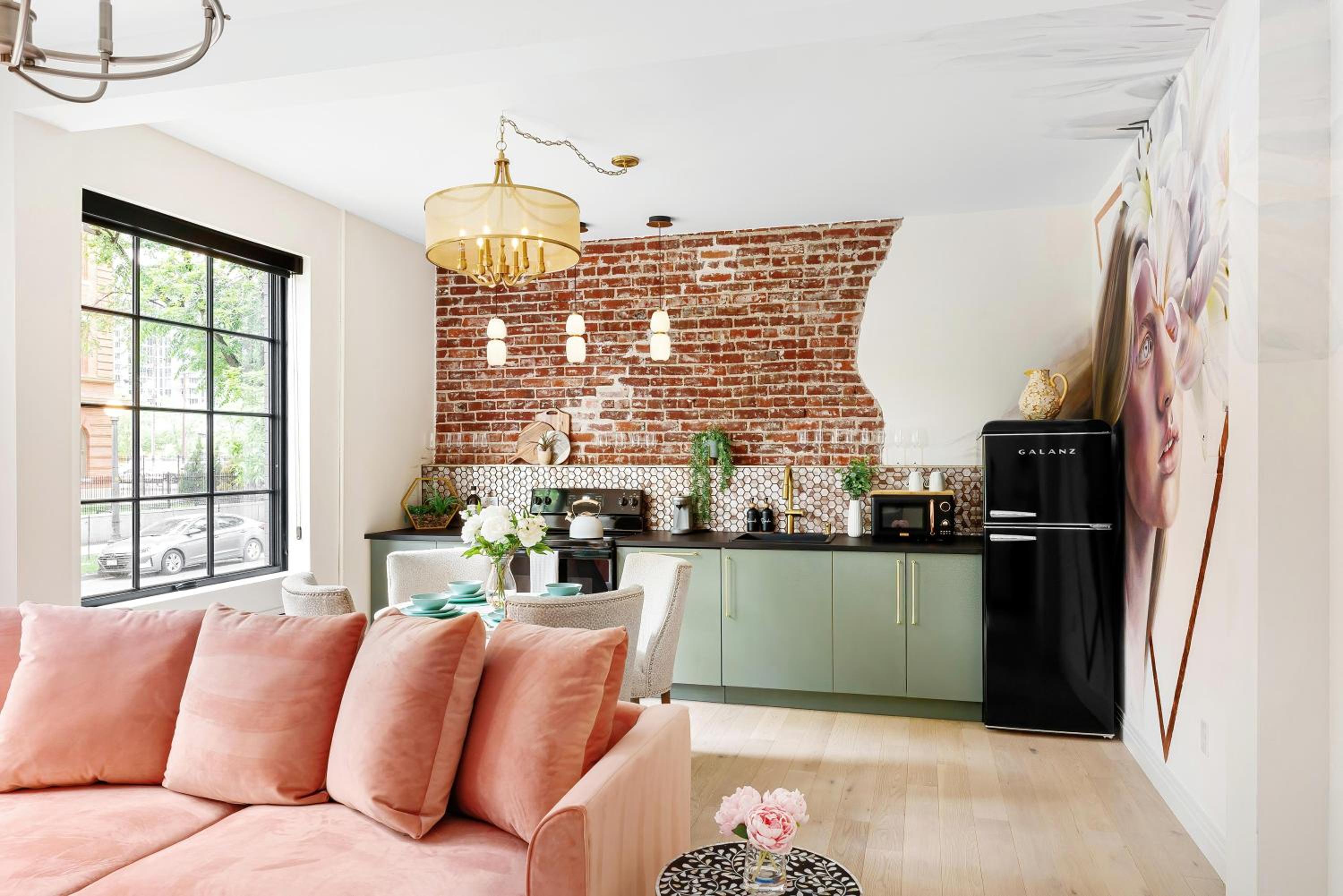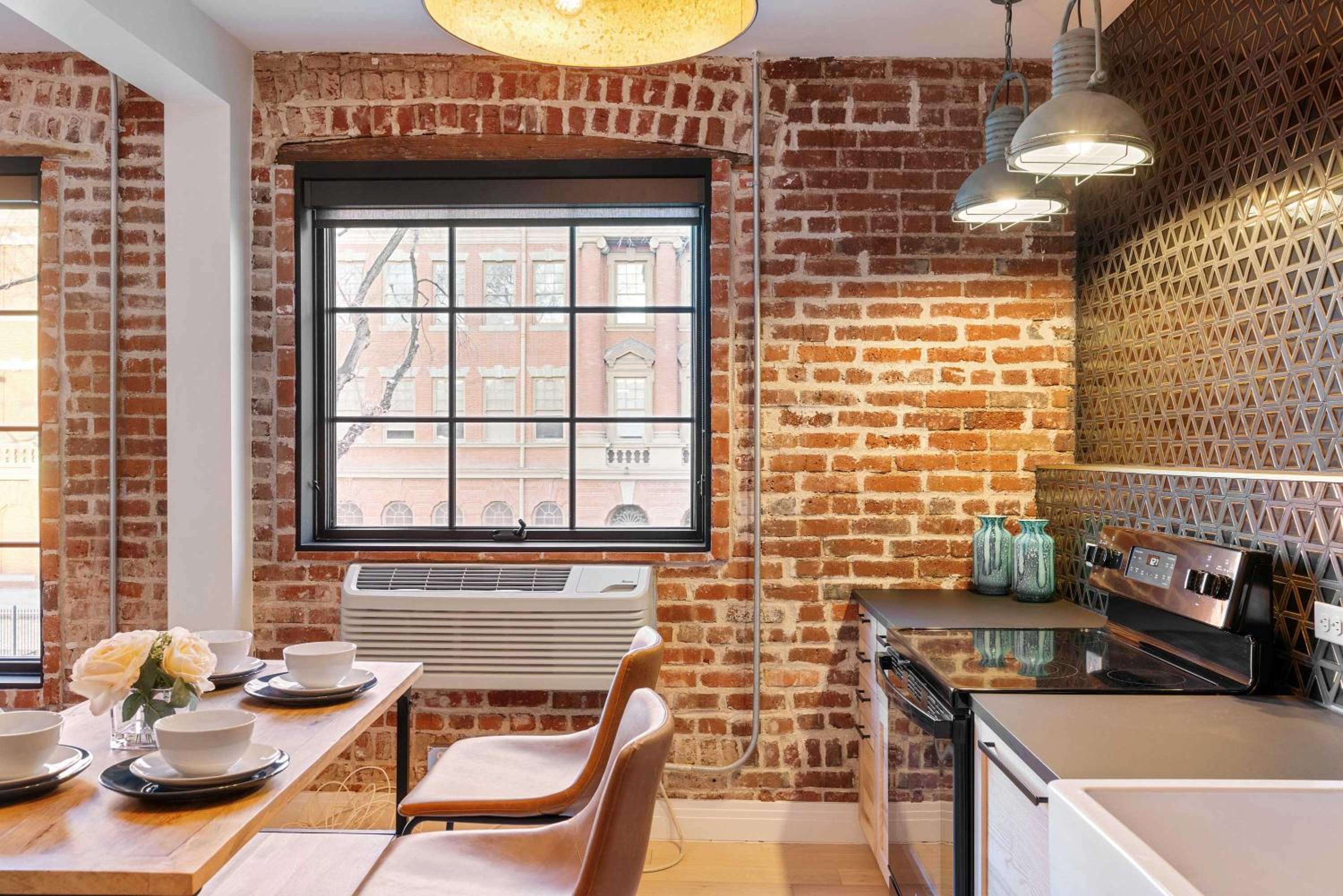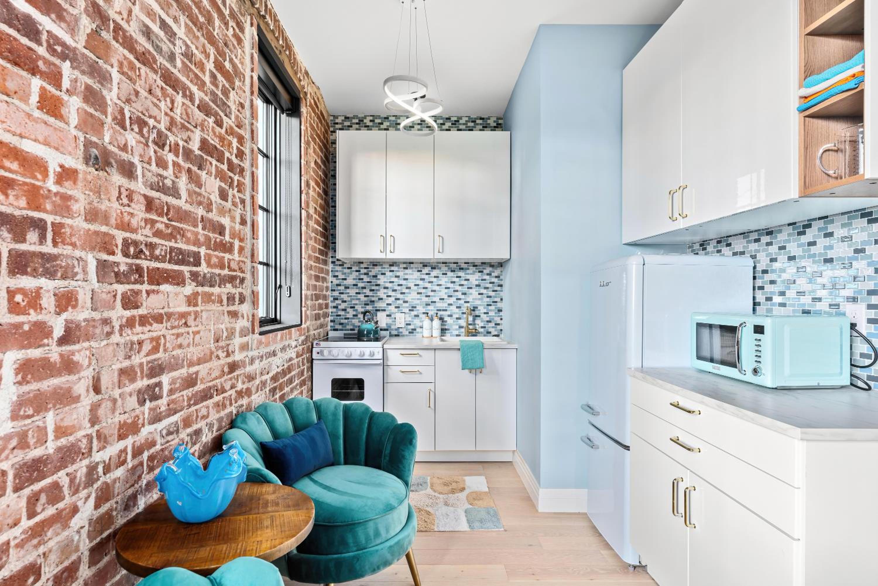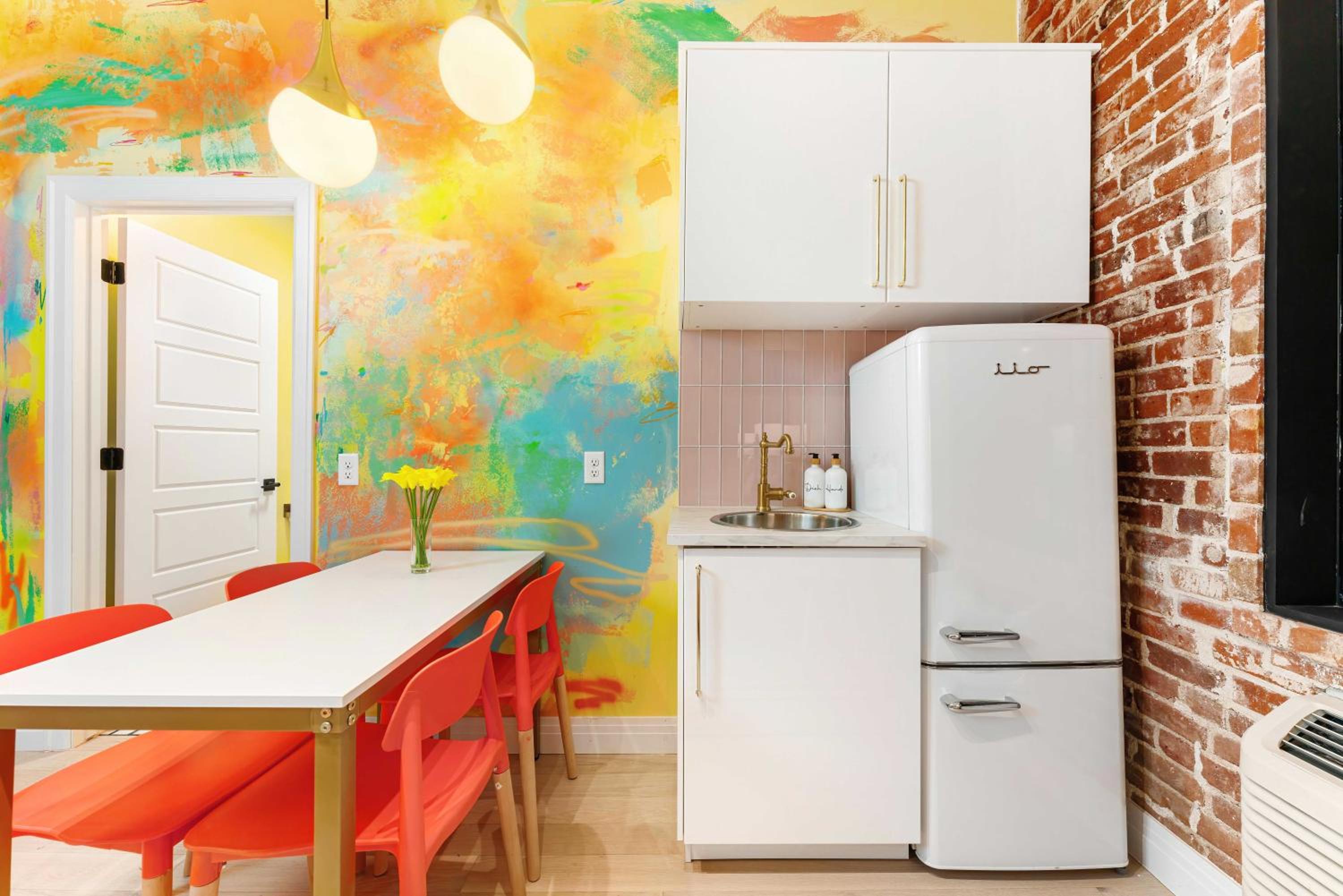 Eclectic decor!!! Full kitchen. Coffee. Old building repurposed. Felt very very safe. Parking lot next to building!!! Museums nearby. While staff not on site they were readily available by phone. Had access to available supplies. COMFORT is their focus !!!!
