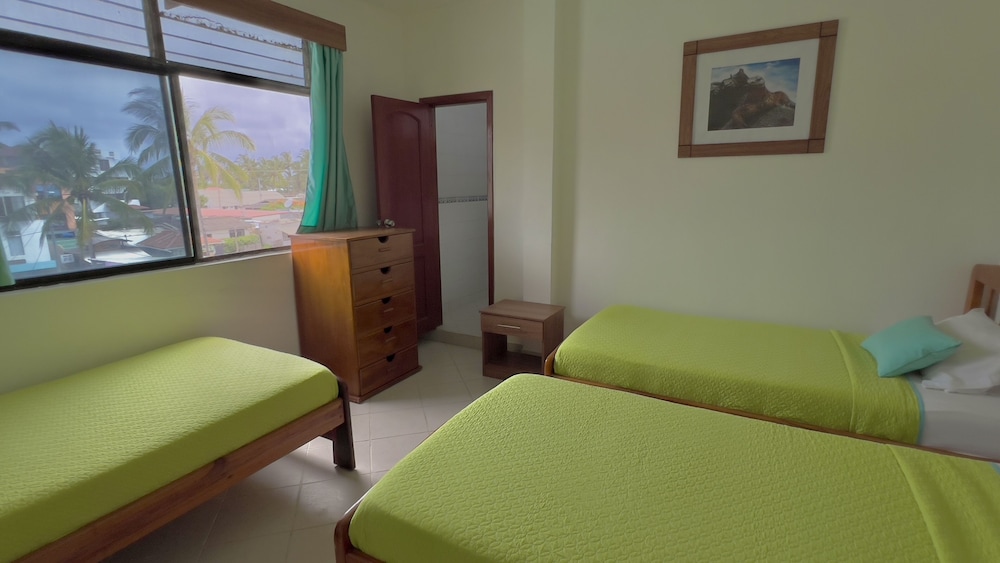 My husband and I stayed at Hotel Sierra Negra on Isabela Island for 3 nights. We had a beautiful view of the ocean and could hear the waves from the room. It is a 20 minute walk from the ferry terminal and close to restaurants, tour companies and shopping. We LOVED being directly on the beach and having an ocean view that included breakfast. It was well worth the price. There was always someone on-site to help and answer questions. The shower water pressure room 8 was a bit low but the room was clean and bed comfy. The breakfast was great with coffee, juice, fruit, eggs and toast. We would stay there again.