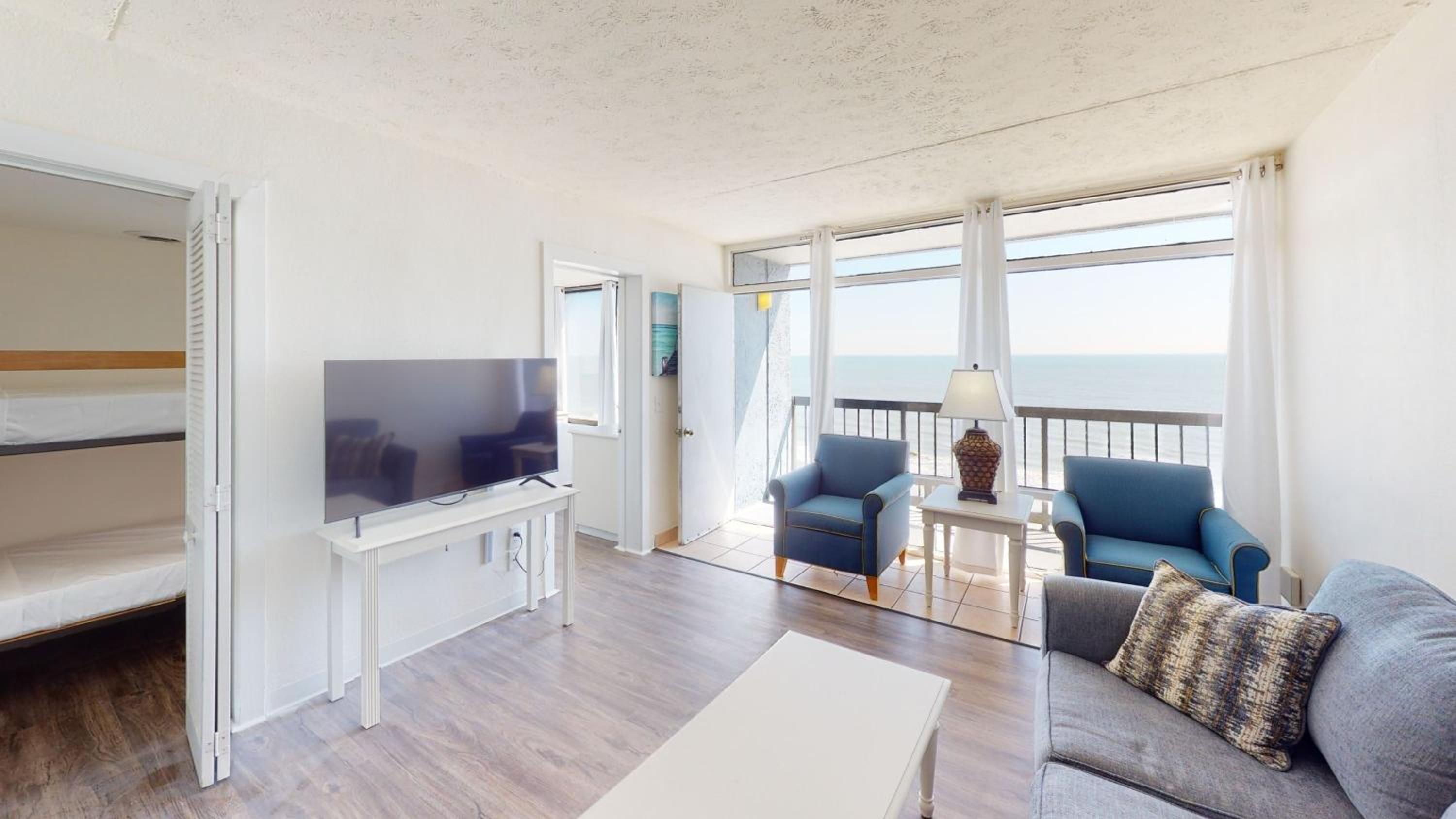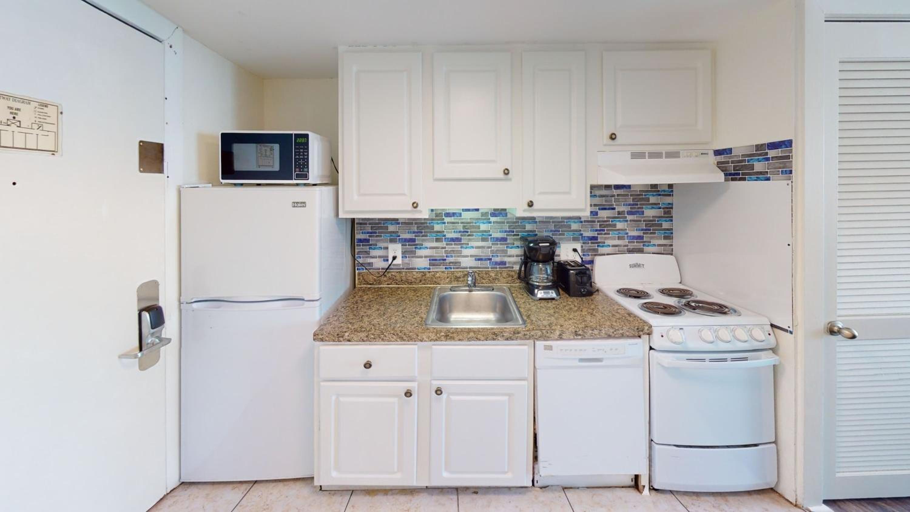 This place is deplorable, not clean, beds for kids are in a closet, no TV in the maim bedroom , cabinet door hanging off. There are no updated appliances. The window in the bedroom faces the inside corridor. I didn’t enjoy the accommodations and my grandkids and husband were vvery uncomfortable. The description on the internet is no where near what this place looks like. It was very deceptive. In their off season they need to do a deep cleaning. Bird poop and feathers are every where in the inside corridor. This was my first trip since Covid and I couldn’t wait to get home. I think I’m due a full refund due to the deception and description of property. We were up all night due to a huge spider crawling on the ceiling in the closet bedroom. I sat up and slept Friday night on the sofa with the kids and husband sat up Saturday night because the kids refused to sleep in beds in the closet after seeing the Spider. I would like a full refund . I never order out and cook. This was my reason for staying here for the kitchnette. I was afraid to even turn the stove on . The burner eyes were so Rusty. Mary really try’s, but the owner or owners really need to invest some money and clean this place. The rug in the elevator looks like it’s been there since 1970. The things mentioned can easily be fixed. You know when you get on the elevator , immediately you’ve chosen the wrong accommodations. We were so uncomfortable the kids were up at 6:30 am on Sunday asking when we were leaving.We left the resort by 7:40. To have driven 6 hrs to get here and have sleeping and long conditions like this is absolutely mortifying.