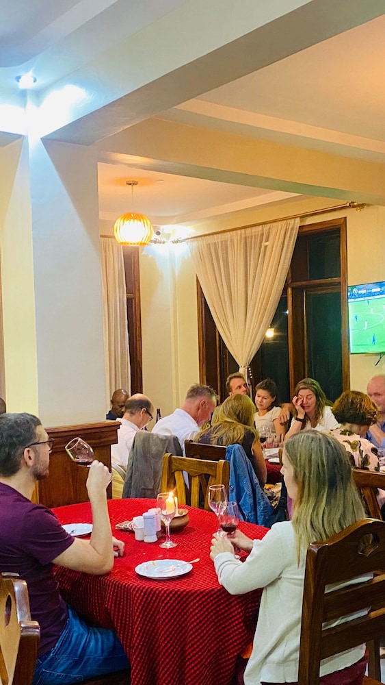 As the name would imply, the hotel is located uphill from the main street of the town. The rooms were spacious and were separated by a wall, so each person had their own section. The bathroom was an issue as the toilet, sink and shower were all in the same place, so that if someone had a shower, the whole floor would get wet. The wi-fi was inconsistent but worked better in the dining area. The restaurant had minimal options and you had to order what you wanted for the evening hours beforehand. I did not expect too much from this hotel but the staff were very friendly and helpful, especially in finding us something to do on our free day there. There are no lifts, so a bit of walking to do to get to your room.
