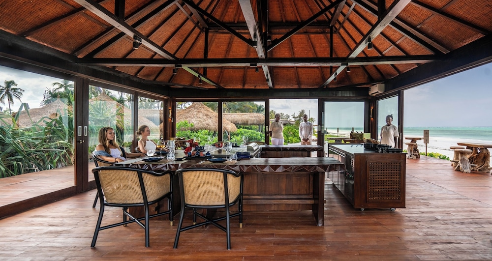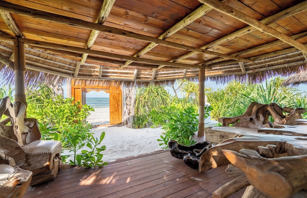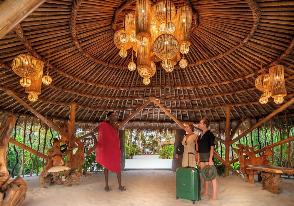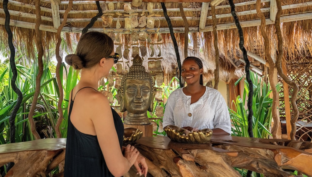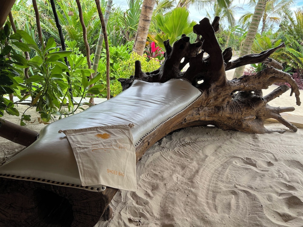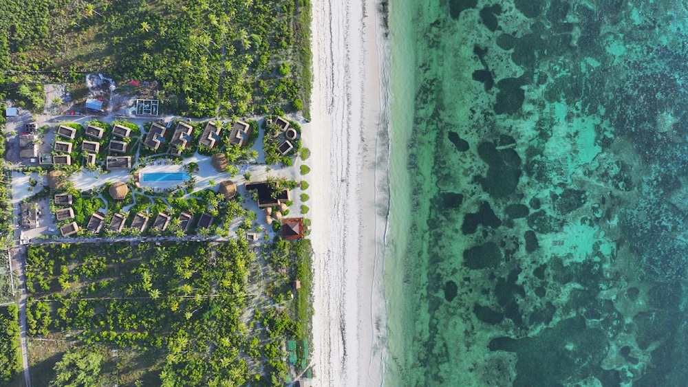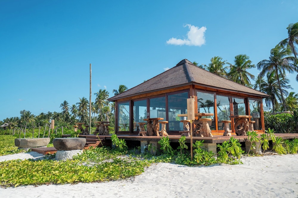 Så otillgängligt så det var svårt att förstå om någon resort skulle finnas . Väl framme öppnar sig en underbar resort som man blir kvar på tills det är dags att lämna . Stora möjlighet till långa beach promenader . Vänligt mottagande i receptionen under halmtak och lite bubbel var välkommet . Fråntagen skor är man barfota under hela vistelsen i den kritvita sköna sanden . Vacker långsmal pool med dynförsedda vilstolar och parasoller , all inclusive gäller med frukost lunch och middag. Lunchen bäst tyckte vi då middagen flera gånger var lite under medel . Vänlig personal och som alltid på Zanzibar lite långsam och glömsk . Oftast charmigt men ibland irriterande. Bra massage i vacker miljö . Villor med pool att föredra då de utan kändes lite små . Italienskt ägande och indisk manager . Tanzanisk personal i övrigt oftast från fastlandet. Bra plats ,att rekommendera.