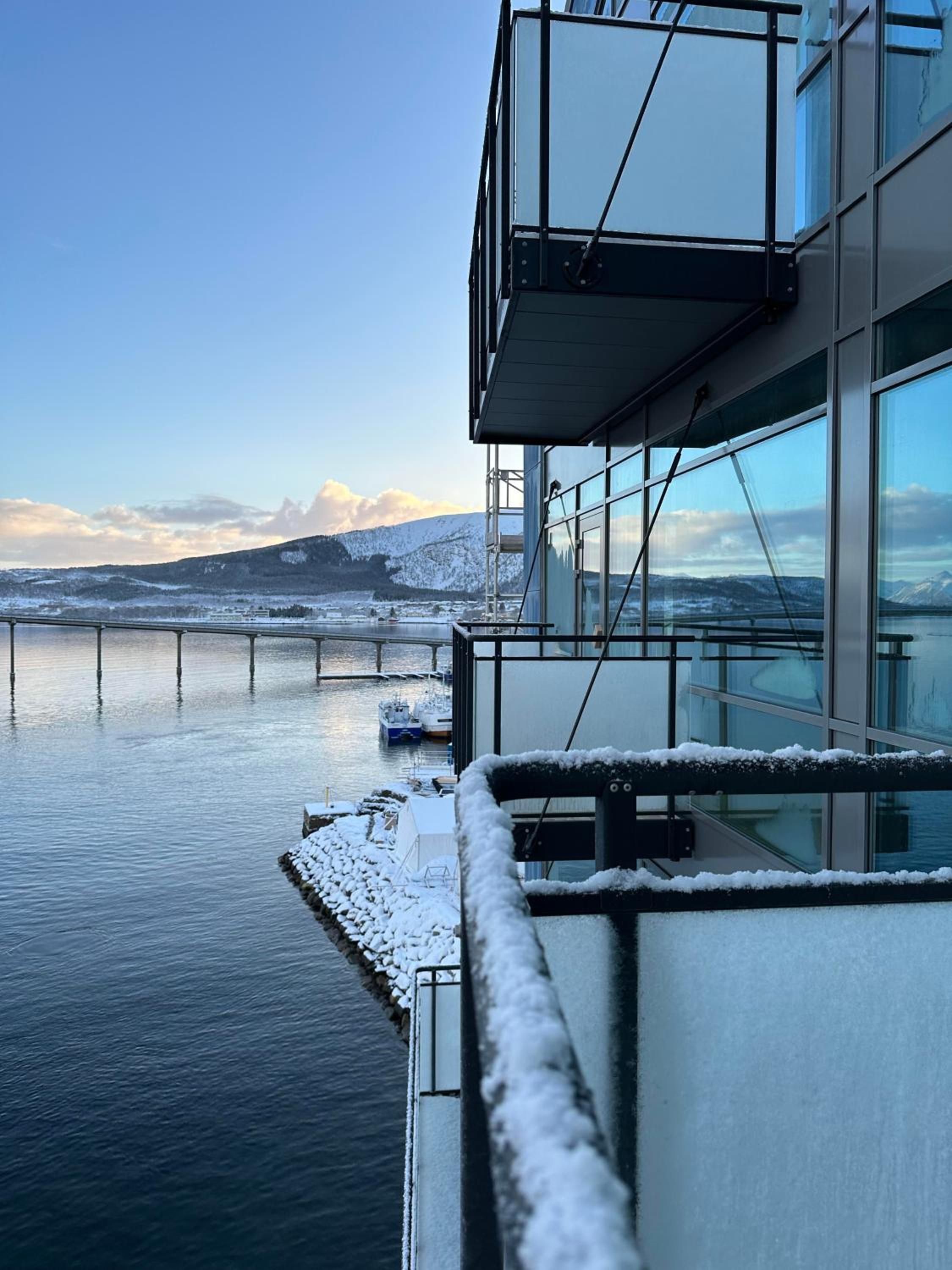 Belle chambre avec une vue panoramique sur la baie qui nous a permis de voir une aurore boréale de notre balcon 🤩