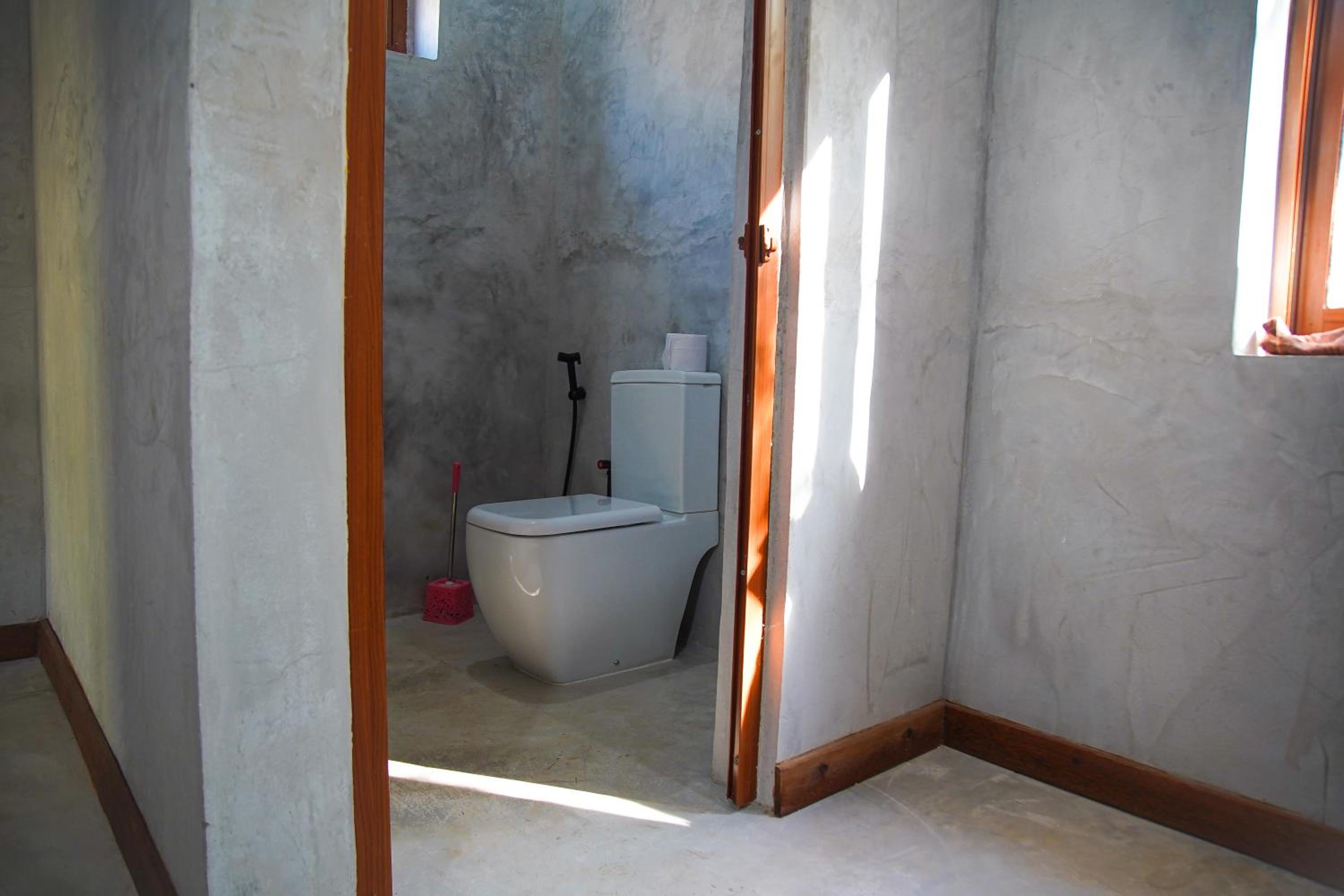 El bungaló con baño privado y ducha al aire libre que nos dieron como upgrade por estar en obras en la terraza.