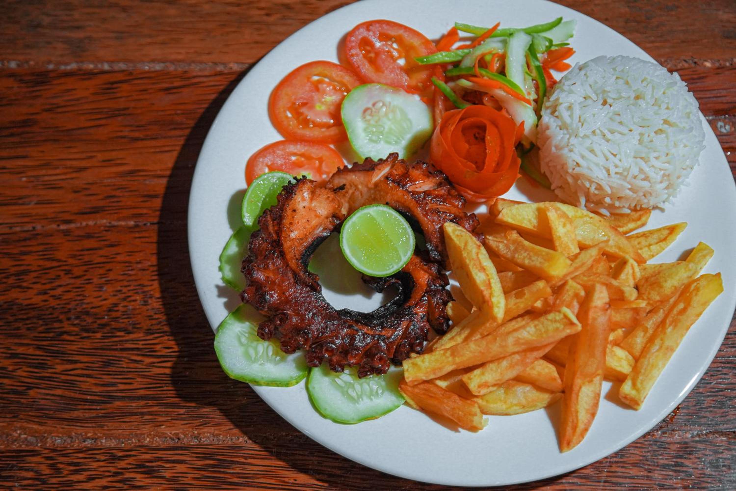 The breakfast pancakes and fresh fruit were superb. There was real coffee in a cafetiere but despite constant requests it was not made strong enough for our usual tastes. The staff team were very accommodating on special requests including going out to fund tamarind for juice and jackfruit for us. The manager Mr Hamisi was super helpful and all the staff were keen to support even if there were some misunderstandings due to language.