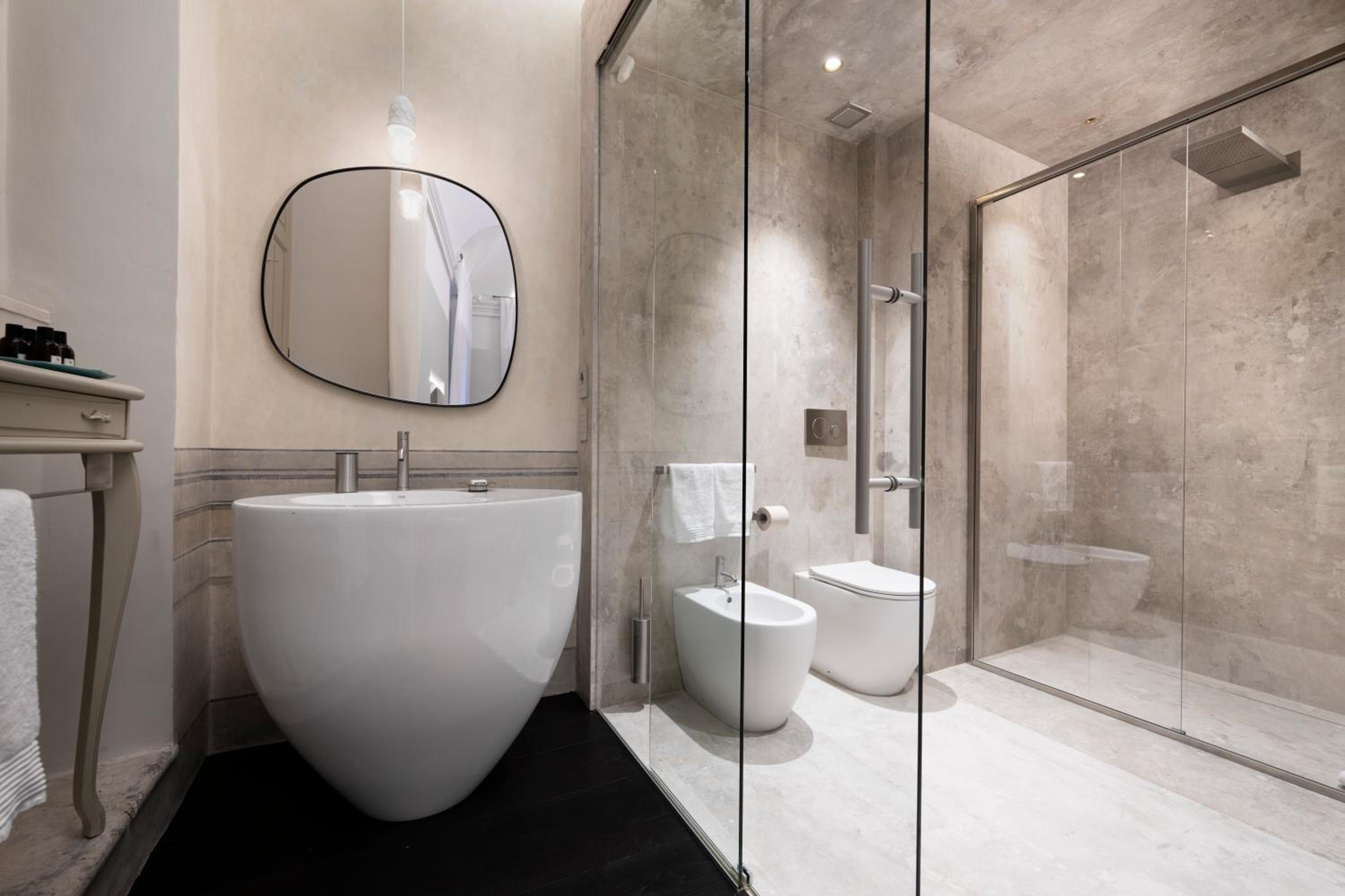 Sehr grosses, modern eingerichtetes Zimmer. Tolles Badezimmer. Kostenlose Minibar wurde wieder aufgefüllt mit guten Produkten. Ungewöhnlicher Wellnessbereich (Sonderpreis für Hotelgäste). Sehr zentral gelegen und nur 5 Zimmer bzw. Suiten.