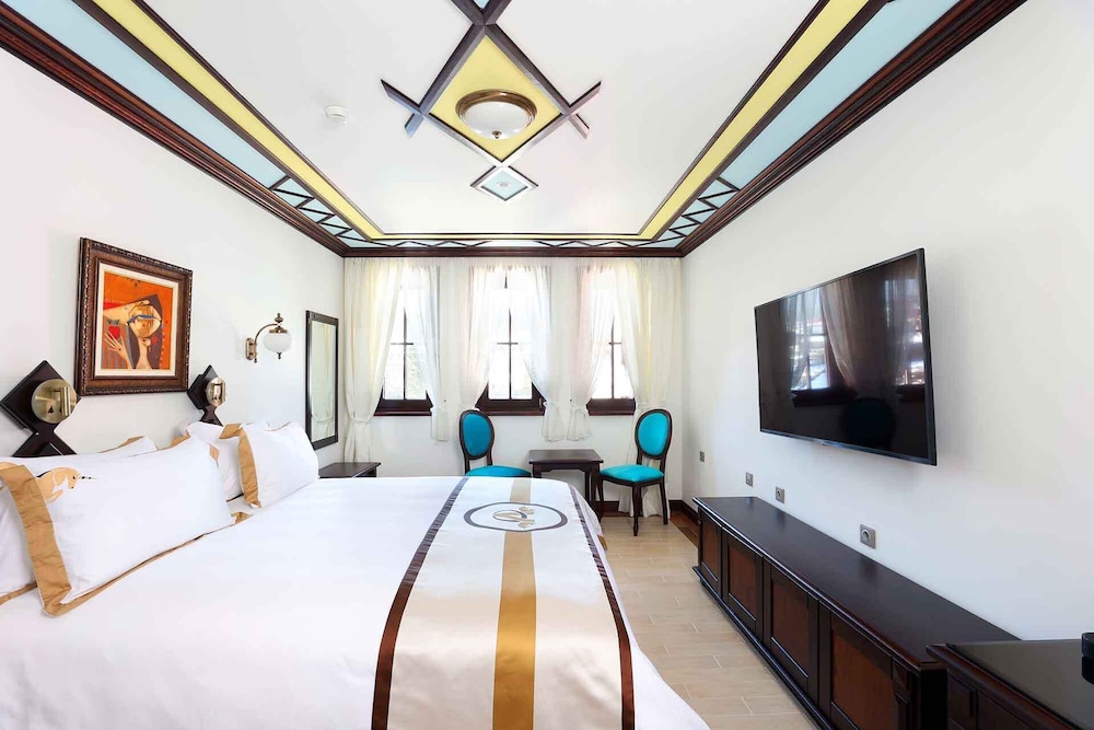 Sin lugar a dudas uno de los mejores hoteles en los que he estado nunca. El edificio es precioso en una casa del renacimiento búlgaro. Decorado con mucho gusto. Habitación súper amplia con un montón de detalles, agua, botellita de vino tinto, blanco. Recibimiento con copa de vino. El spa expectacular y qué decir del desayuno, delicioso. No es bufet pero nos ofrecieron 5 tipos diferentes de desayuno completisimos, que nos dejaron elegir tantos como quisiéramos, pero con uno tuvimos suficiente. El personal muy amable en todo momento incluso en el spa nos ofrecieron bebida de cortesía toda la que quisiéramos. Sin duda hay que alojarse aquí, sin pensármelo repetiría.