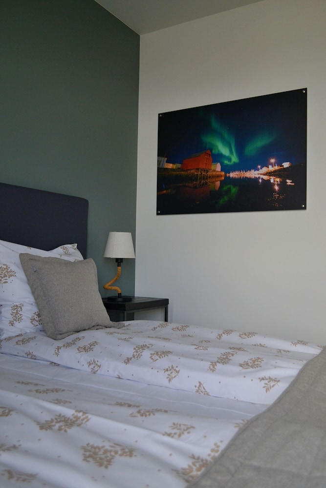 Andenes Suitehotell kan jeg anbefale på det varmeste. Jeg hadde en hel liten leilighet med stue og kjøkkenkrok, soverom og bad. Det er stilfullt, romslig og rent. For meg som rullestolbruker var det absolutt rullestolvennlig. Om morgenen fikk jeg meg en god frokost.