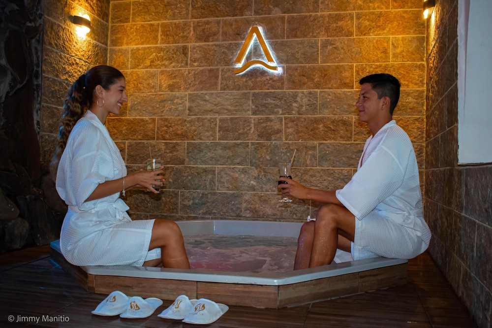 Indulge in luxury at Fernandina Hotel & Spa Galápagos with access to an outdoor pool, spa tub, and bicycles for exploring. Unwind at the poolside bar after a day of adventure.