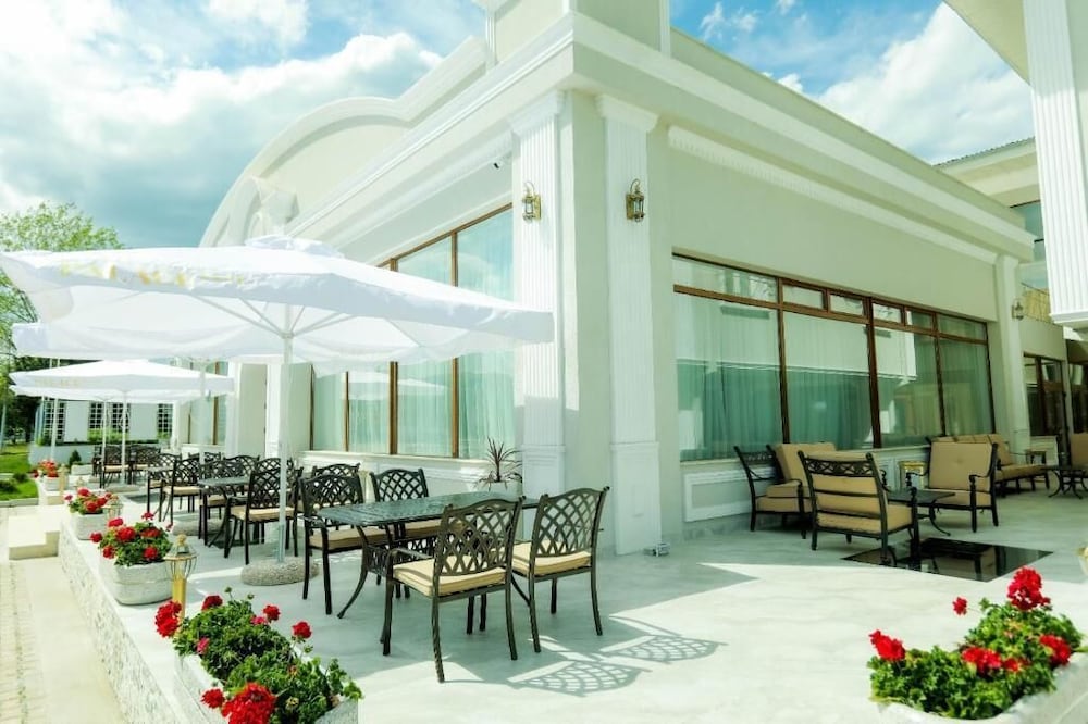 Don't be fooled. This is not 4* hotel. This is a wedding hall (and it looks to be really nice place for a wedding), but as a stand-alone hotel it doesn't conform to 4* standards. No restaurant, no room service, no breakfast (sic!), no water in the room, front desk staff doesn't speak English - nothing you'd expect from 4-star hotel. The location is also terrible - far from anything but the gas station where you can buy something to eat in the morning.