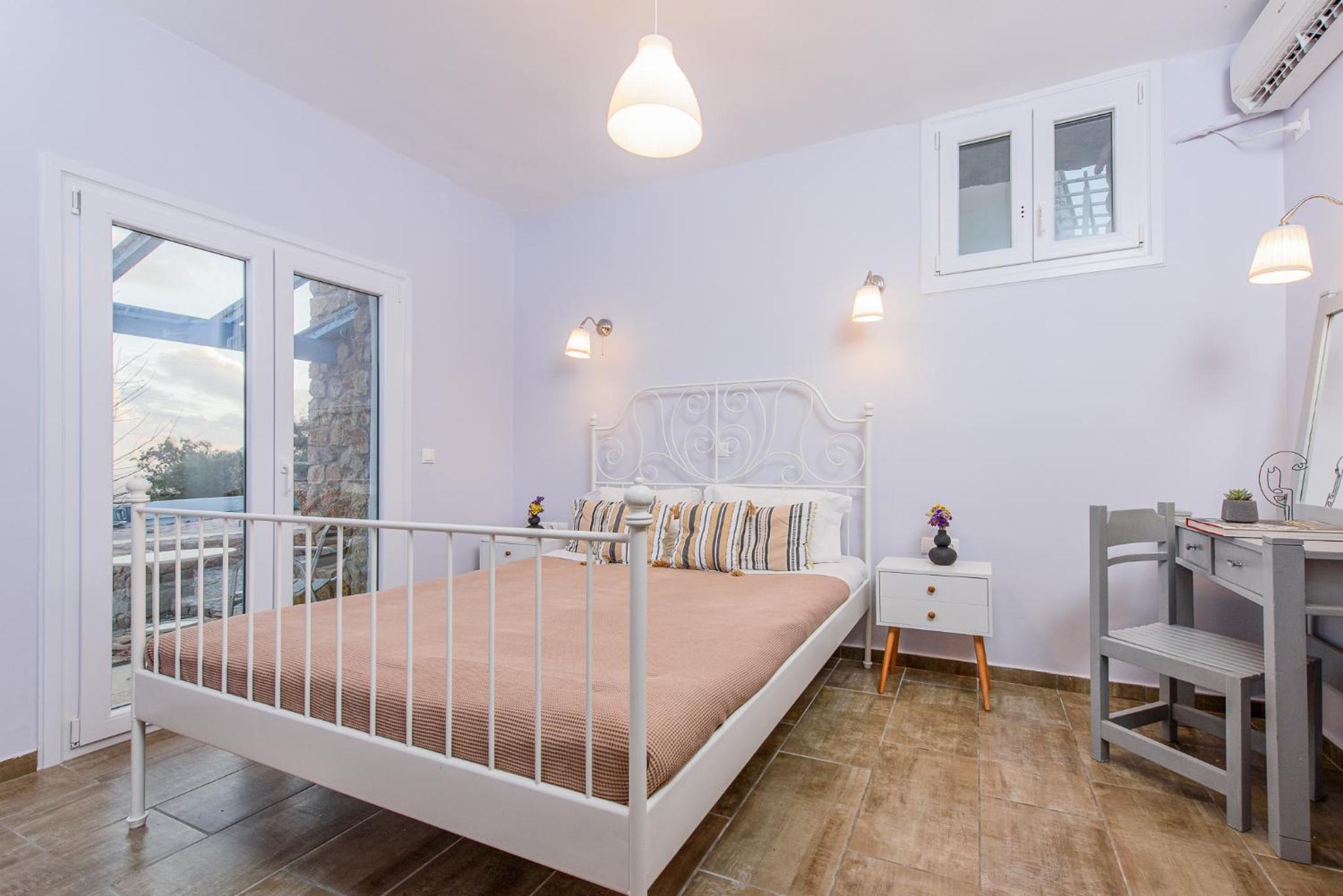 Ontvangst niet gastvrij. Humeurige eigenaar. Ligt aan een drukke weg. Wandeling van 20 minuten naar Pyrgos levensgevaarlijk. Gebrekkige badkamer. Geen kapstokken. Auto is een must. Taxis peperduur. Zeer afgelegen. Niet aan te raden.