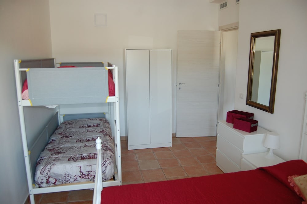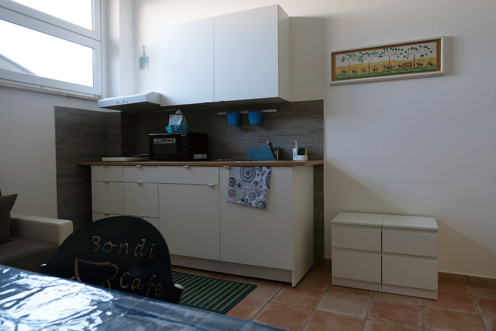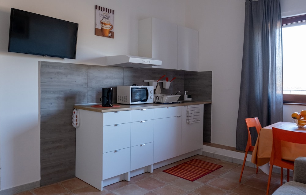 Camera pulita, cucina ben organizzata, posizione rispetto al mare buona.