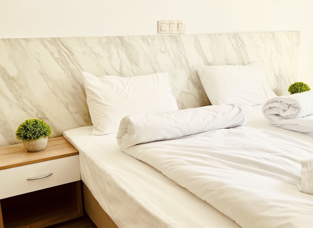 The hotel was really lovely -- quiet and brand new -- and the owner was very helpful and spoke excellent English. There is a Lidl nearby that makes for easy grocery shopping and it is a 15 min walk to the center of Sophia.