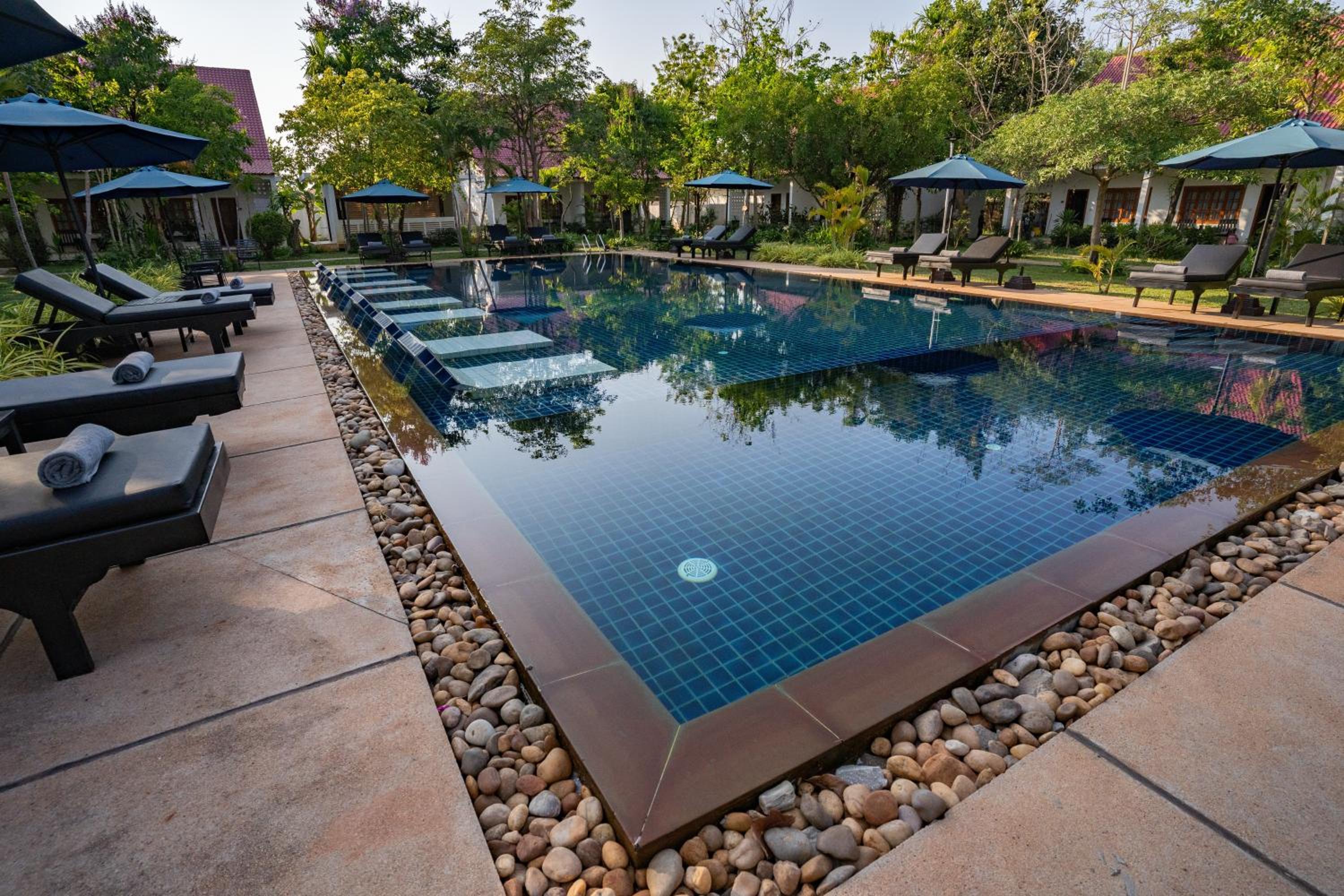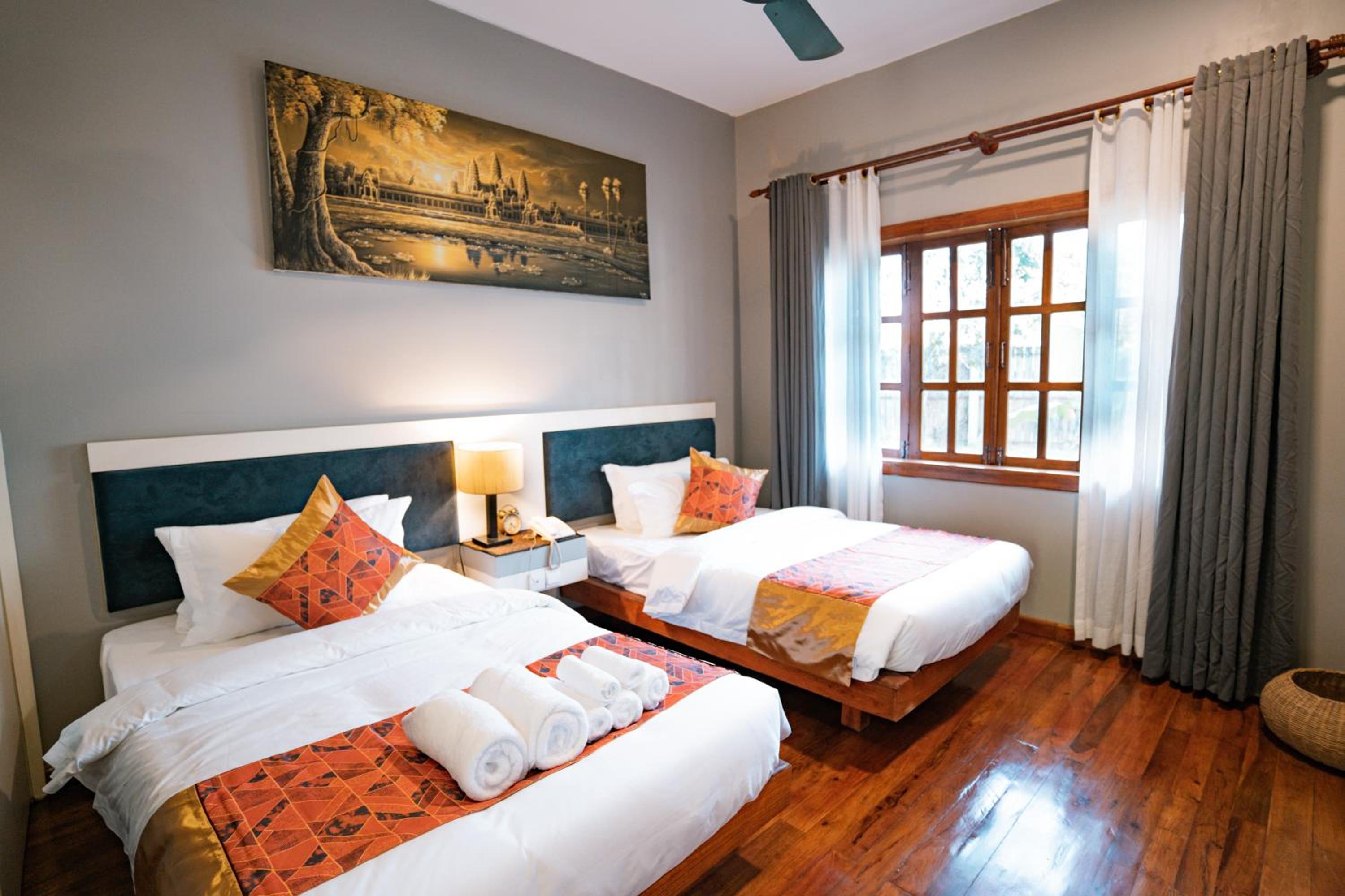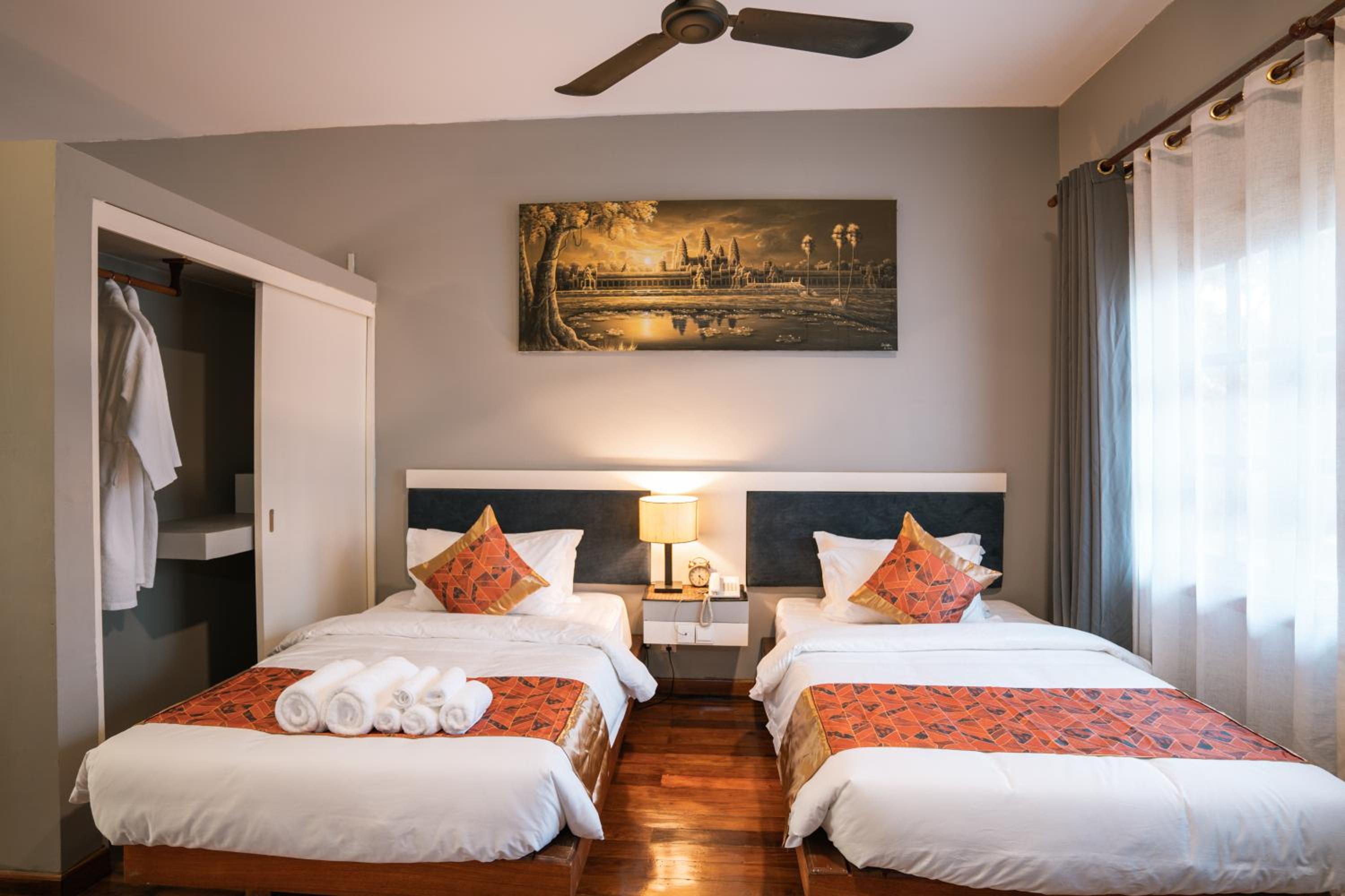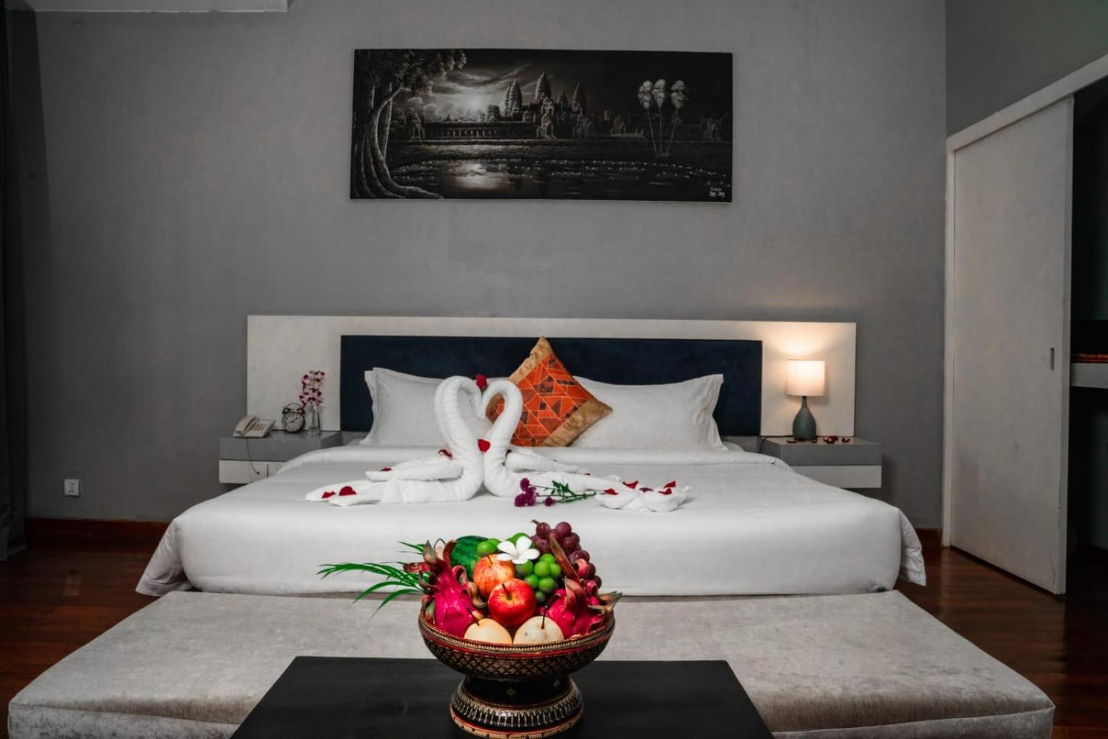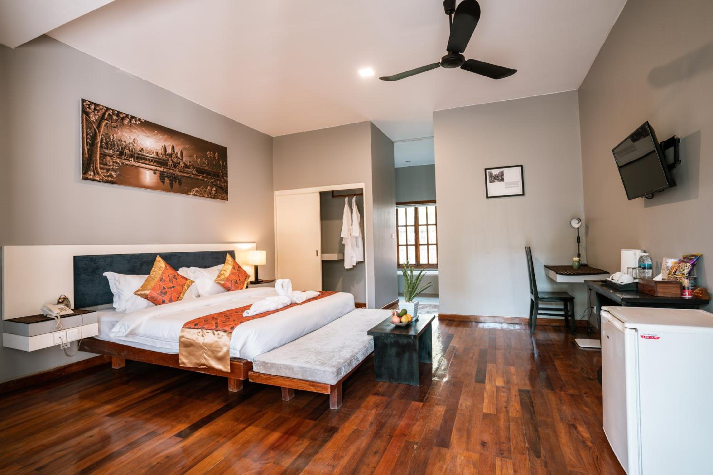 Amazing Palm Resort in Siem Reap offers air-conditioned rooms with modern amenities like a flat-screen TV, minibar, and private bathroom, ensuring a comfortable stay for guests.