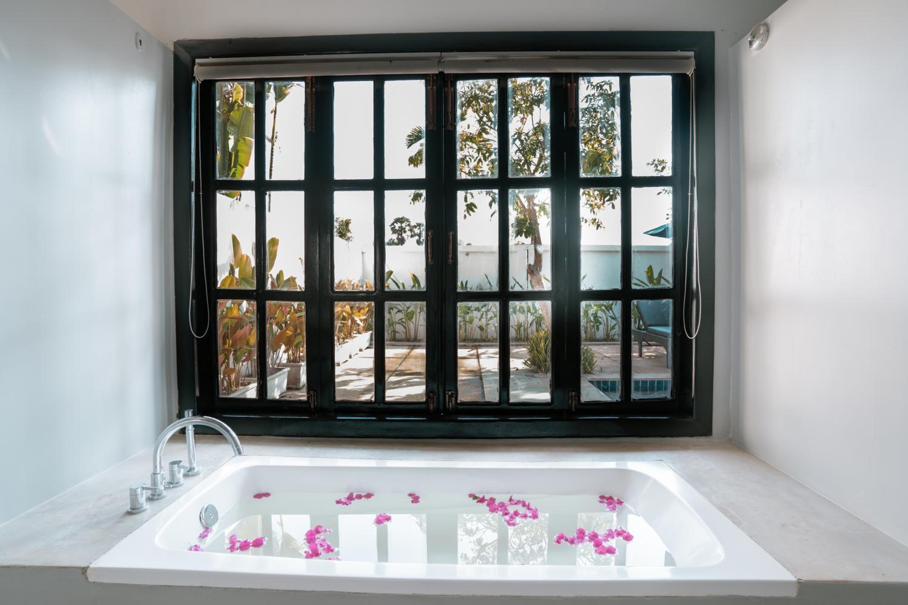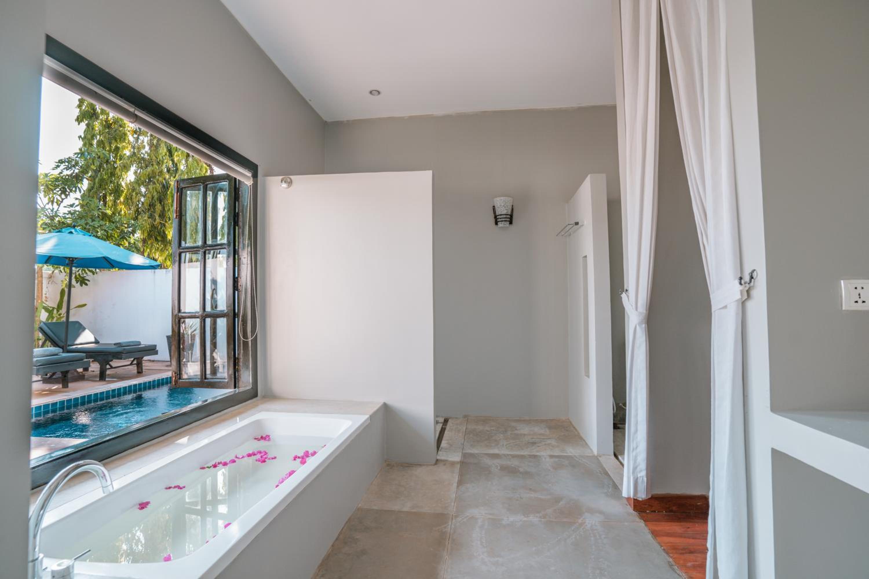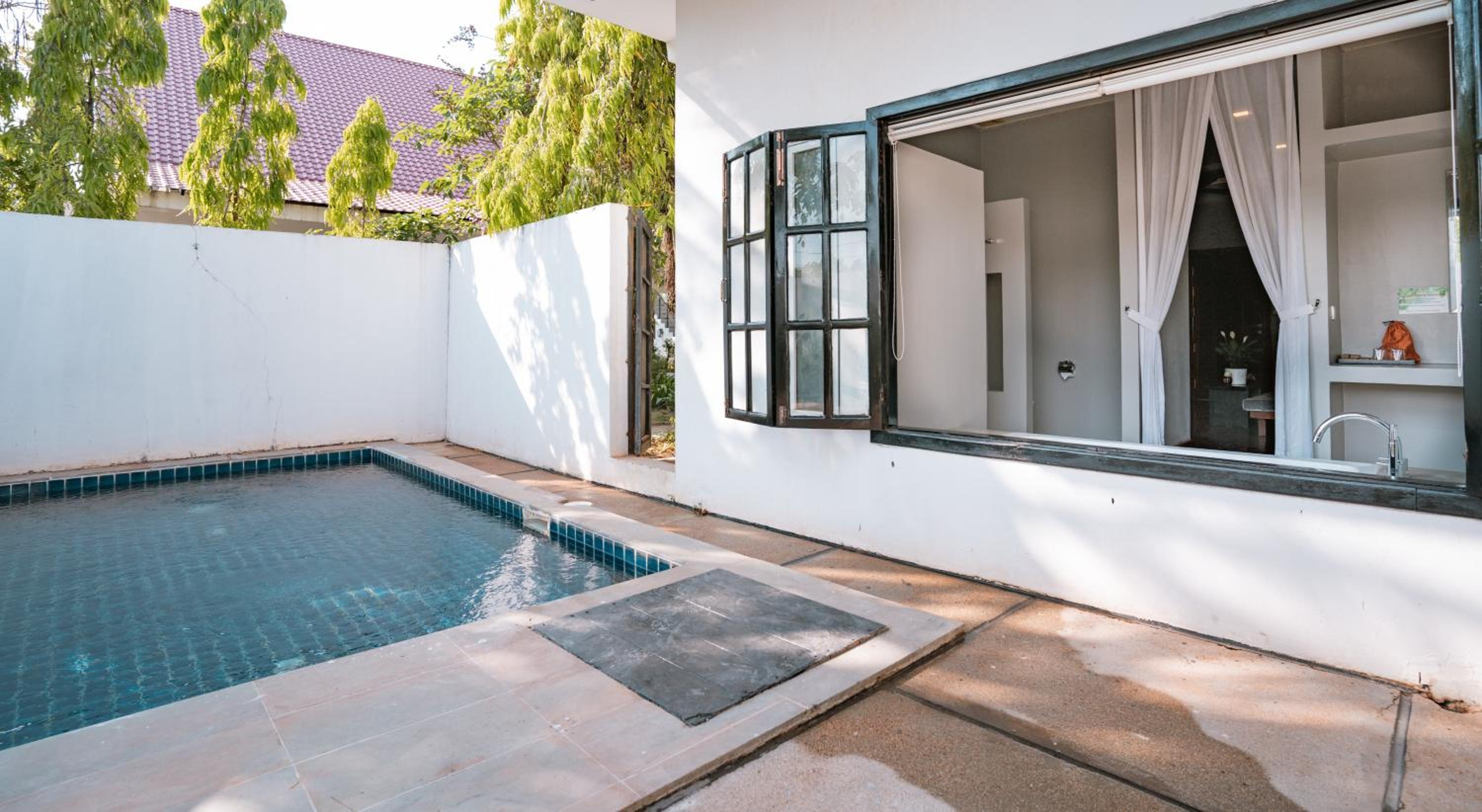 Guests can unwind by the outdoor swimming pool, take a dip in the indoor pool, or enjoy a refreshing drink at the bar. The garden and shared lounge provide serene spaces to relax and socialize.