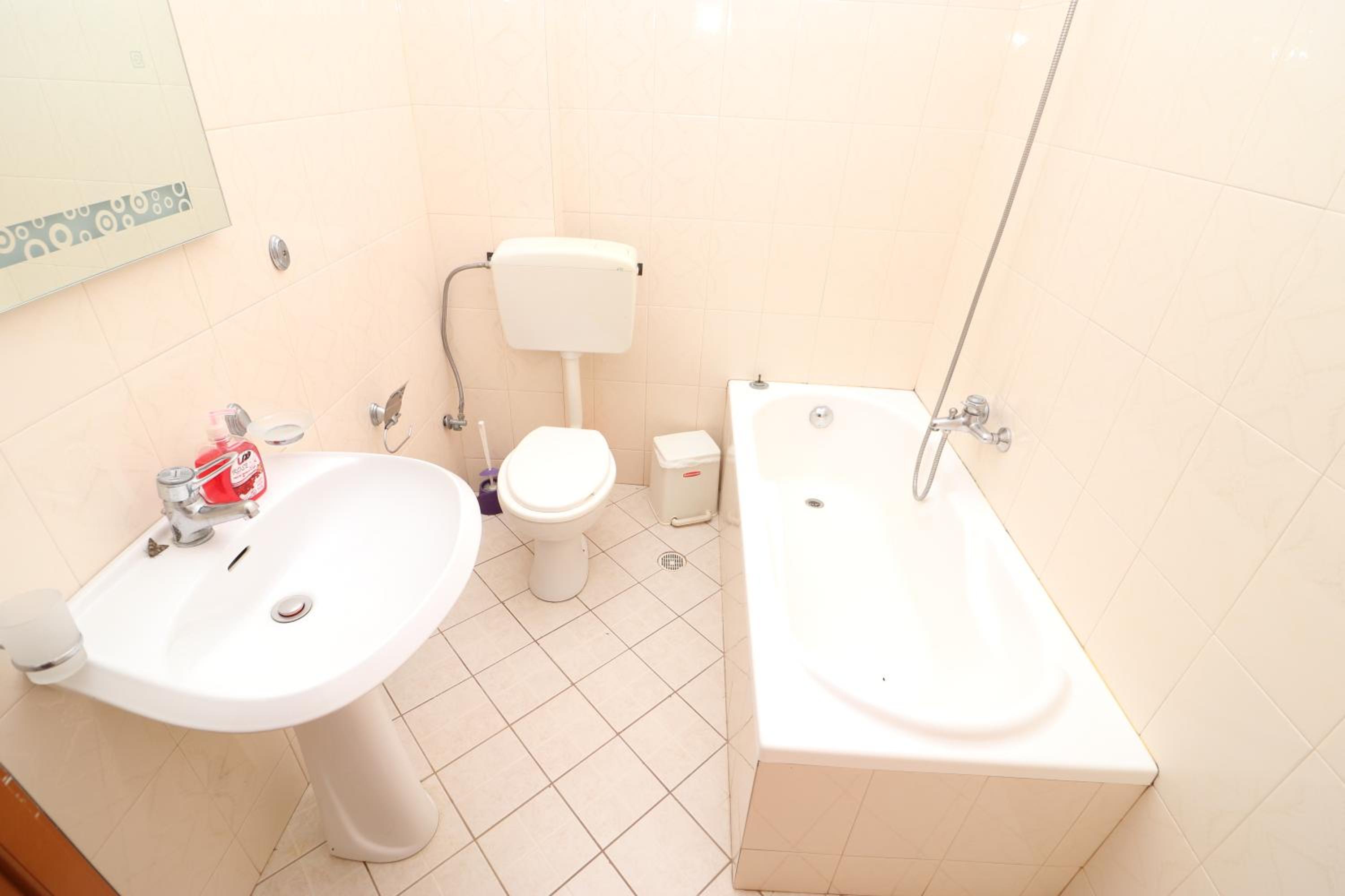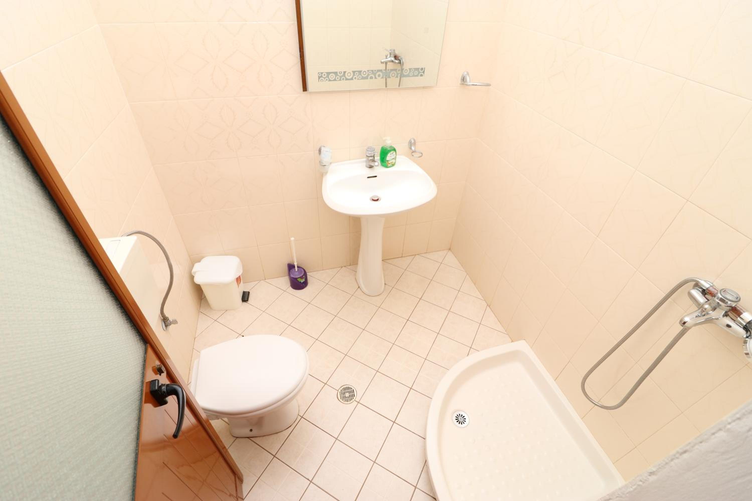 The shower in the bathroom was not great; no shower curtain so water got everywhere and toilet leaked a little bit.