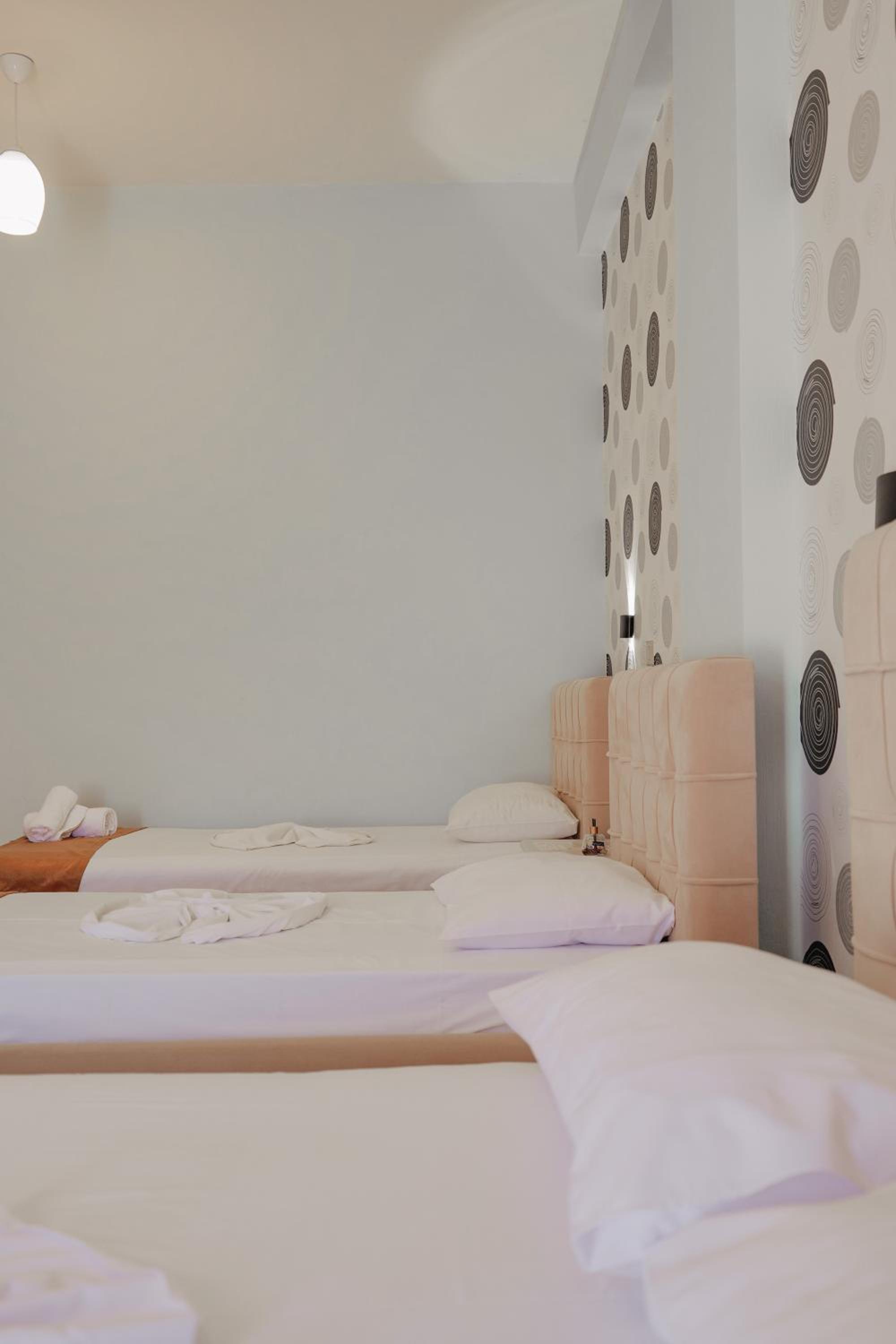 De kamer was super modern: lekkere bedden en mooie fijne badkamer. Balkon was ook aangenaam, elke kamer heeft uitzicht op zee met zonsondergang. Zwembad en ontbijt is ook prima, en het hotel heeft een houtoven voor goede pizza’s.