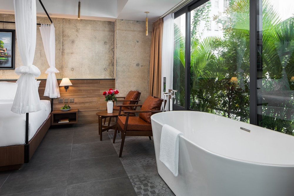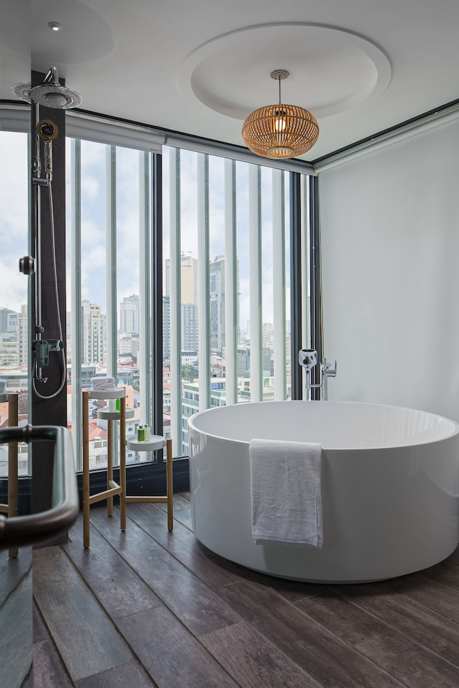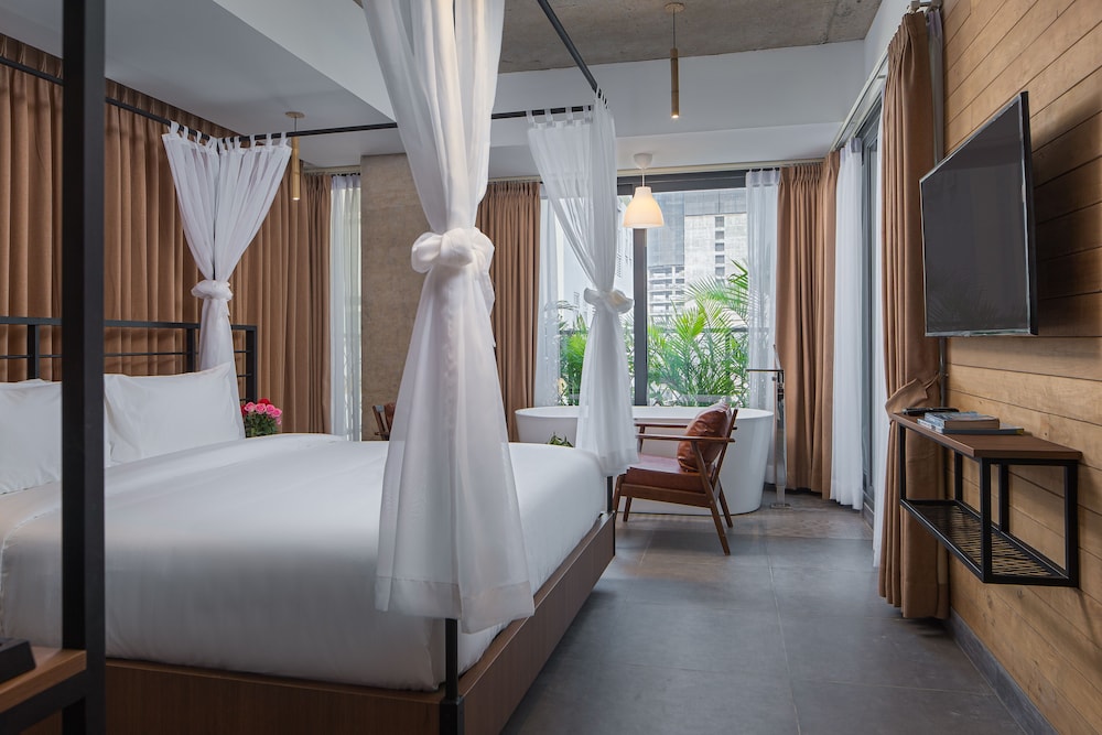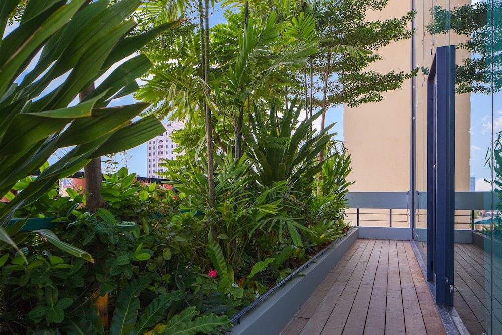 New hotel with beautifully decorated rooms. Rooms even have a small balcony. There are only 5 rooms per floor, so not a lot of traffic in the halls. The rooftop pool and restaurant are fantastic with a gorgeous view of the city.