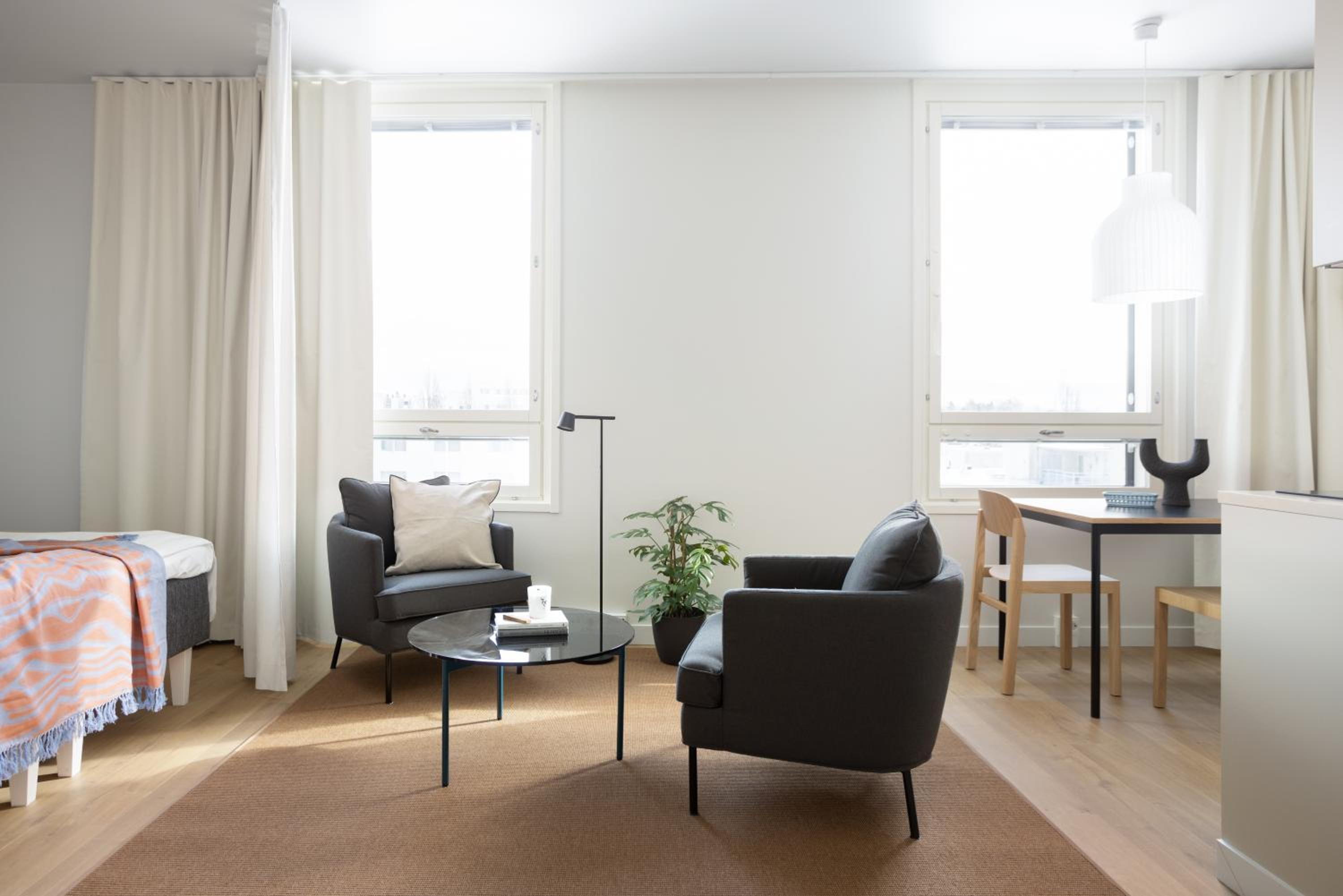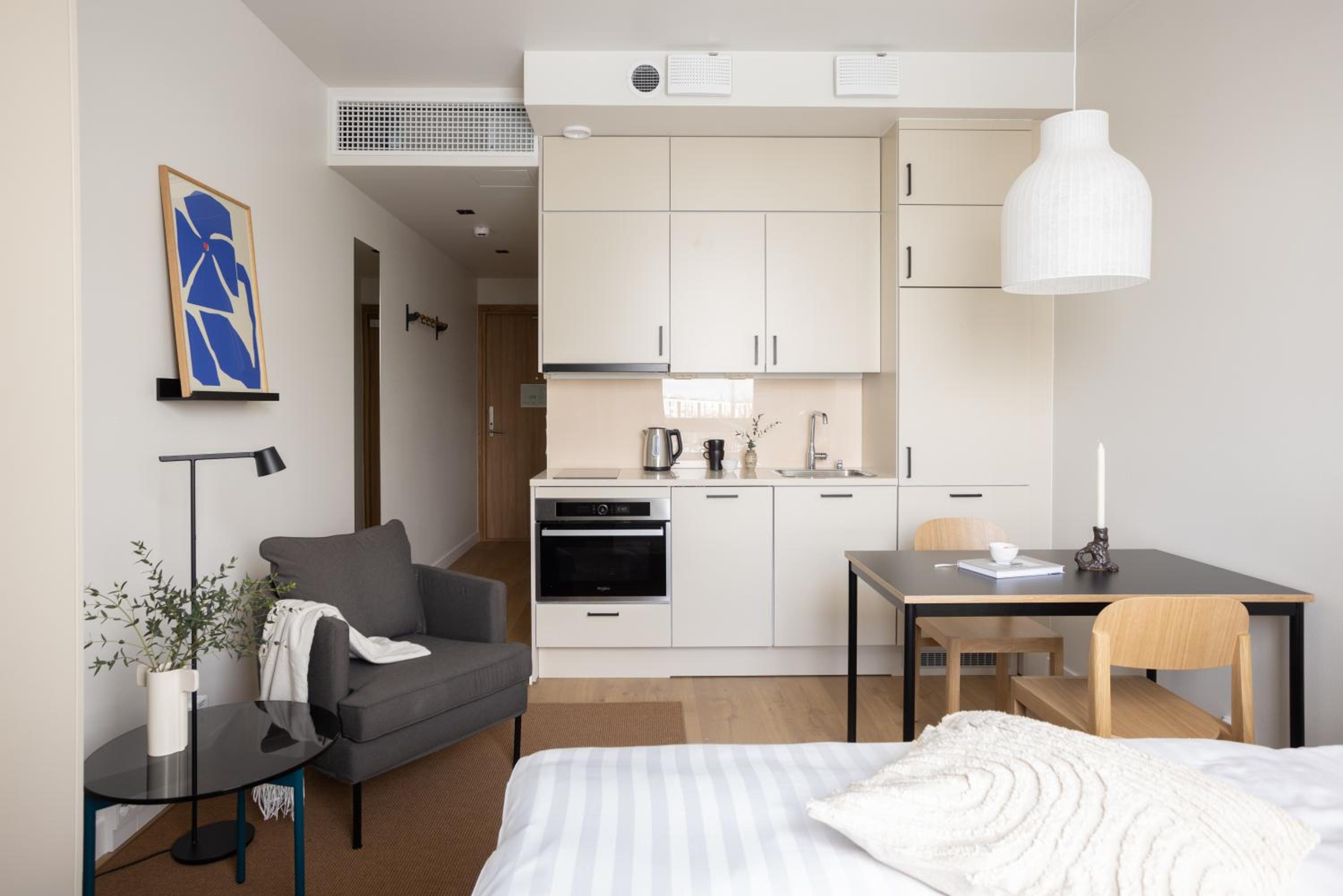 Check in and out very easy . Able to access help during stay easily . Studio was fully equipped. Access to coffee facilities and lounge area . Sauna was lovely. Very good value for money. Right next to train station and 25 minutes from centre of Helsinki